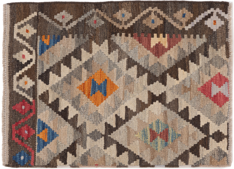 Carpet ID: 2950130042025 Size: 79x59 cm Thickness: ap. 3 mm Manufacturing: Woven by hand Pile: Handspun wool Warp: Sheep wool Origin: Afghanistan Age: New Weight: ap. 1 kg Also know as Kilim, Qilim, Chilim, Afgan, Afghán In stock: Unique - Only 1 in stock