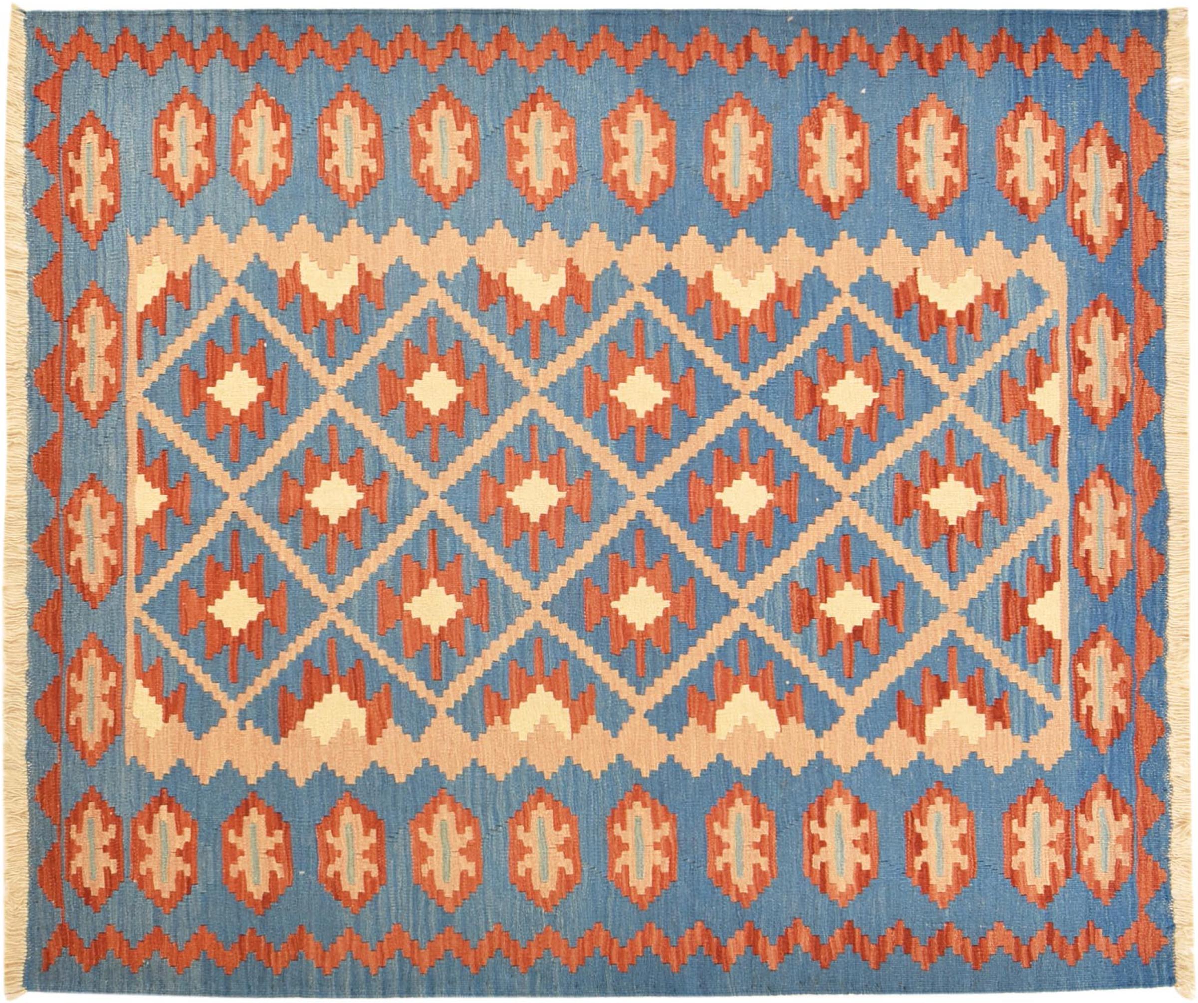 These kilim rugs show a decisive difference to hand-knotted rugs - they are woven by hand. Thus, they do not have a high pile of wool and are often flatter and rougher than knotted wool rugs. Their making is less elaborate and so they are usually much more affordable. As an advantage, kilim rugs are also much lighter and can be laid out from the front and back side. Hand-woven kilims originally come from the former Persia and are now also often made in Afghanistan. They have rather simple, straightforward patterns, which are determined by their weaving technique.