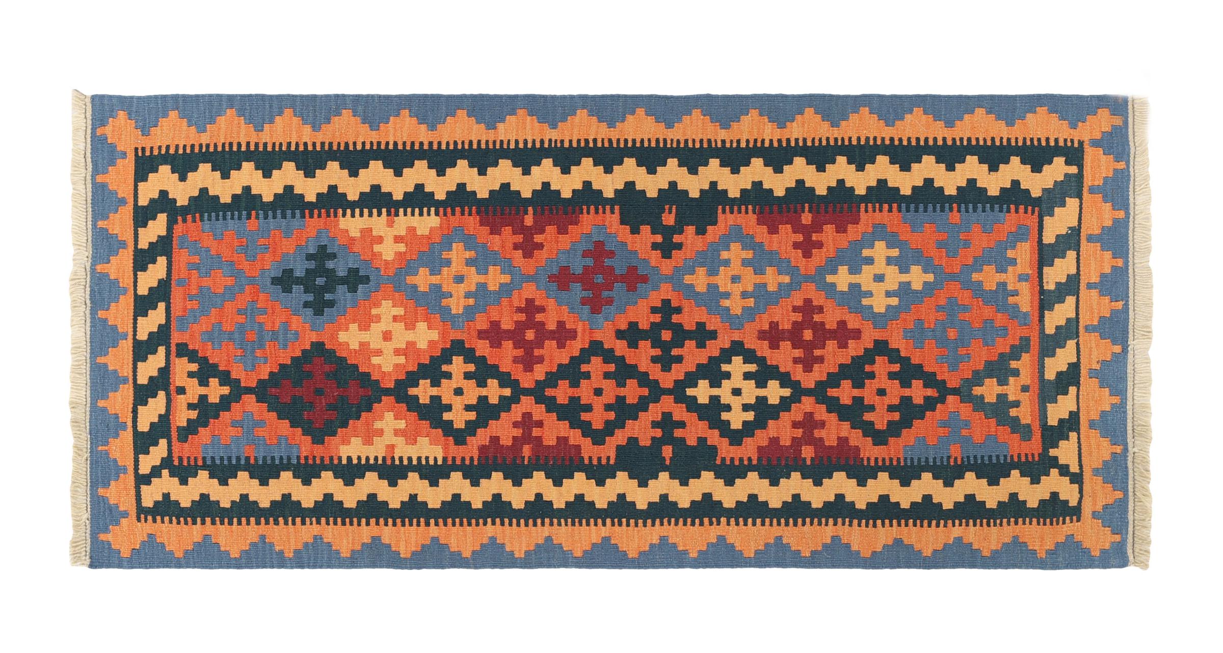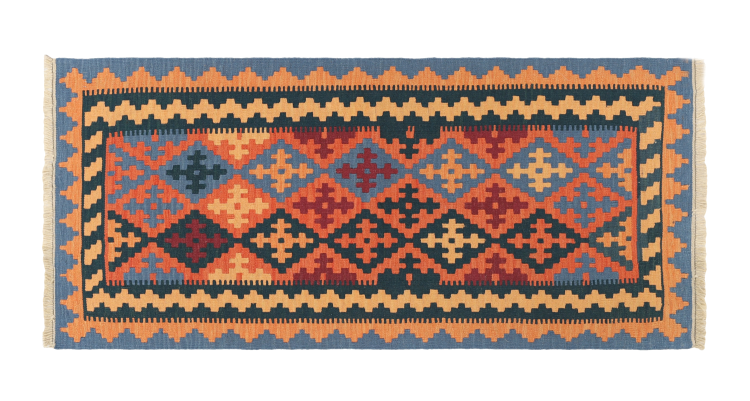 These kilim rugs show a decisive difference to hand-knotted rugs - they are woven by hand. Thus, they do not have a high pile of wool and are often flatter and rougher than knotted wool rugs. Their making is less elaborate and so they are usually much more affordable. As an advantage, kilim rugs are also much lighter and can be laid out from the front and back side. Hand-woven kilims originally come from the former Persia and are now also often made in Afghanistan. They have rather simple, straightforward patterns, which are determined by their weaving technique.