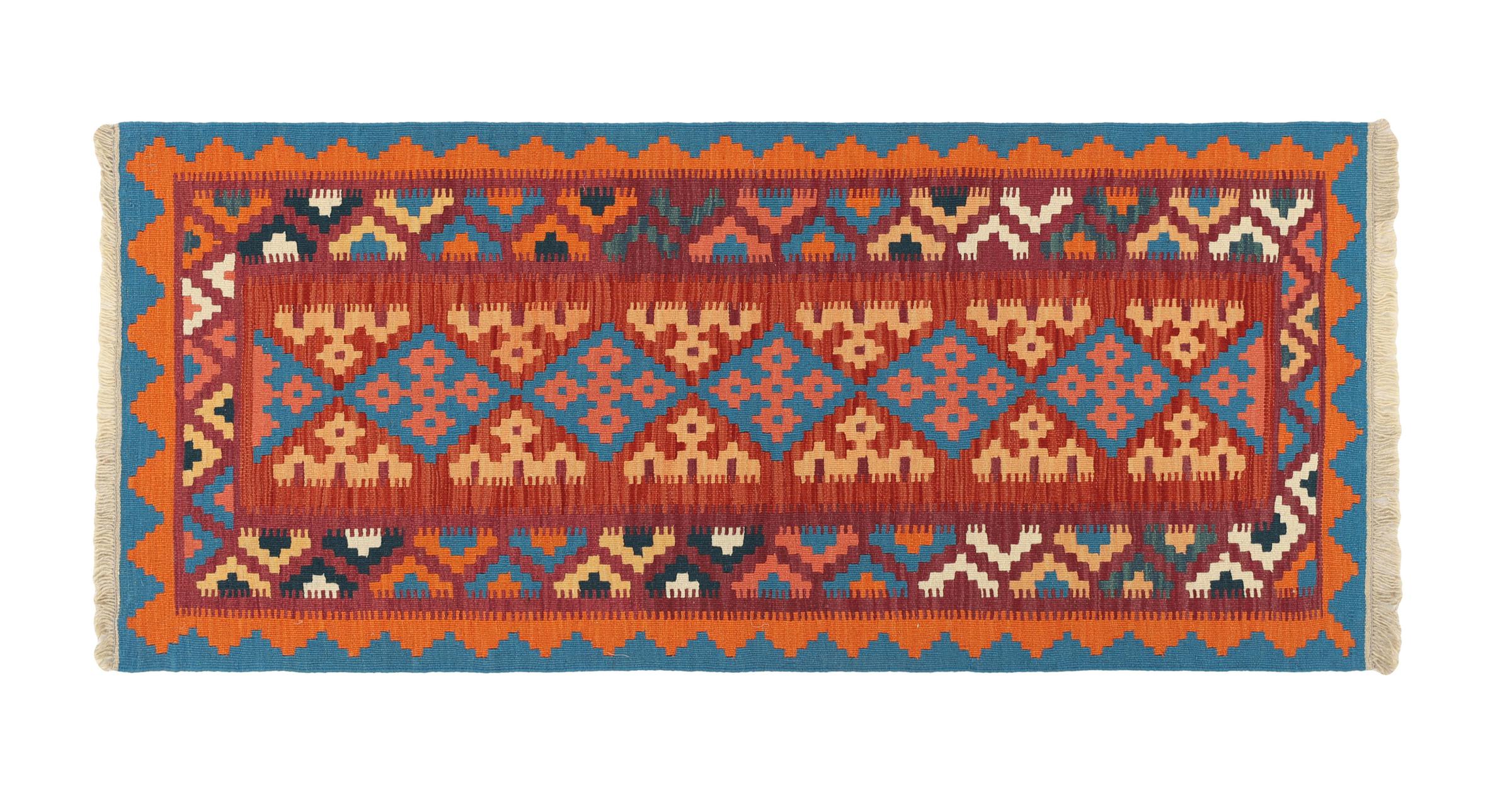 These kilim rugs show a decisive difference to hand-knotted rugs - they are woven by hand. Thus, they do not have a high pile of wool and are often flatter and rougher than knotted wool rugs. Their making is less elaborate and so they are usually much more affordable. As an advantage, kilim rugs are also much lighter and can be laid out from the front and back side. Hand-woven kilims originally come from the former Persia and are now also often made in Afghanistan. They have rather simple, straightforward patterns, which are determined by their weaving technique.