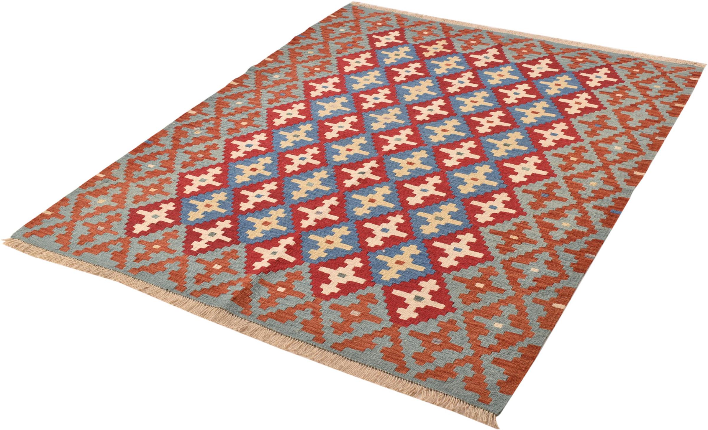 This handwoven Kilim Fars combines Persian patterns with the old tradition of flat fabrics. It represents a beautiful composition of contemporary Persian elements and a modern style. Due to the carpet's geometric patterns and its warm colours, this type of rug is extremely popular in modern interior magazines. Additionally, this Kilim can be used in many different ways. Whether you would like to use it as a bed cover or as a carpet in front of your sofa – a Kilim Fars fulfils nearly all wishes.