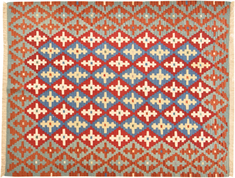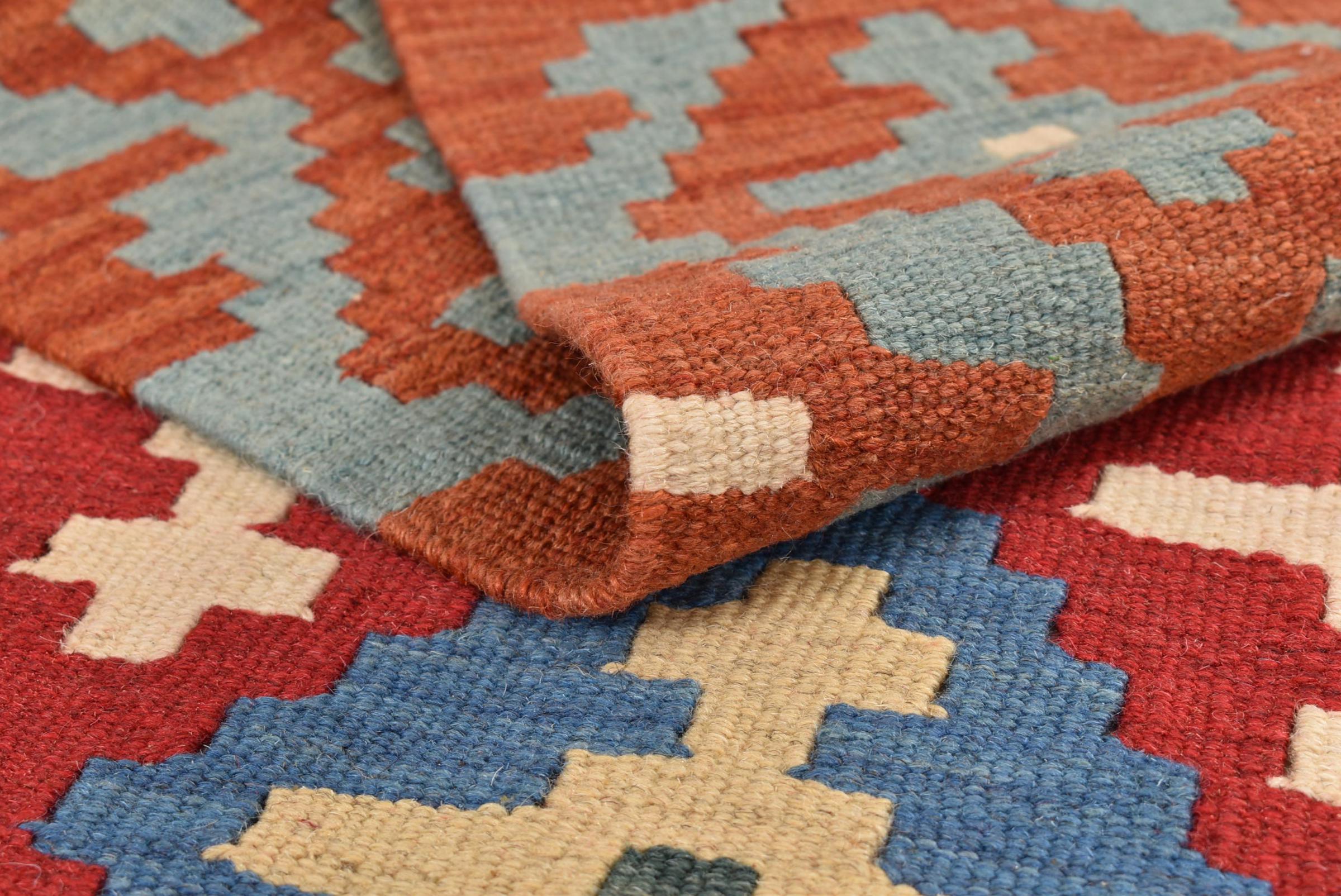 These kilim rugs show a decisive difference to hand-knotted rugs - they are woven by hand. Thus, they do not have a high pile of wool and are often flatter and rougher than knotted wool rugs. Their making is less elaborate and so they are usually much more affordable. As an advantage, kilim rugs are also much lighter and can be laid out from the front and back side. Hand-woven kilims originally come from the former Persia and are now also often made in Afghanistan. They have rather simple, straightforward patterns, which are determined by their weaving technique.