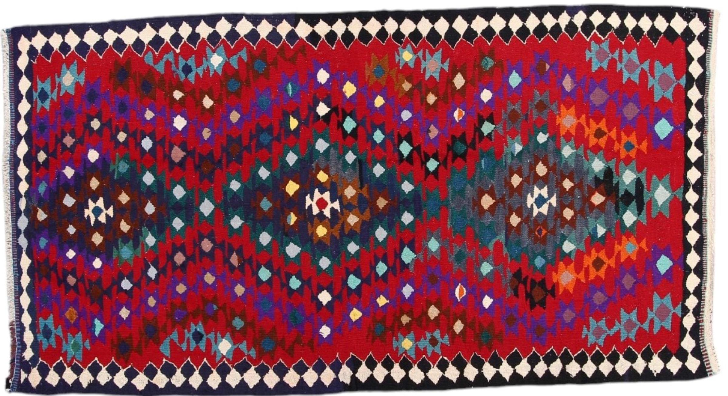 These kilim rugs show a decisive difference to hand-knotted rugs - they are woven by hand. Thus, they do not have a high pile of wool and are often flatter and rougher than knotted wool rugs. Their making is less elaborate and so they are usually much more affordable. As an advantage, kilim rugs are also much lighter and can be laid out from the front and back side. Hand-woven kilims originally come from the former Persia and are now also often made in Afghanistan. They have rather simple, straightforward patterns, which are determined by their weaving technique.