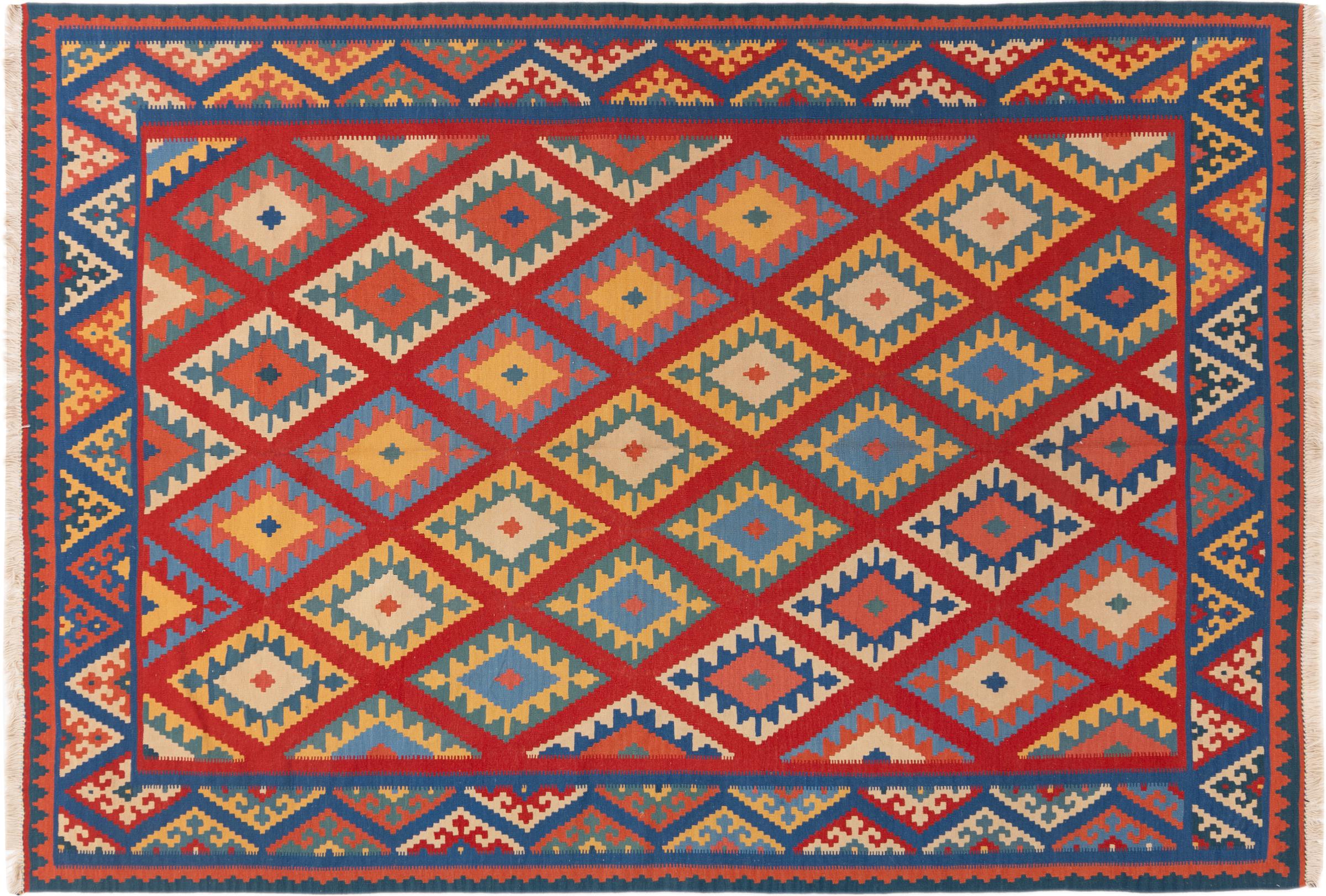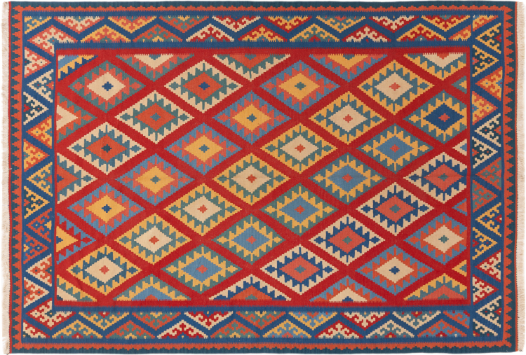 This handwoven Kilim Fars combines Persian patterns with the old tradition of flat fabrics. It represents a beautiful composition of contemporary Persian elements and a modern style. Due to the carpet's geometric patterns and its warm colours, this type of rug is extremely popular in modern interior magazines. Additionally, this Kilim can be used in many different ways. Whether you would like to use it as a bed cover or as a carpet in front of your sofa – a Kilim Fars fulfils nearly all wishes.