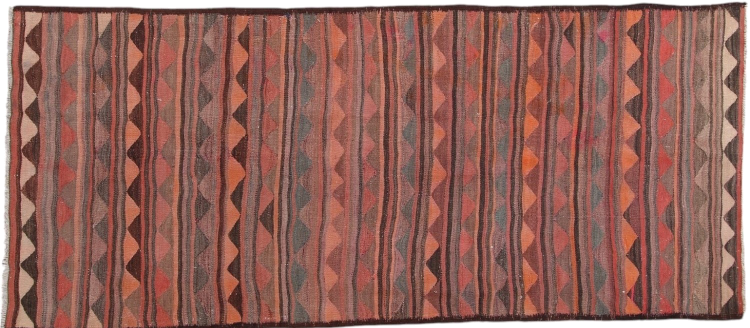 This handwoven Kilim Fars combines Persian patterns with the old tradition of flat fabrics. It represents a beautiful composition of contemporary Persian elements and a modern style. Due to the carpet's geometric patterns and its warm colours, this type of rug is extremely popular in modern interior magazines. Additionally, this Kilim can be used in many different ways. Whether you would like to use it as a bed cover or as a carpet in front of your sofa – a Kilim Fars fulfils nearly all wishes.