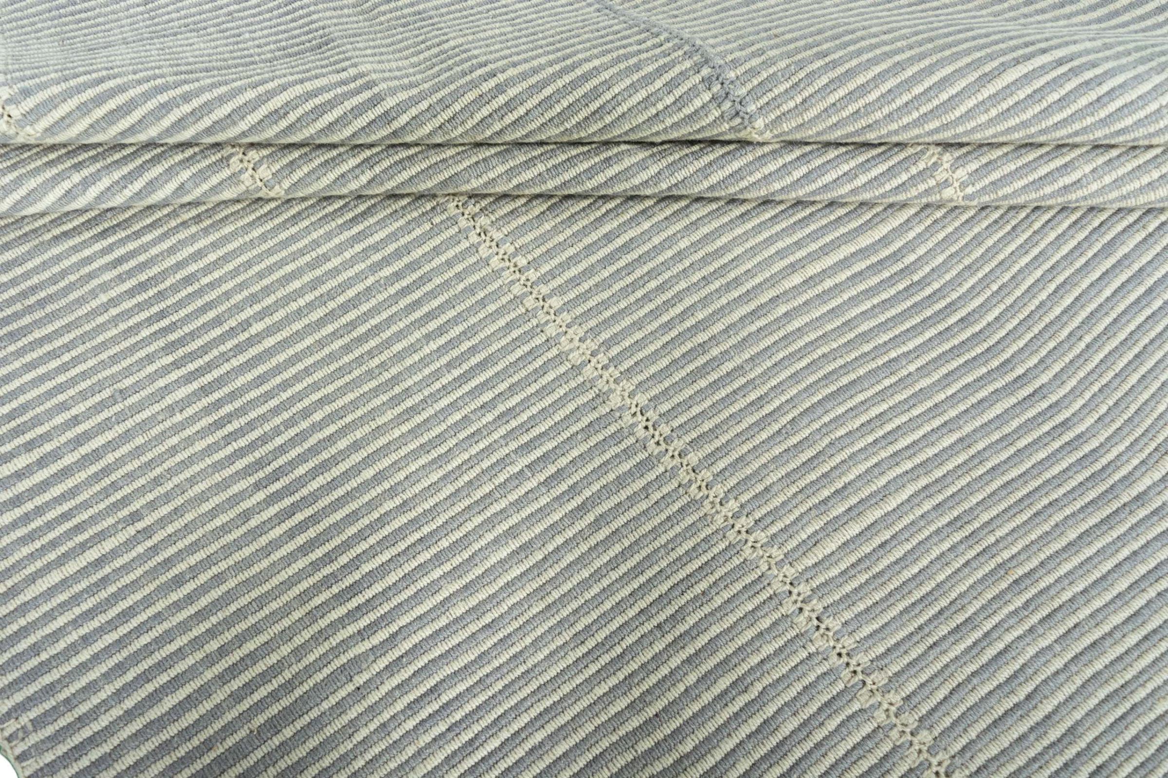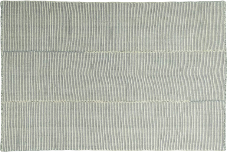 This rug was made as a flat weave by hand on a loom. Flatweave is the term used to describe rugs that have no pile. As the name promises, these rugs are woven and not knotted. This results in a flat rug with a structured surface. Flatweaves are not as soft and usually thinner than knotted rugs. At the same time they are much less complex to manufacture and can usually be laid out from both sides (front and back). Their patterns are usually geometric, which is determined by the fabric.