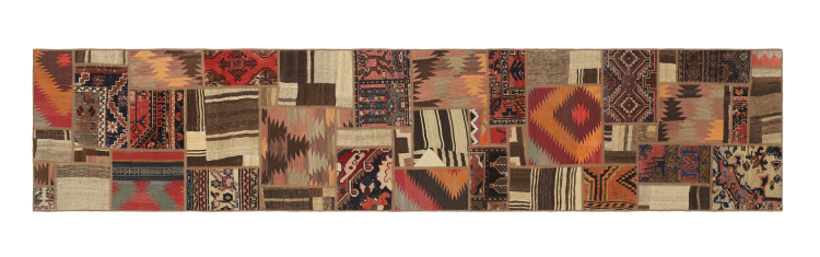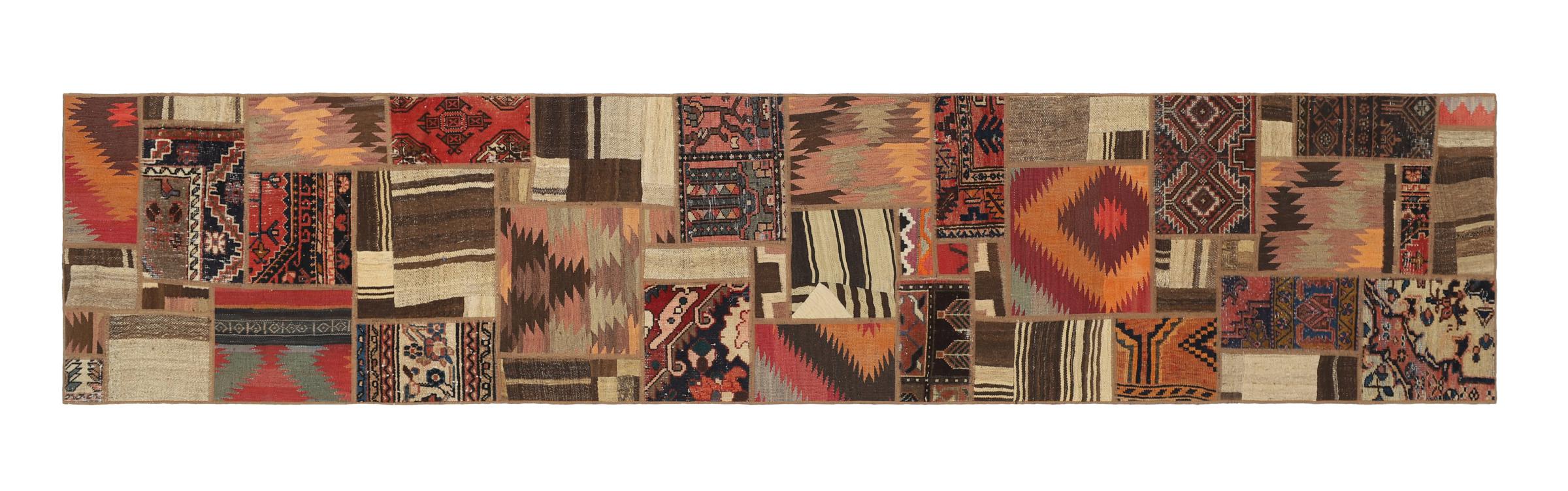 This beautiful patchwork kilim combines the fine craftsmanship of talented master carpet weavers from Iran, Afghanistan, Turkey and the Caucasus. The individual pieces of traditionally produced kilims have been cleaned, processed and assembled into a new pattern. The result is an oriental rug with a unique design in a patchwork look that is both light and robust thanks to its woven structure.