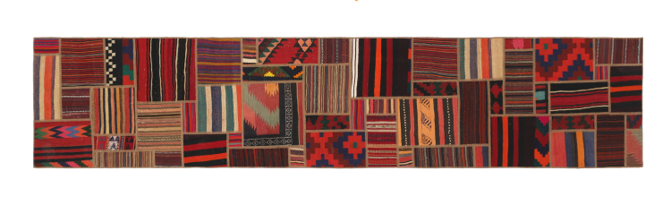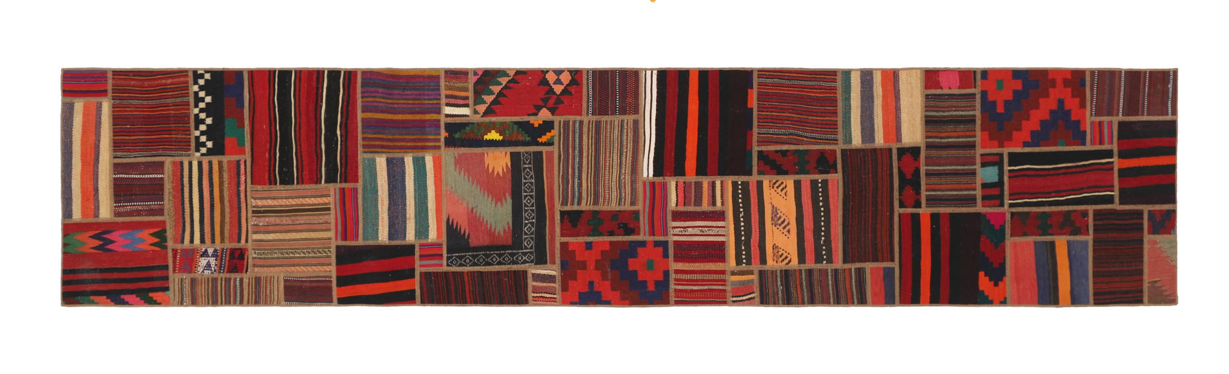 This beautiful patchwork kilim combines the fine craftsmanship of talented master carpet weavers from Iran, Afghanistan, Turkey and the Caucasus. The individual pieces of traditionally produced kilims have been cleaned, processed and assembled into a new pattern. The result is an oriental rug with a unique design in a patchwork look that is both light and robust thanks to its woven structure.