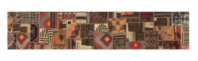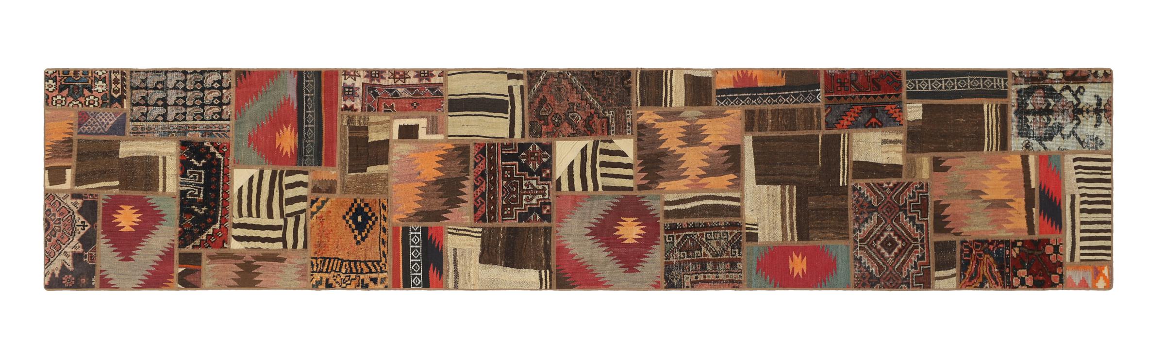 This beautiful patchwork kilim combines the fine craftsmanship of talented master carpet weavers from Iran, Afghanistan, Turkey and the Caucasus. The individual pieces of traditionally produced kilims have been cleaned, processed and assembled into a new pattern. The result is an oriental rug with a unique design in a patchwork look that is both light and robust thanks to its woven structure.