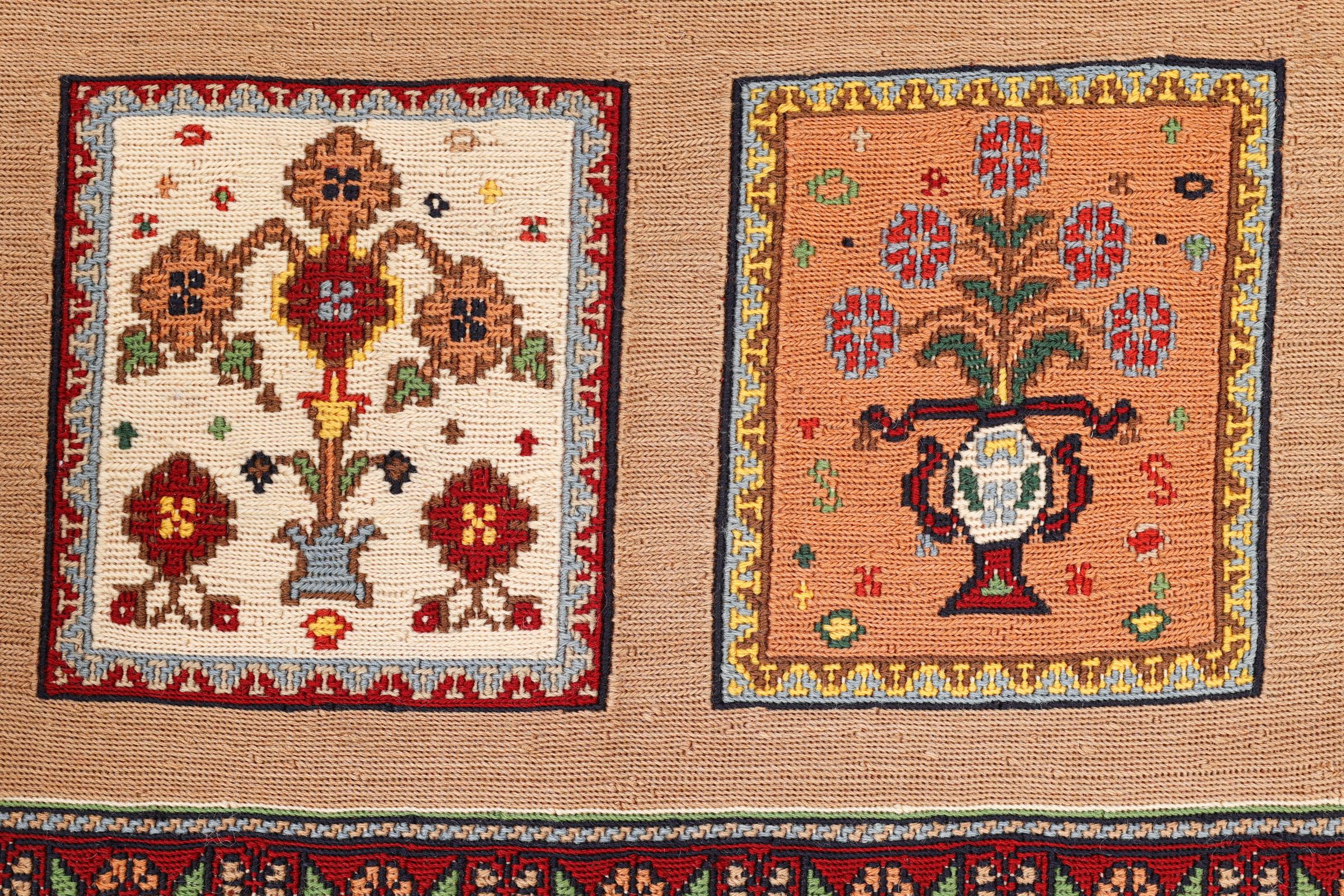 This Kelim Soozani is a feast for the eyes and tells its very own story. The flat weave technique makes it possible to use the Kelim as a carpet, a bed cover or even tapestry – just how you like!