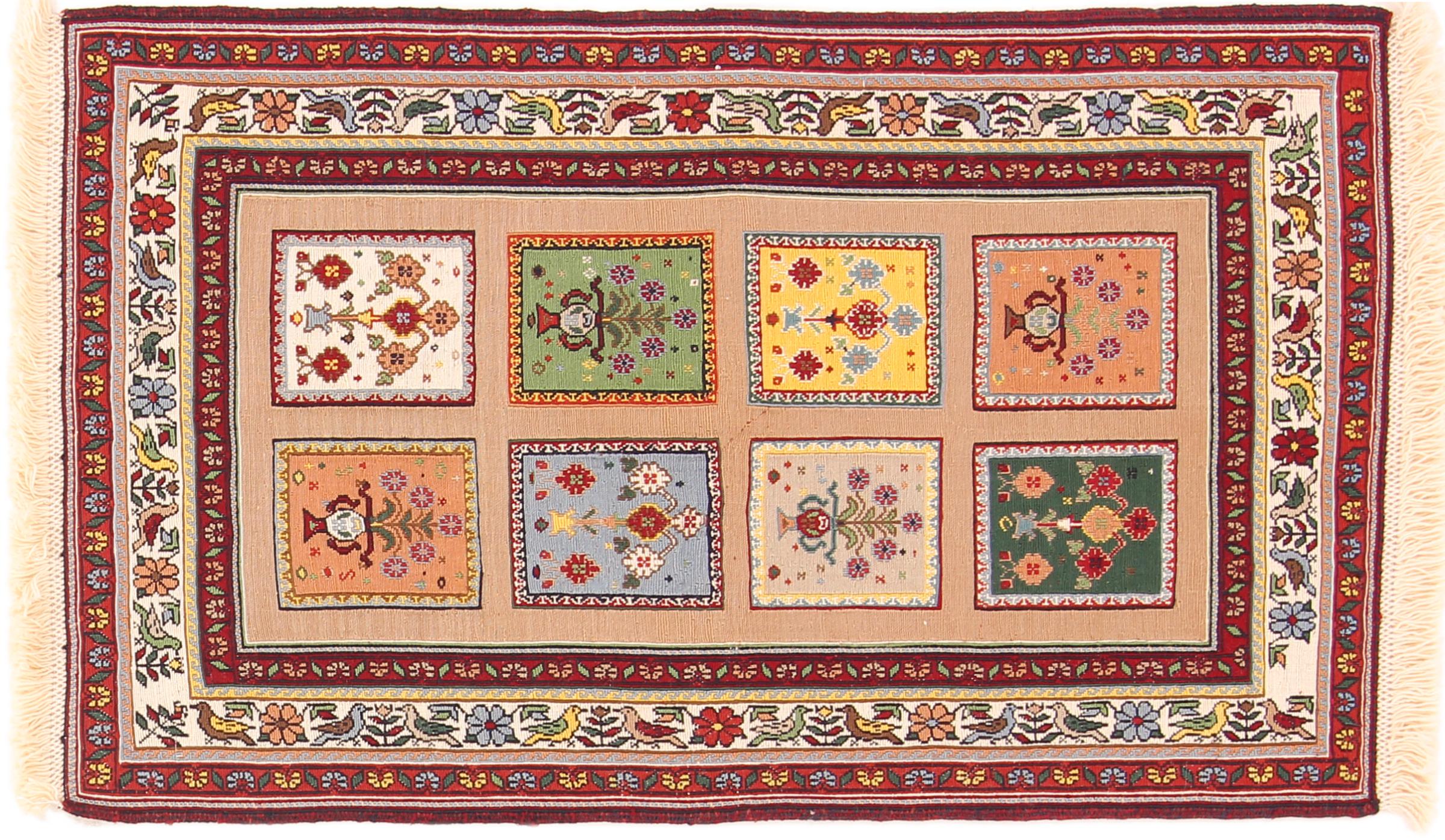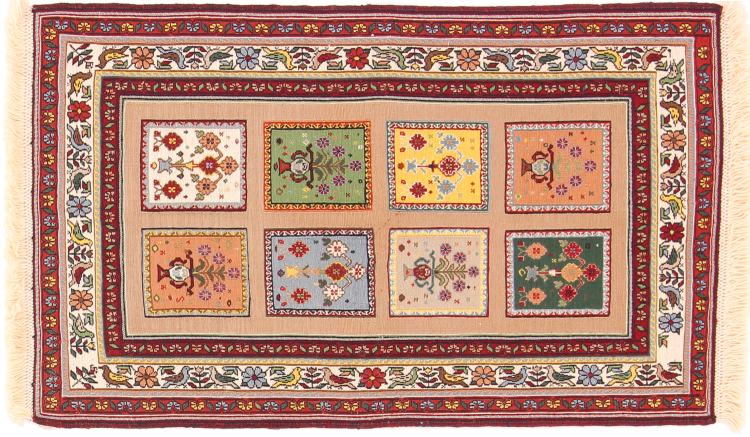 Carpet ID: 210702009548208 Size: 102x63 cm Thickness: ap. 4 mm Manufacturing: Woven by hand Pile: Handspun wool Warp: Sheep wool Origin: Persia Age: New Weight: ap. 1 kg In stock: Unique - Only 1 in stock