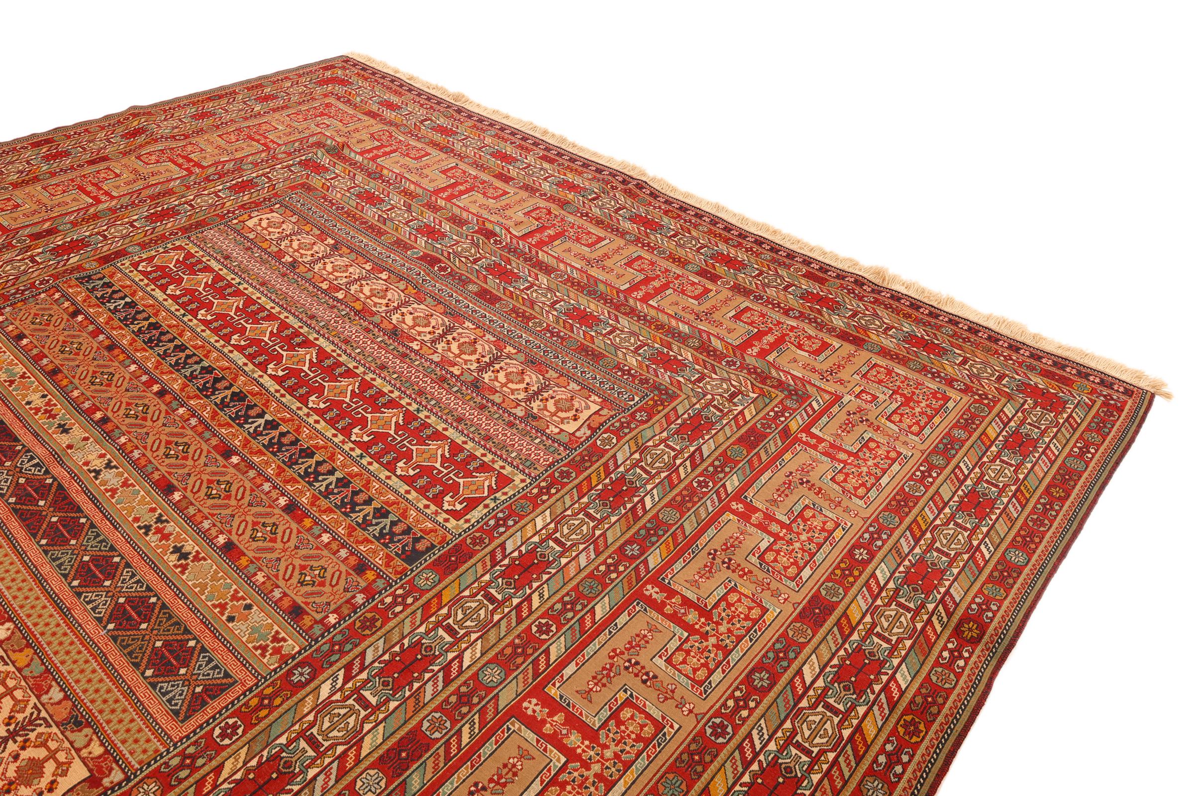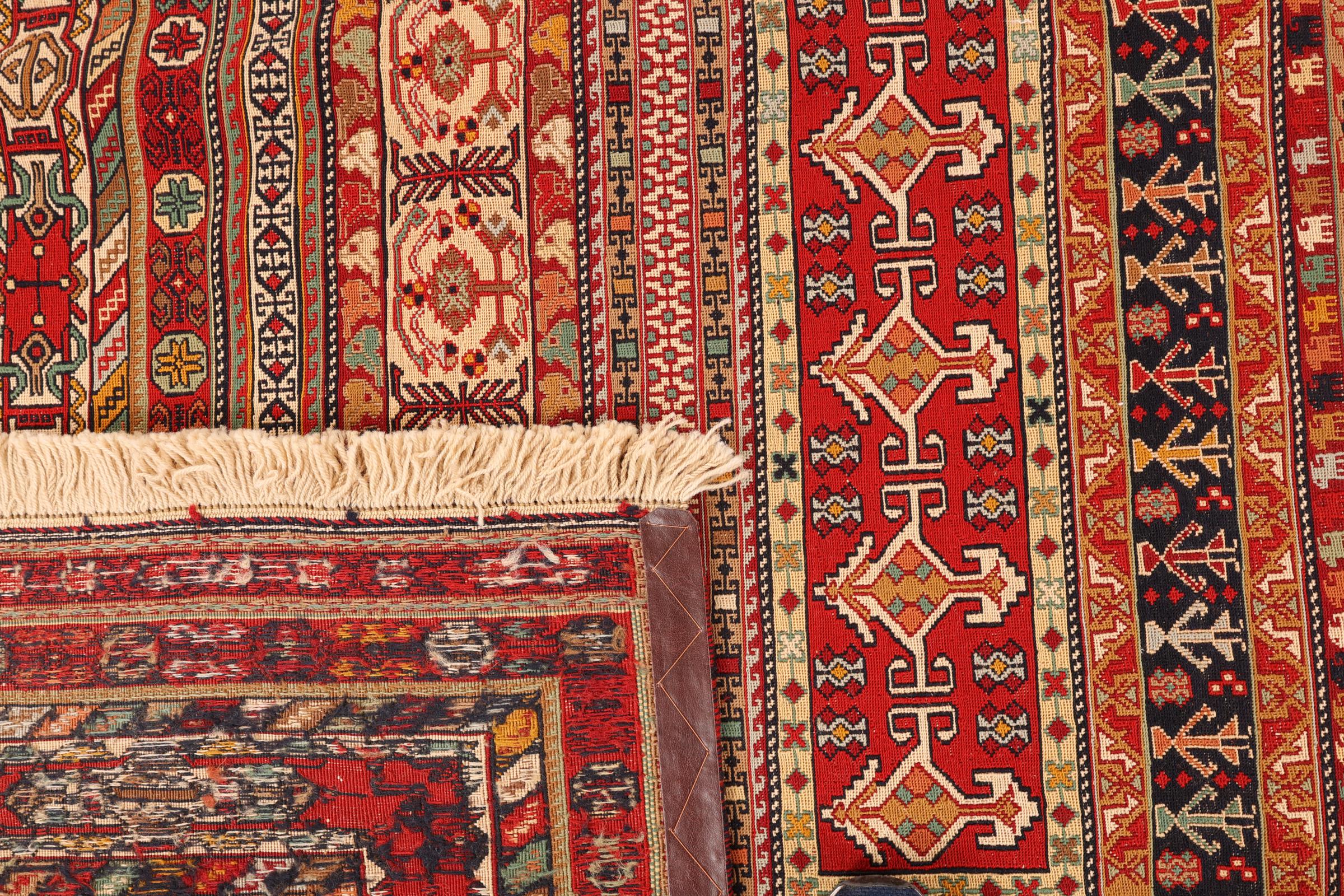 This Kelim Soozani is a feast for the eyes and tells its very own story. The flat weave technique makes it possible to use the Kelim as a carpet, a bed cover or even tapestry – just how you like!