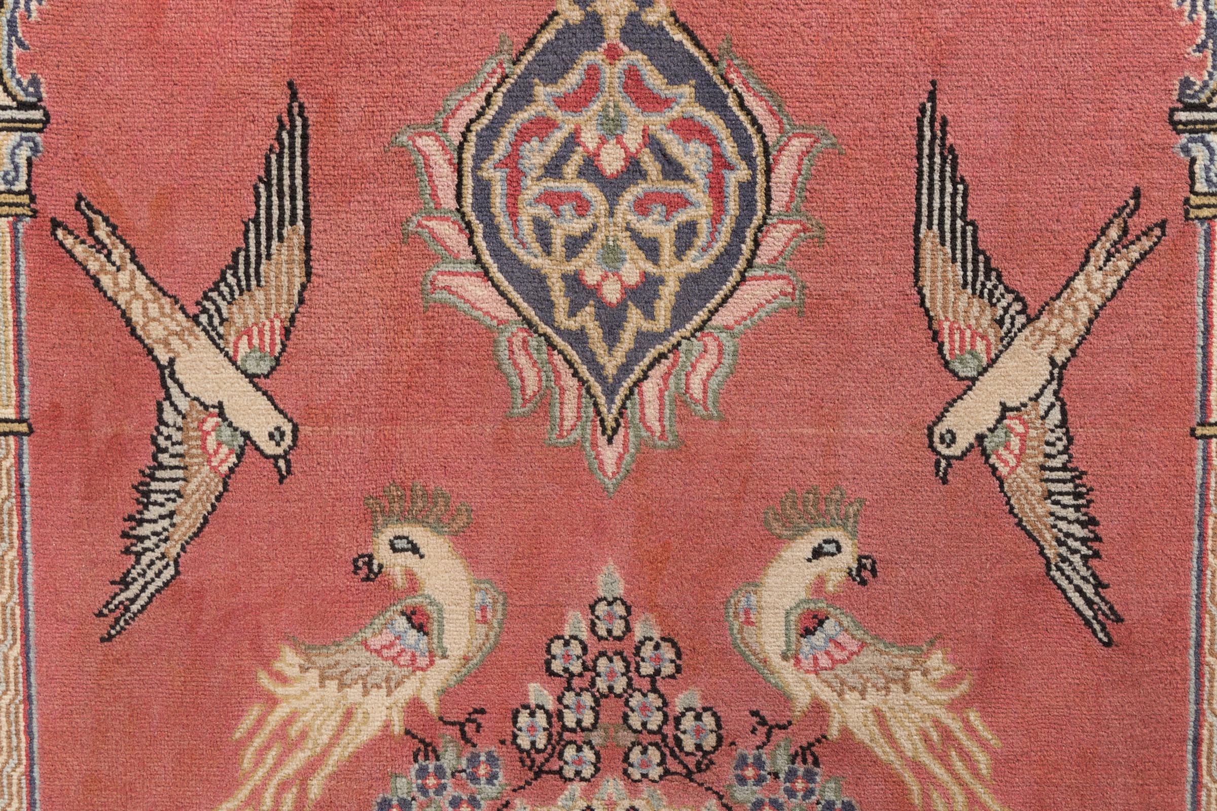 This Qum (also called: Qom) carpet is a piece of outstanding quality. Its wool originates exclusively from the neck section of sheep. It's exceptionally soft and consists of a high degree of natural fat, which makes the carpet even more resilient against day-to-day stress. Additionally, this genuine Persian carpet has been knotted by hand in the holy city Qum. Its fascinating ornaments and beautiful design are going to impress you and your guests.