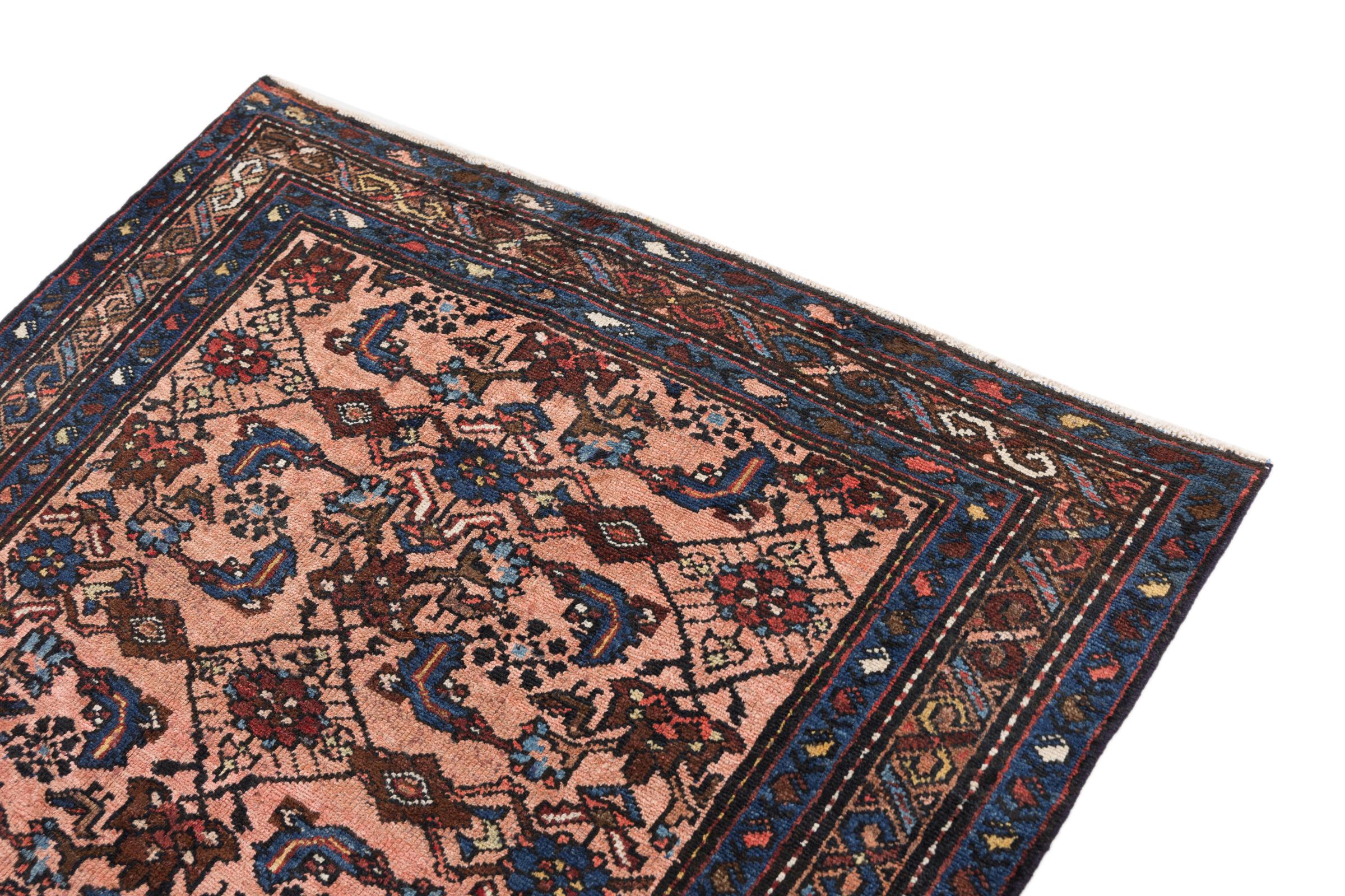 This rug belongs to village and nomadic rugs from Iran, formerly Persia. This type of rug is knotted by hand in smaller towns and villages in old tradition. Even nomads still knot Persian rugs in the open air. The rugs are knotted without a draft and completely from the mind. They are characterized by classical ornaments, which are arranged in straight and geometrical patterns. Thanks to their cultural-traditional origin, these rugs have a unique character that embodies ancient Persia.