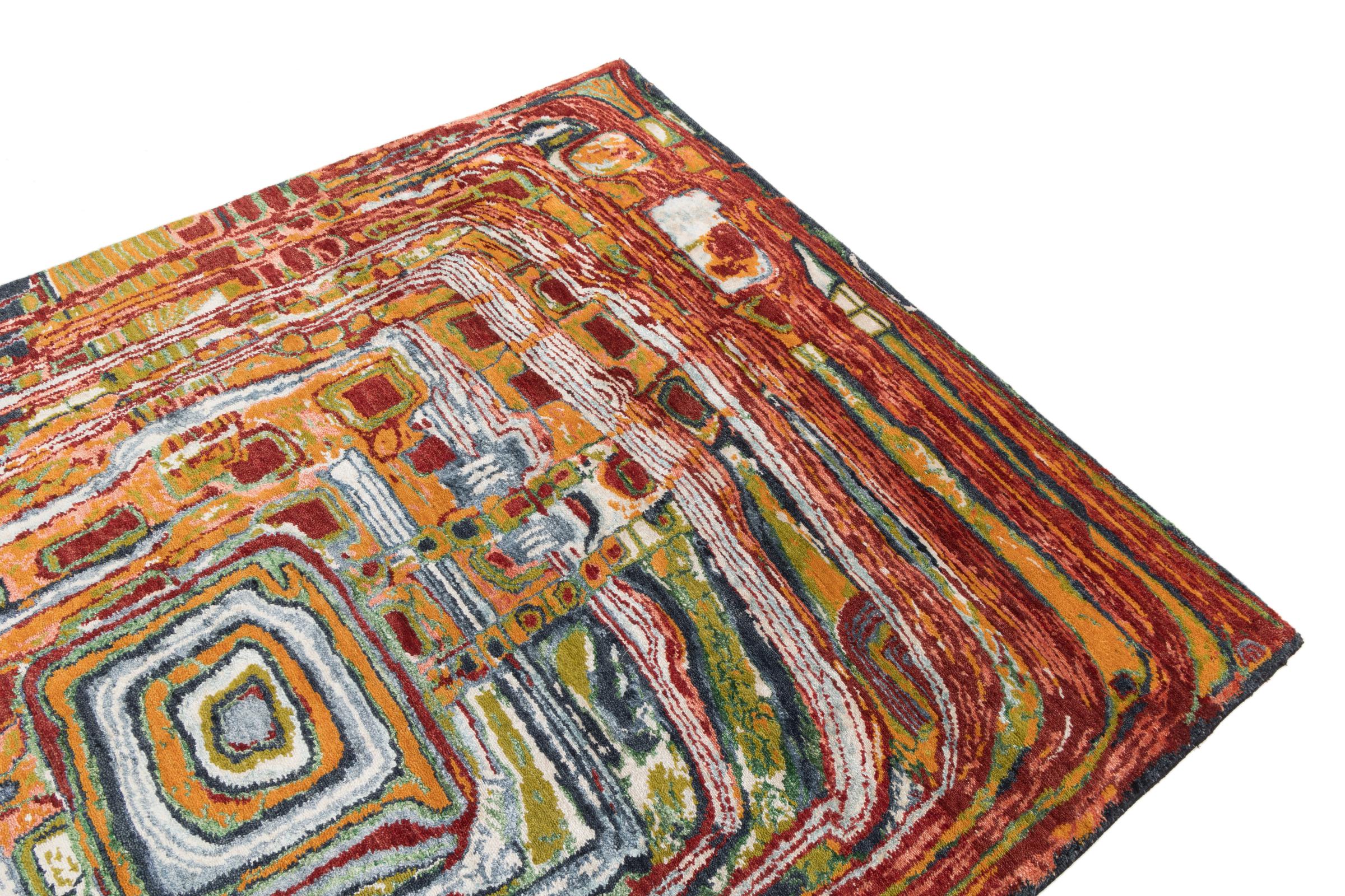 This Loom Gabbeh is a handmade rug with a beautiful modern design and great colours. It was knotted by hand in looms in Bhadohi, a small town in India, using high-quality wool. A new type of loom is used to shorten the labour time, resulting in affordable yet high-quality Gabbeh design rugs.