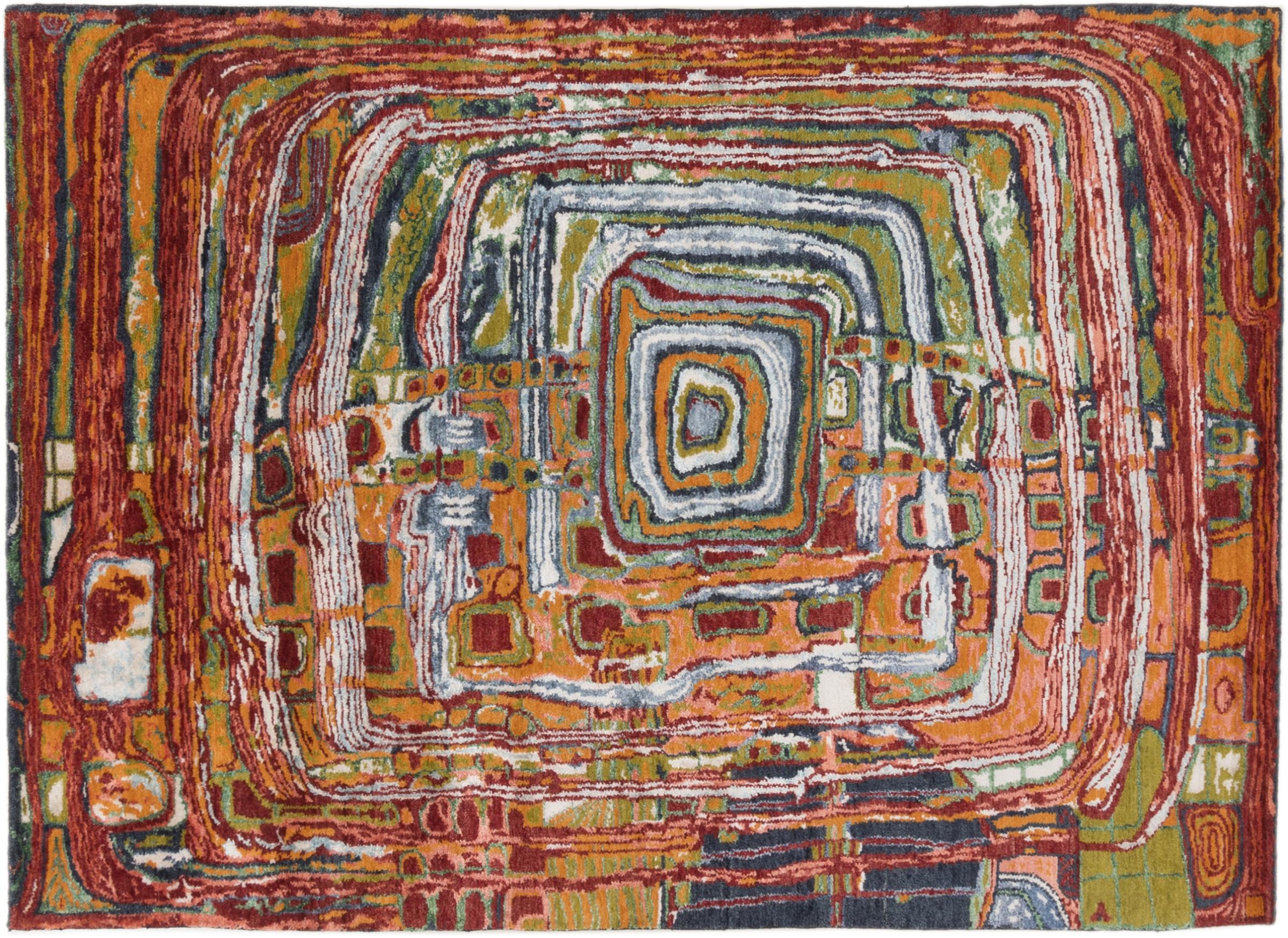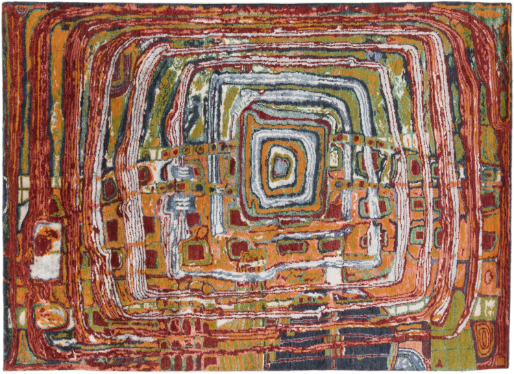 Loom rugs are made on looms, on which a pile is made from loops. Instead of knots (see hand-knotted rugs), loops are woven, which later form the carpet pile. Compared to traditional hand knotting, loom carpets can be made with much less effort and are therefore more affordable. Because of their weave, these rugs are also limited to geometric or plain patterns.