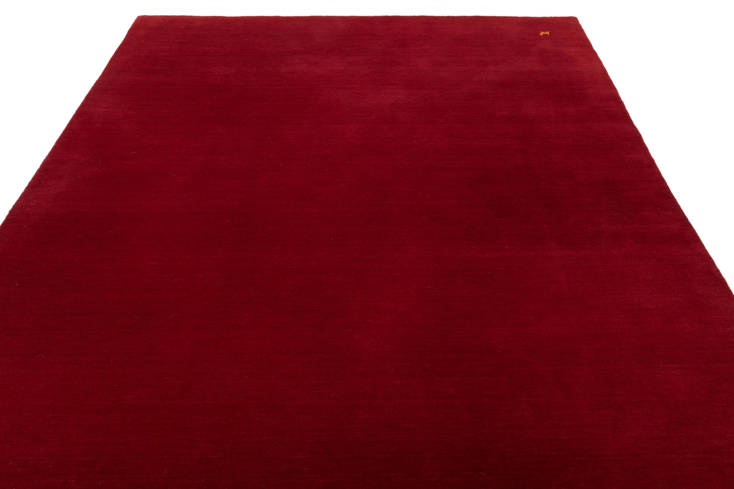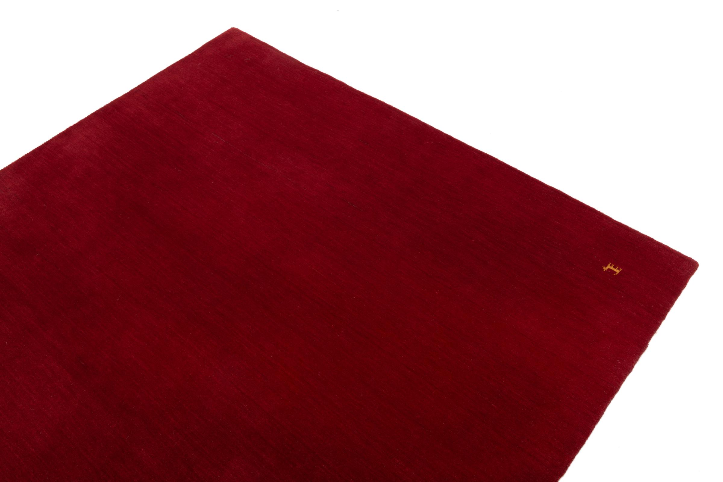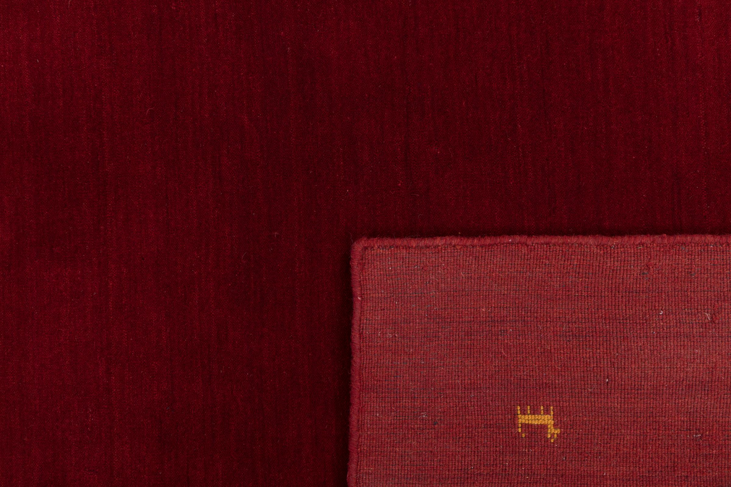 This Loom Gabbeh is a handmade rug with a beautiful modern design and great colours. It was knotted by hand in looms in Bhadohi, a small town in India, using high-quality wool. A new type of loom is used to shorten the labour time, resulting in affordable yet high-quality Gabbeh design rugs.