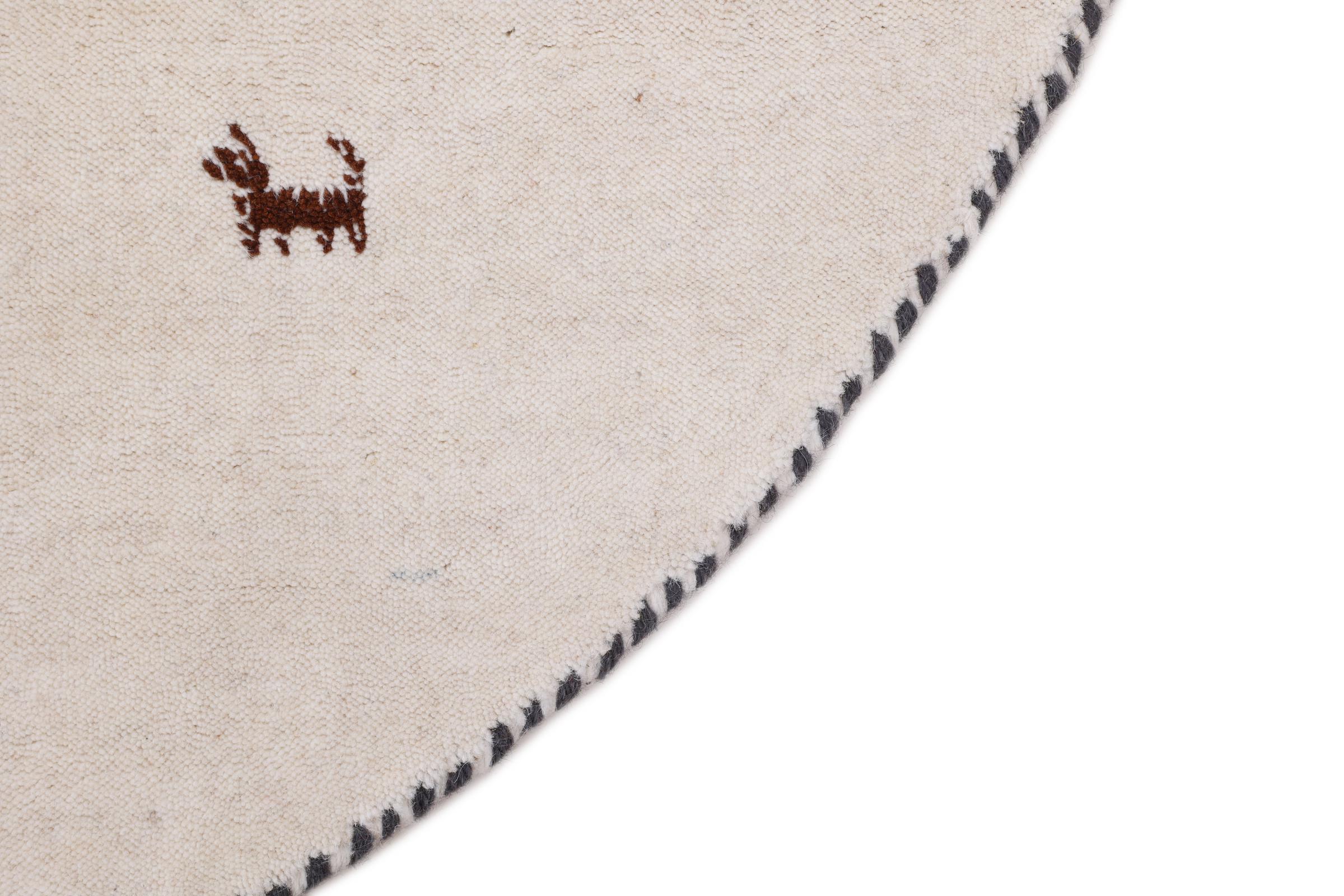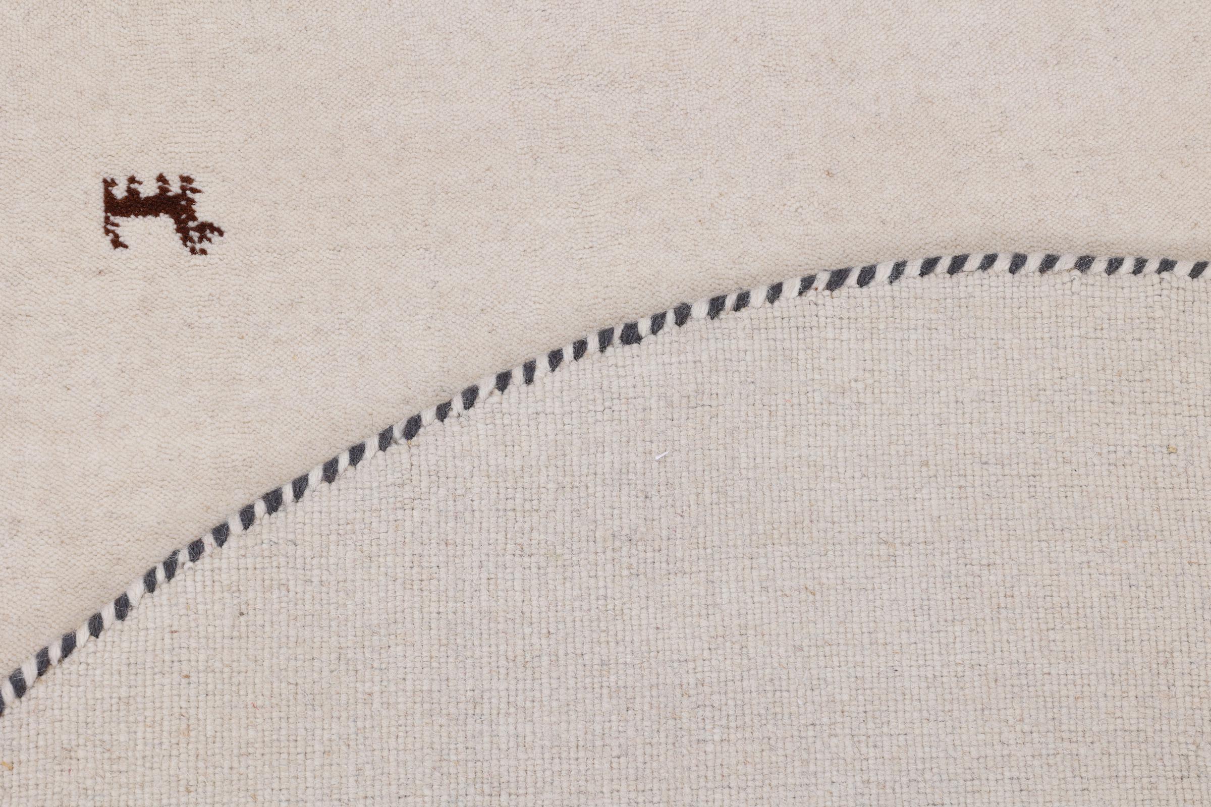 This Loom Gabbeh is a handmade rug with a beautiful modern design and great colours. It was knotted by hand in looms in Bhadohi, a small town in India, using high-quality wool. A new type of loom is used to shorten the labour time, resulting in affordable yet high-quality Gabbeh design rugs.