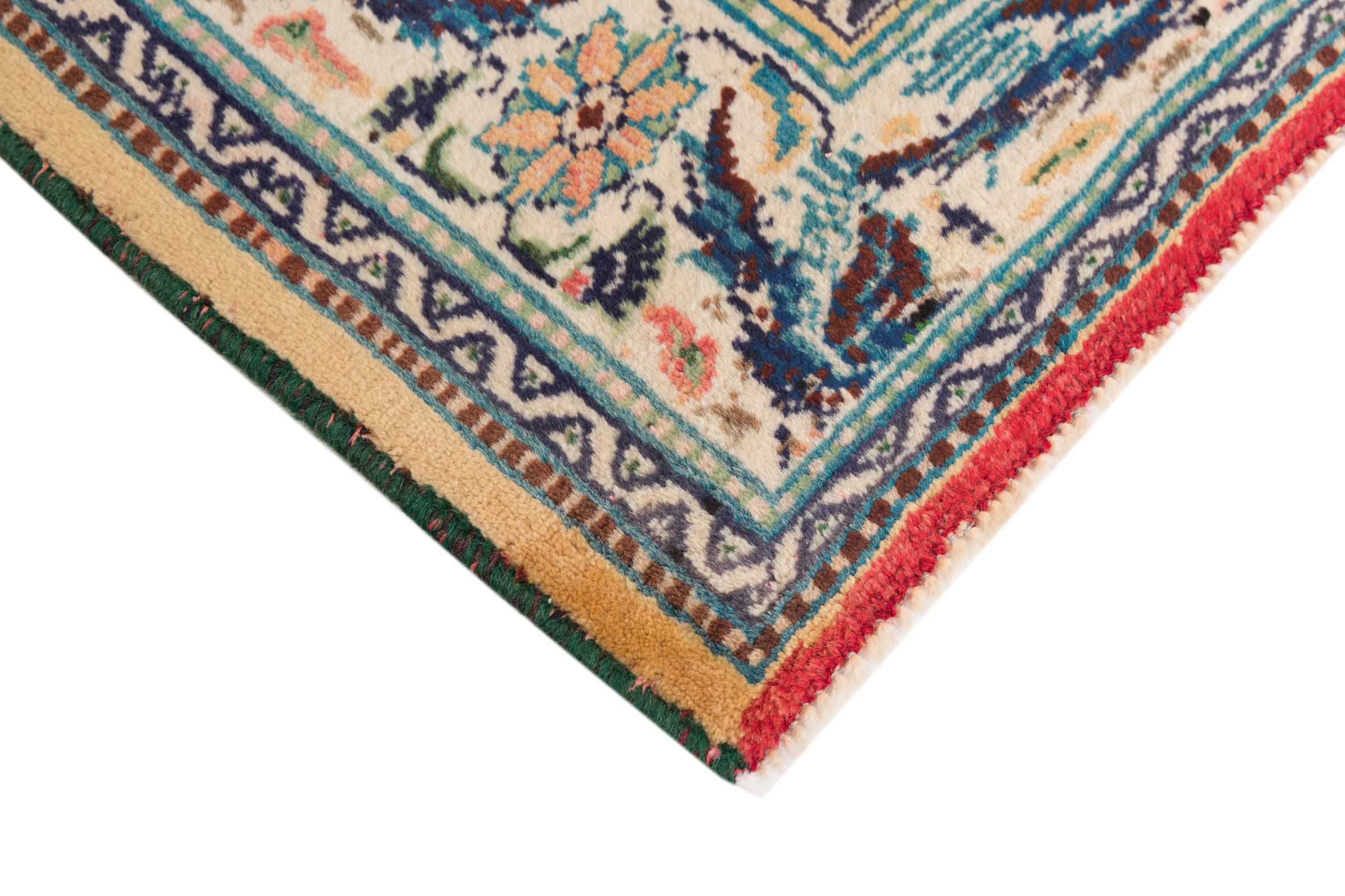 This oriental carpet comes from the Mahal provenance, which is located in western central Iran. The design shines in a friendly color scheme with harmoniously coordinated colors. The detailed frame stylishly stages the finely crafted motifs in the inner field. As a genuine hand-knotted Persian carpet of robust quality, the model is aesthetic and durable at the same time - ideal for your hallway or living room.
