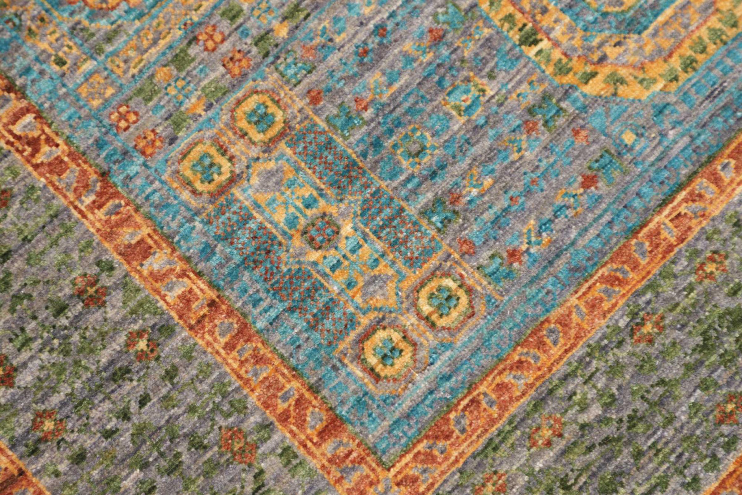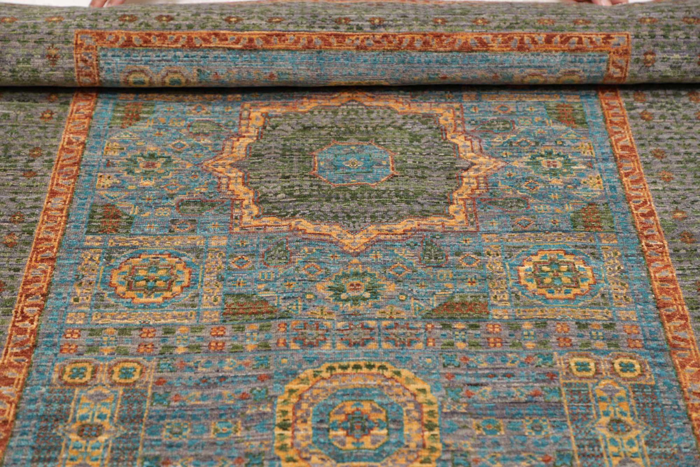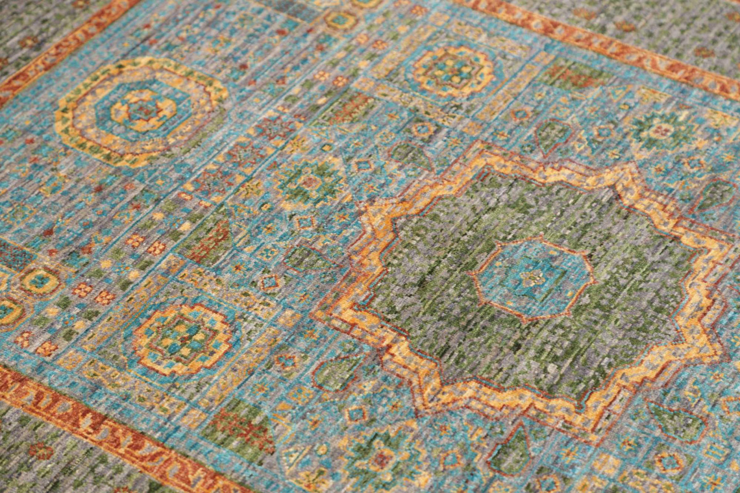 This mamluk has been knotted by hand and impresses with its exciting elegance. The design is extravagant and unique, but not yet very well known. The colours of the oriental rug are fashionably combined and its unique motifs are guaranteed to bring life and admiration to your room.