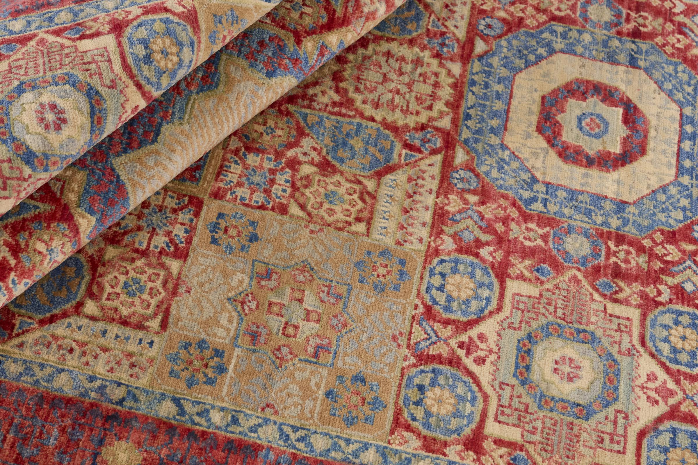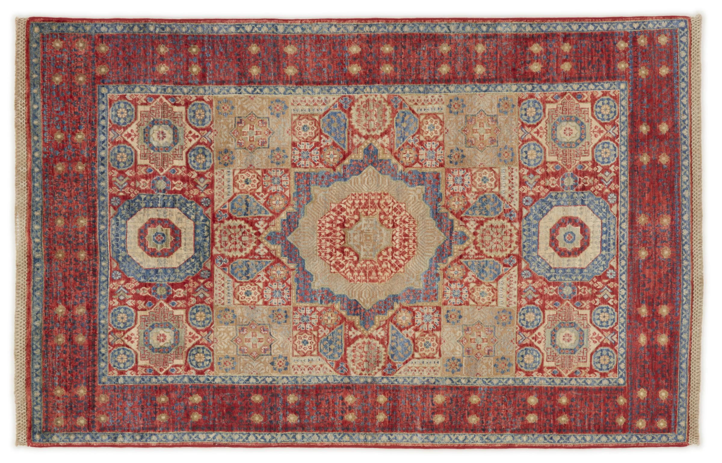 A large part of Pakistani rug production takes place in and around the cities of Lahore and Karachi. Many of the rug knotters of that time fled to Pakistan during the war with India and settled there. Today, especially hand-knotted Pakistan Bukhara rugs are well-known. Similar to the Afghan oriental rugs, Pakistani rugs are also made in dark colours and mostly have shades of red. Even the well-known elephant foot pattern (repeating octagonal pattern) can be found on a Pakistani.