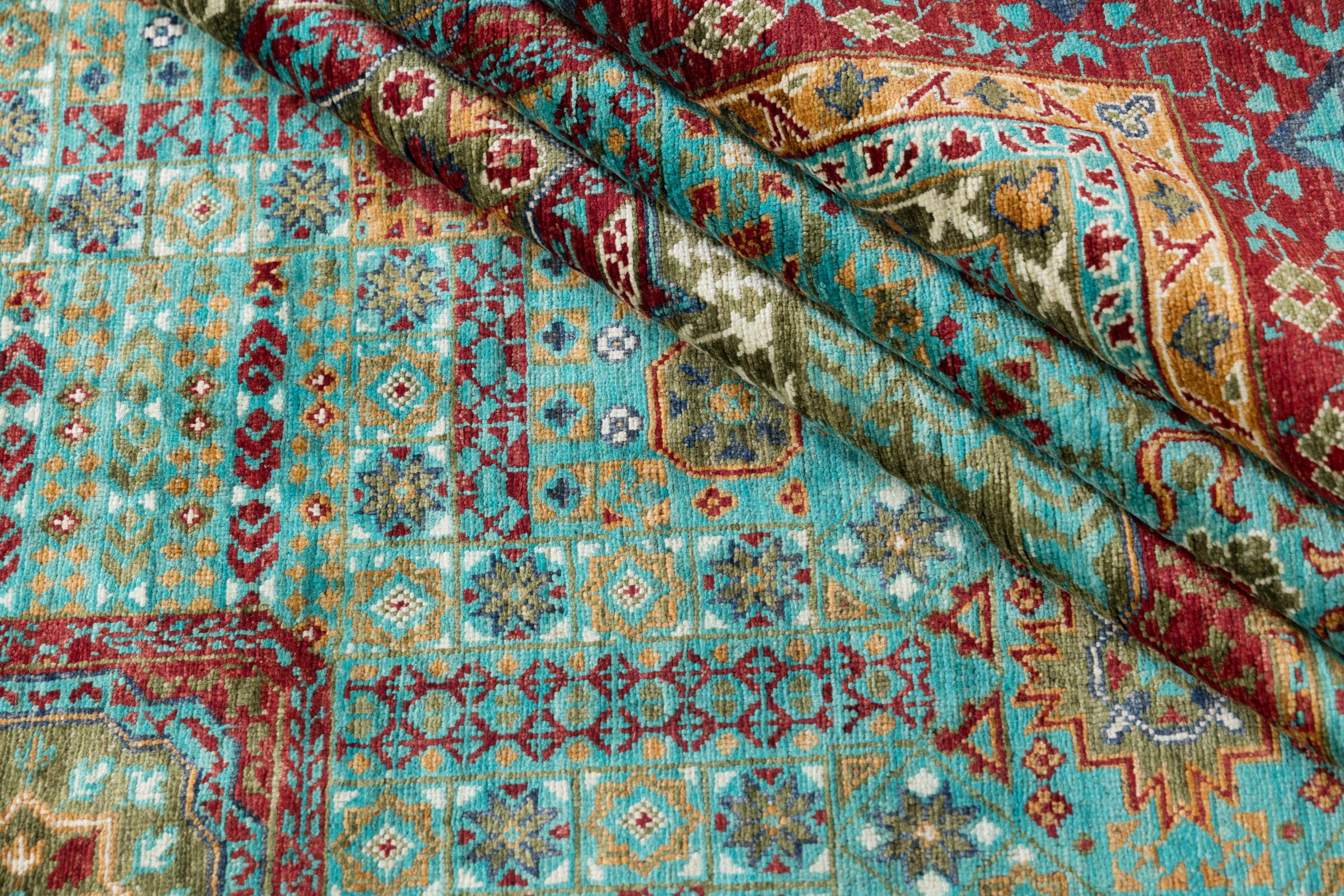 This rug is made of hand spun sheep wool of the highest quality. Especially in Iran (former Persia), Afghanistan and Pakistan wool is still spun by hand before the actual knotting of the rug begins. Wool has proven itself as a natural and extremely hard-wearing material over centuries. Among other things, it has dirt-repellent and heat-insulating properties. At the same time, wool is incomparably soft and has a natural shine.