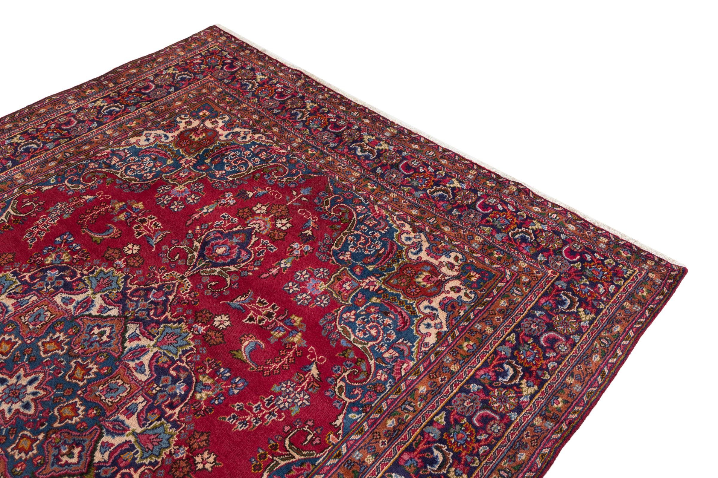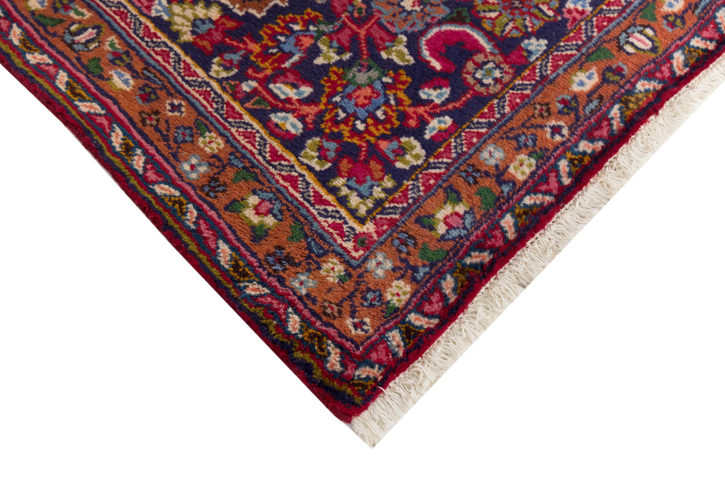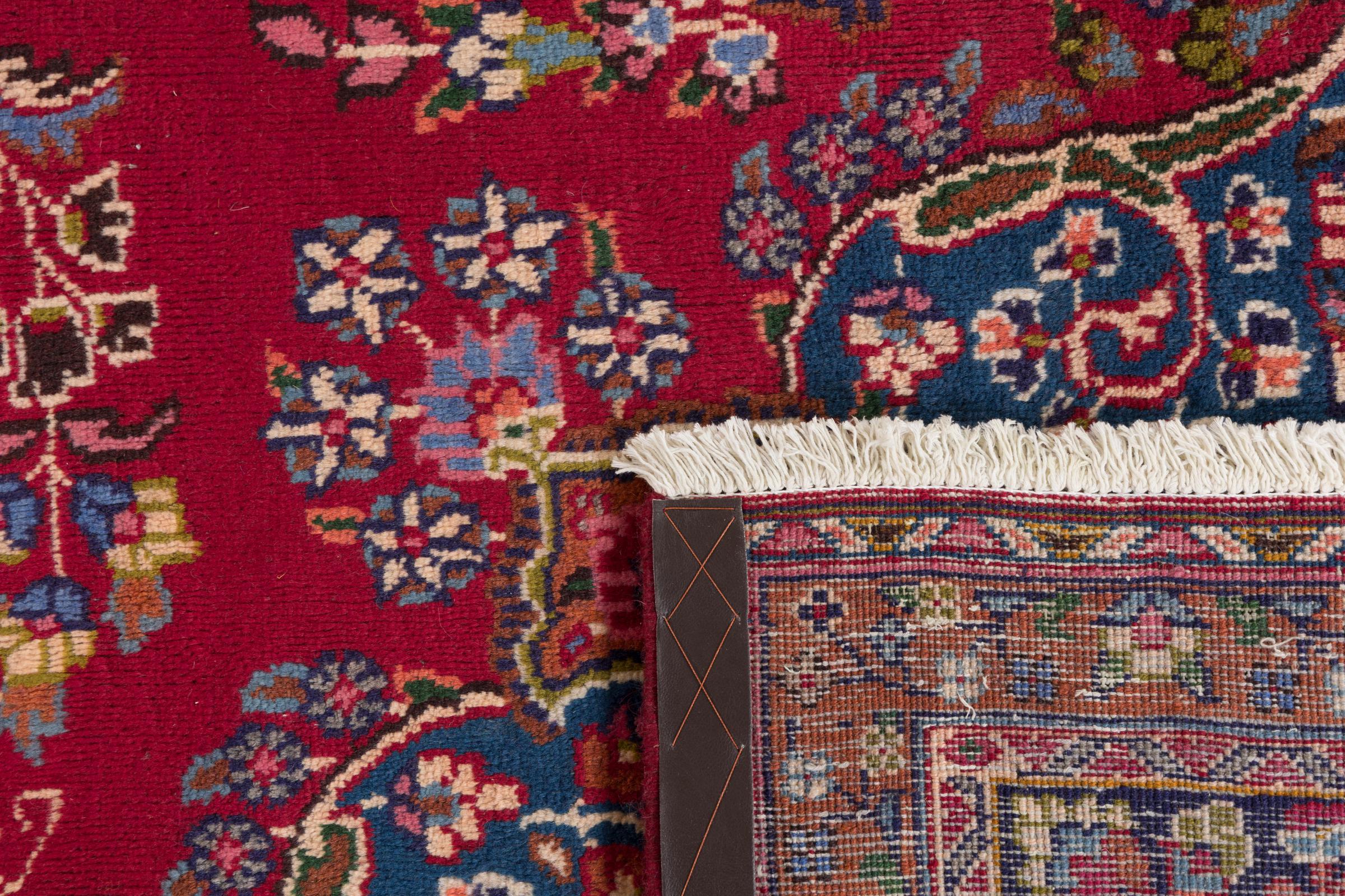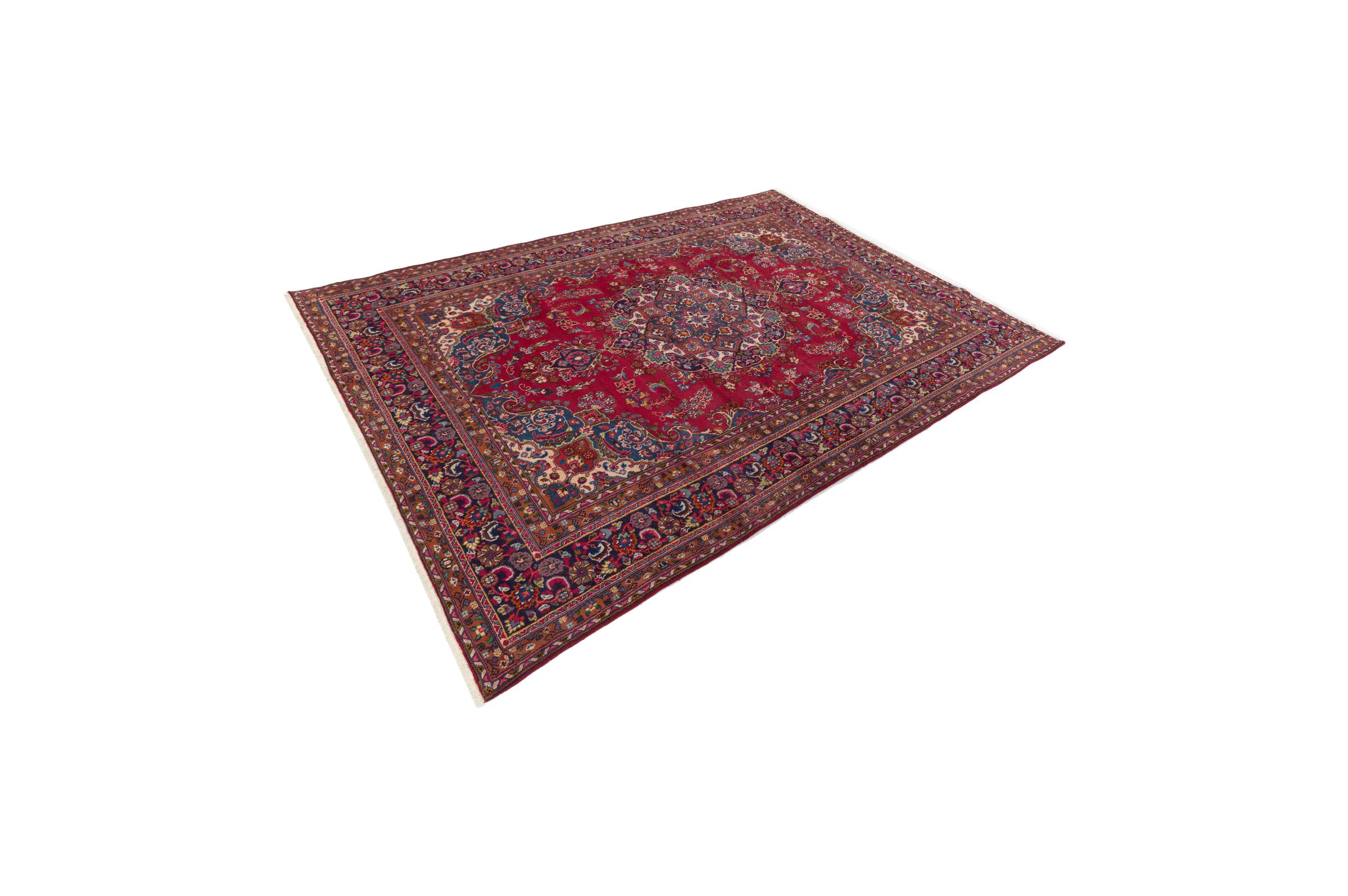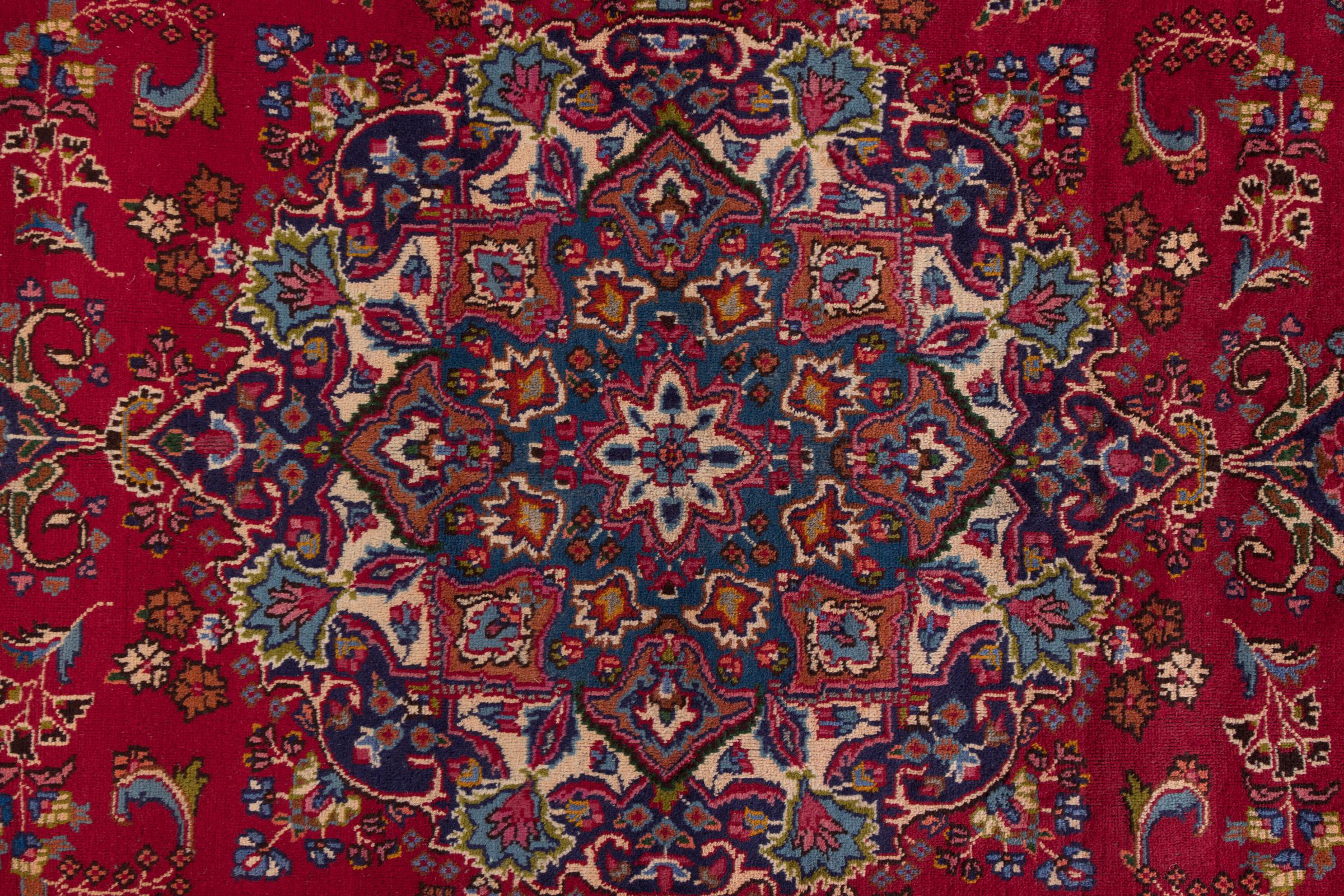 This carpet originates from Mashhad, one of the biggest cities of Iran and Persia. Mashhad carpets are known to be robust and enduring. Mostly they come in extraordinary large scales. A large genuine Persian carpet like this one requires a lot of skill and experience. Generally, it takes several months to craft such a carpet by hand in traditional handicraft.