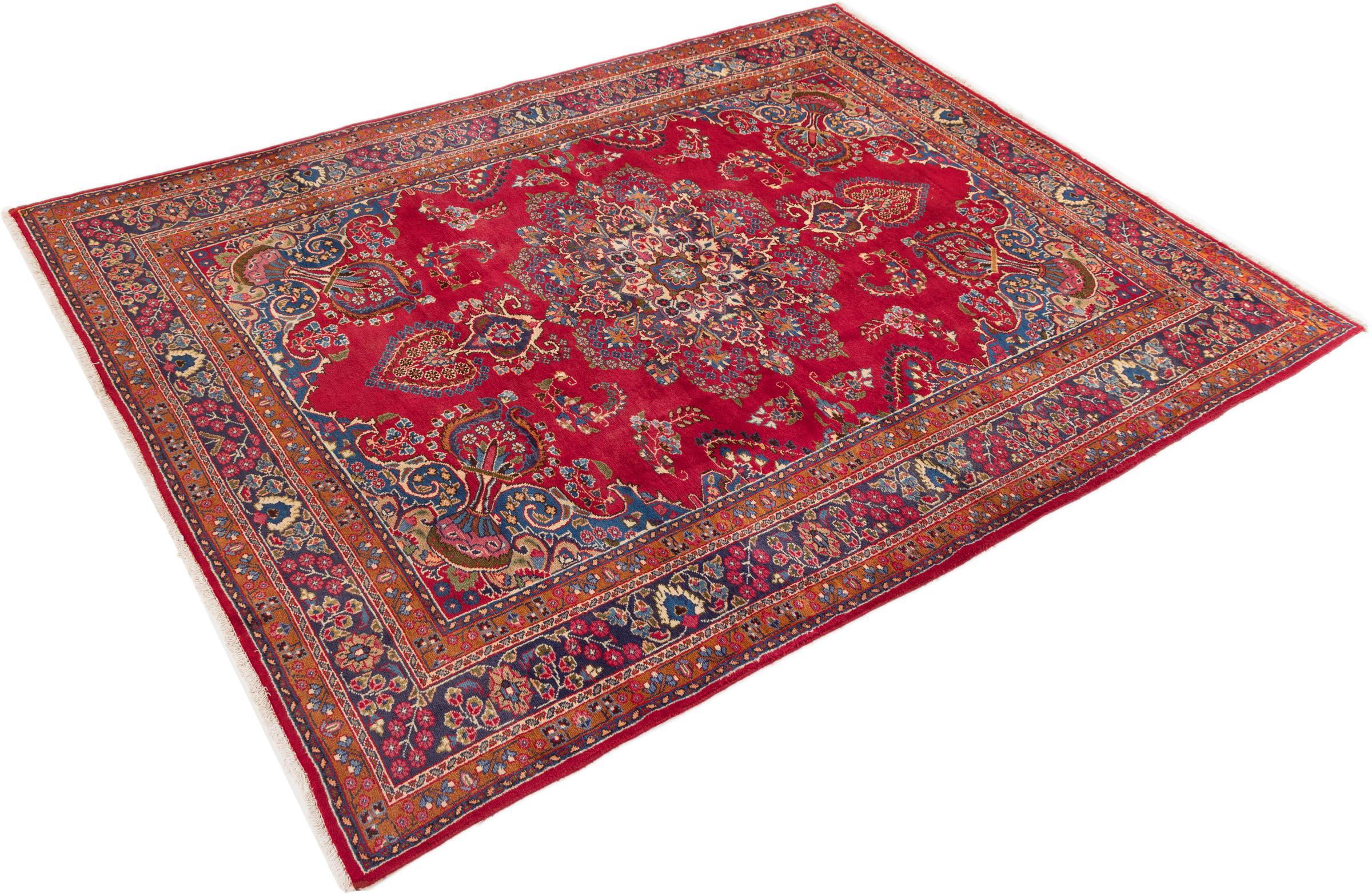 Carpet ID: 295521006785 Size: 295x198 cm Thickness: ap. 12 mm Knot density: 72 000 - 90 000 / m² Manufacturing: Knotted by hand Pile: Handspun wool Warp: Cotton Origin: Persia Age: New Weight: ap. 20 kg Also know as Maschad, Meshed In stock: Unique - Only 1 in stock