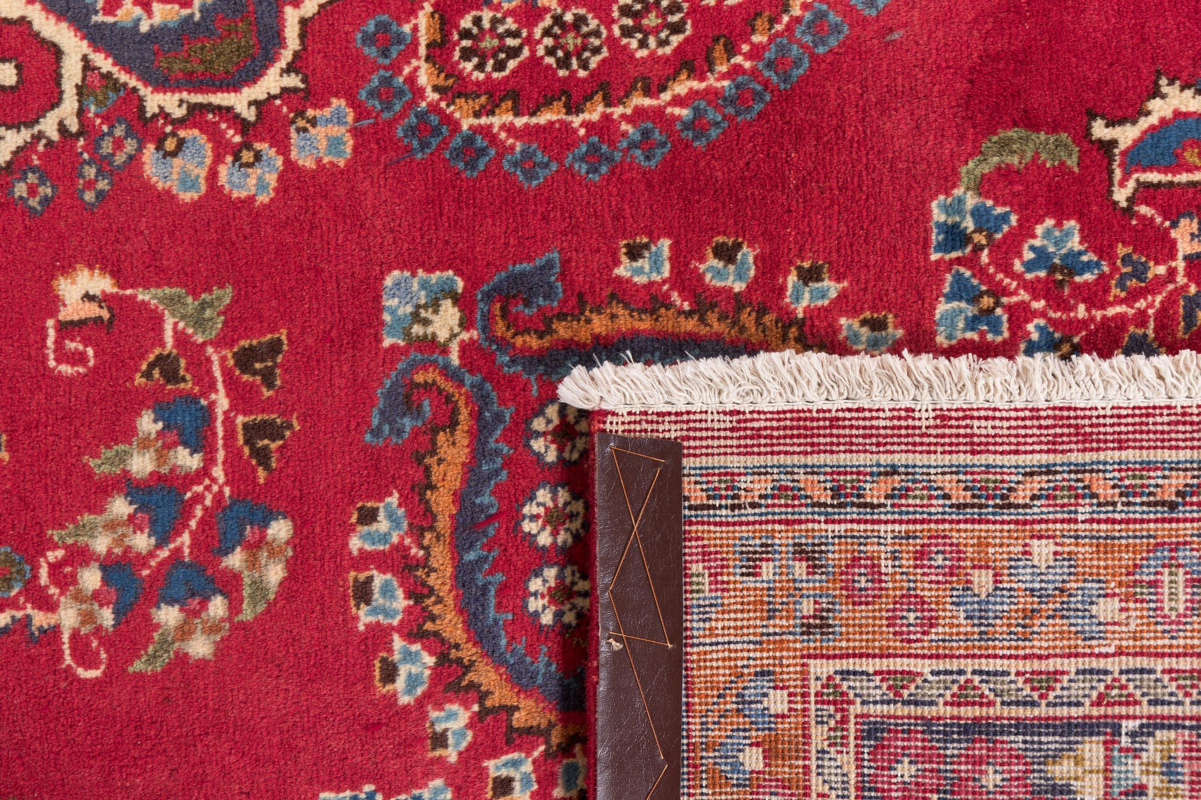 This carpet originates from Mashhad, one of the biggest cities of Iran and Persia. Mashhad carpets are known to be robust and enduring. Mostly they come in extraordinary large scales. A large genuine Persian carpet like this one requires a lot of skill and experience. Generally, it takes several months to craft such a carpet by hand in traditional handicraft.