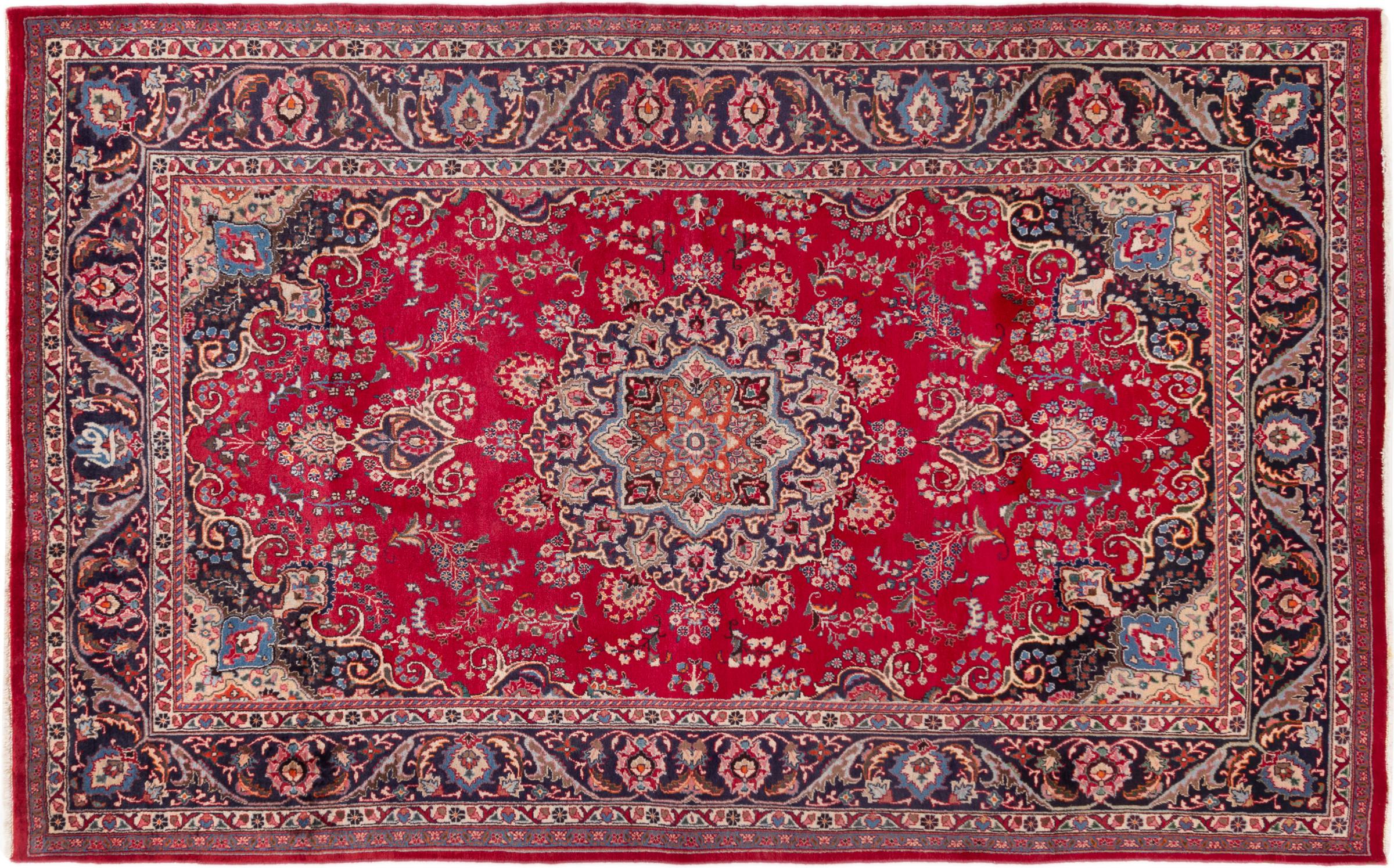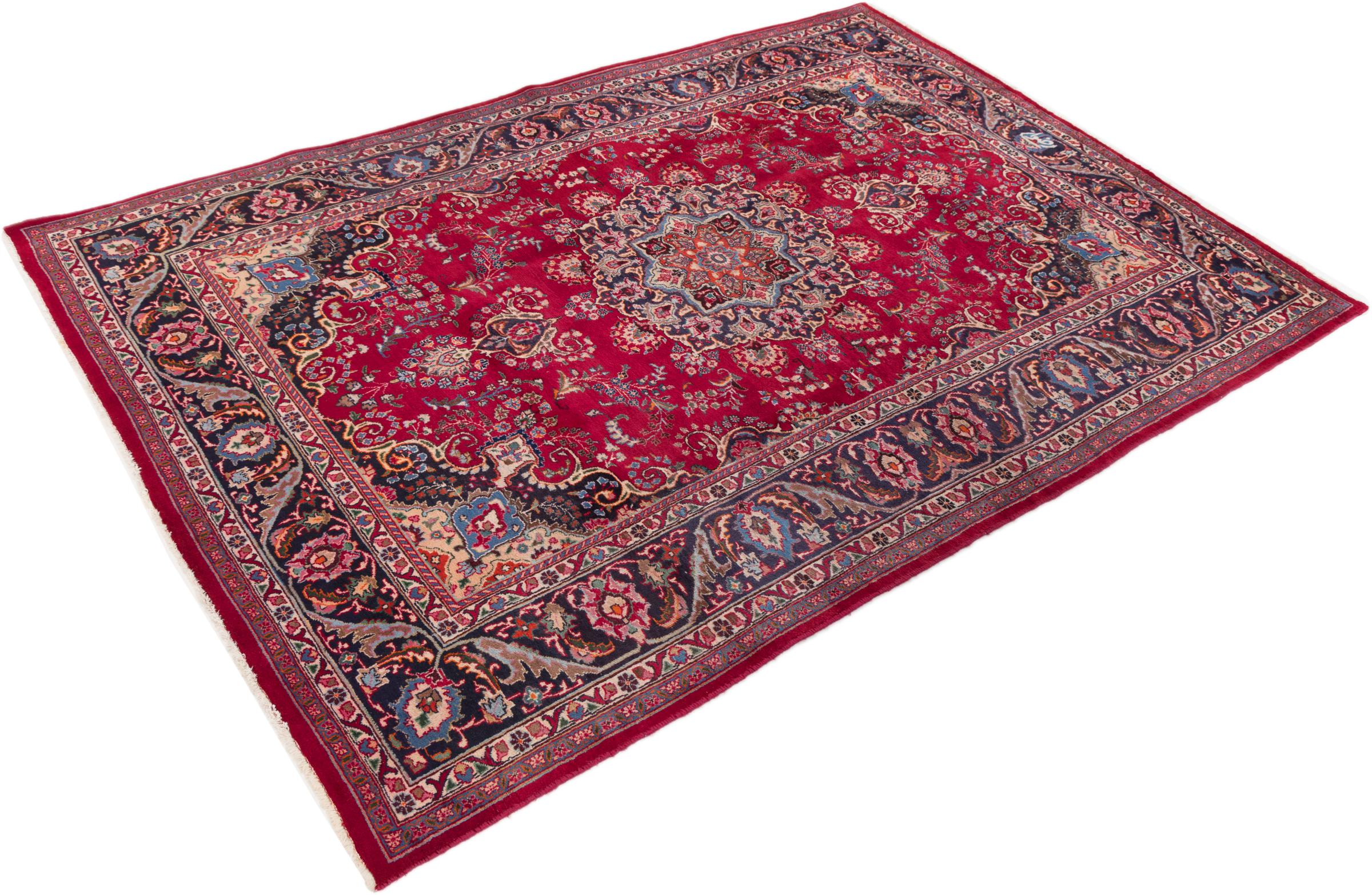 Carpet ID: 295527008903 Size: 315x197 cm Thickness: ap. 12 mm Knot density: 128 000 - 160 000 / m² Manufacturing: Knotted by hand Pile: Handspun wool Warp: Cotton Origin: Persia Age: New Weight: ap. 22 kg Also know as Maschad, Meshed In stock: Unique - Only 1 in stock