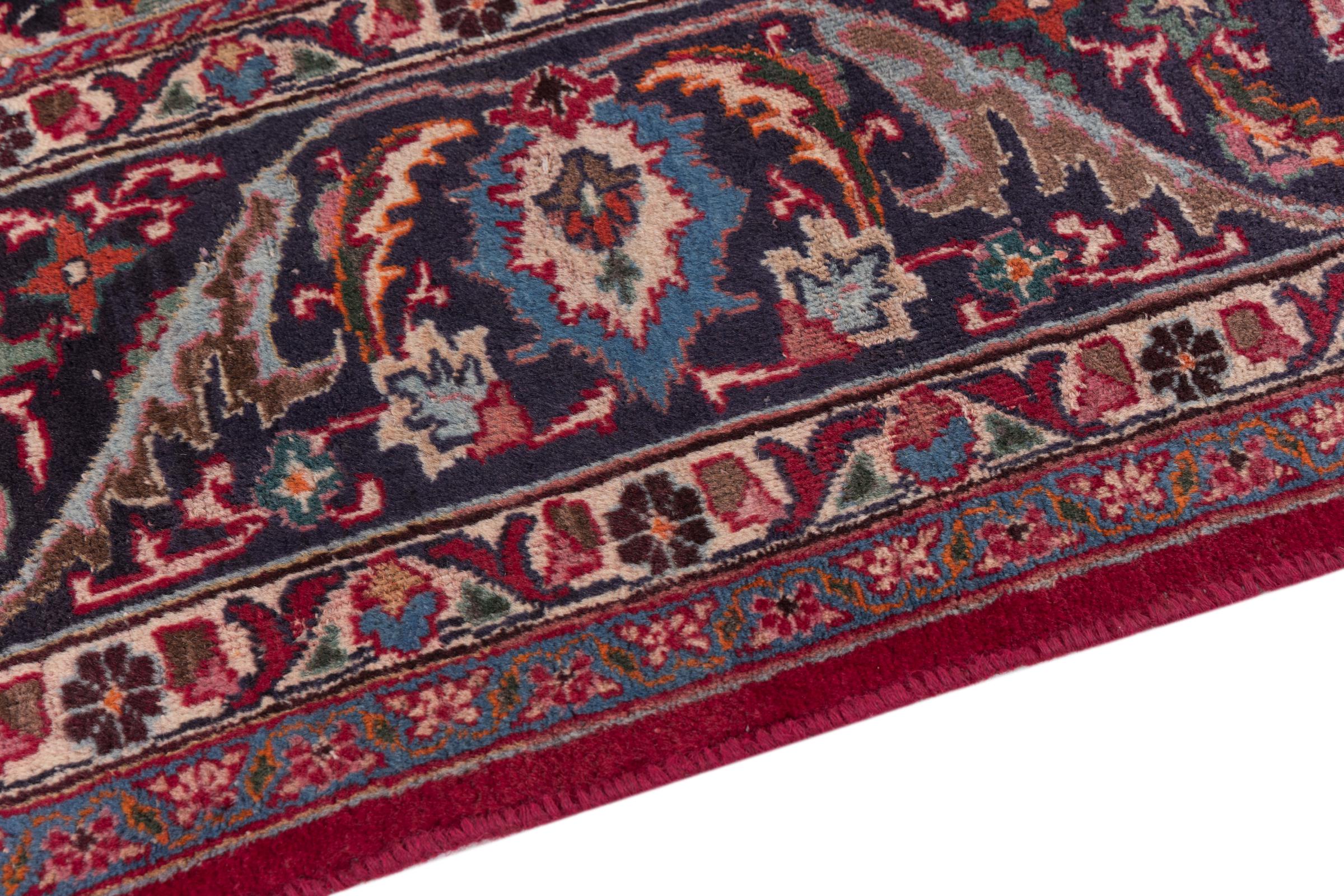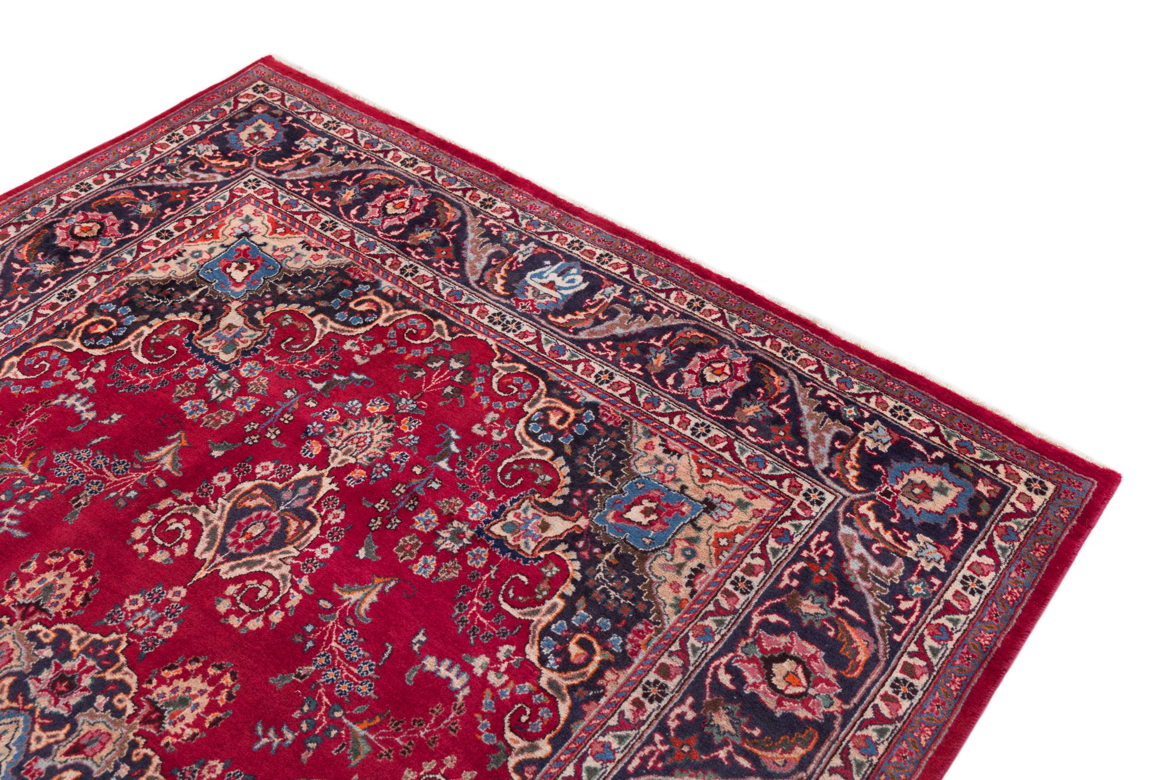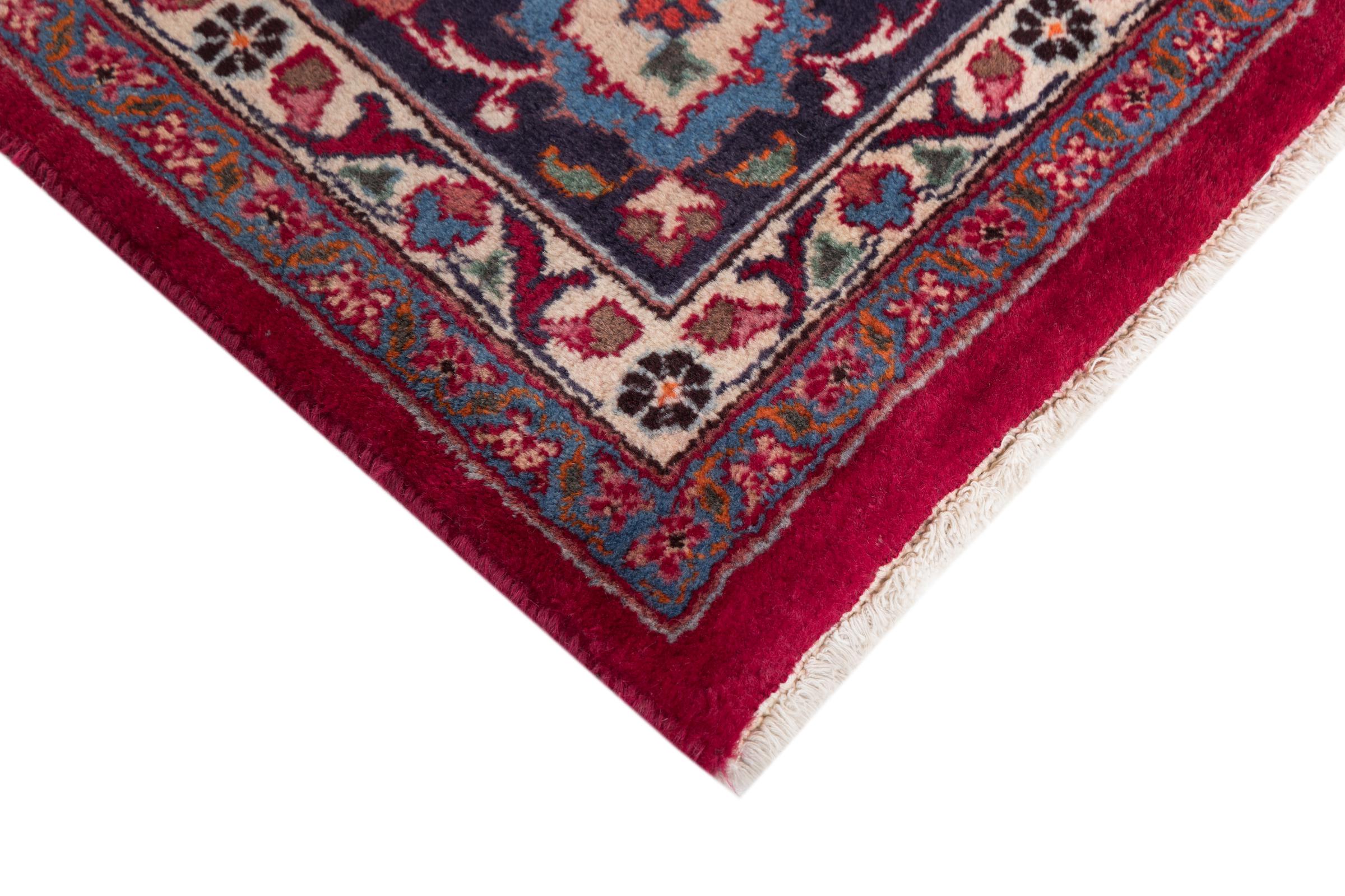 This carpet originates from Mashhad, one of the biggest cities of Iran and Persia. Mashhad carpets are known to be robust and enduring. Mostly they come in extraordinary large scales. A large genuine Persian carpet like this one requires a lot of skill and experience. Generally, it takes several months to craft such a carpet by hand in traditional handicraft.