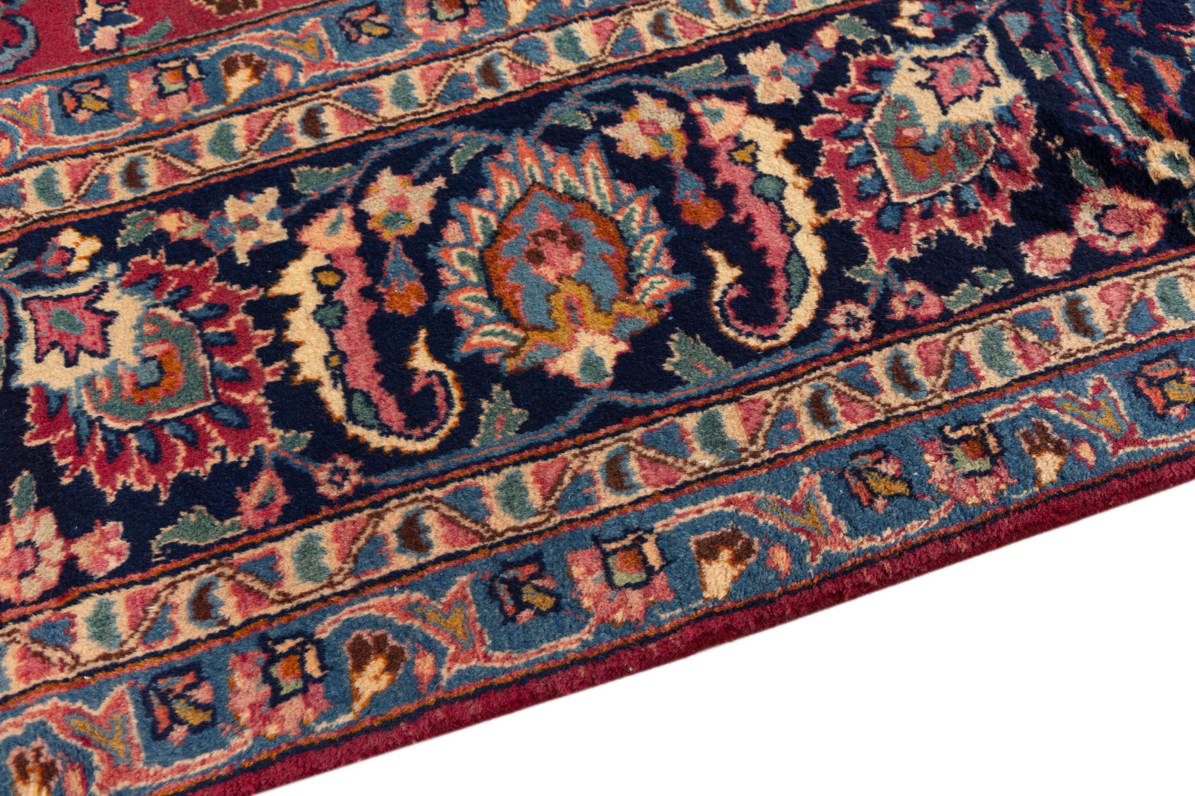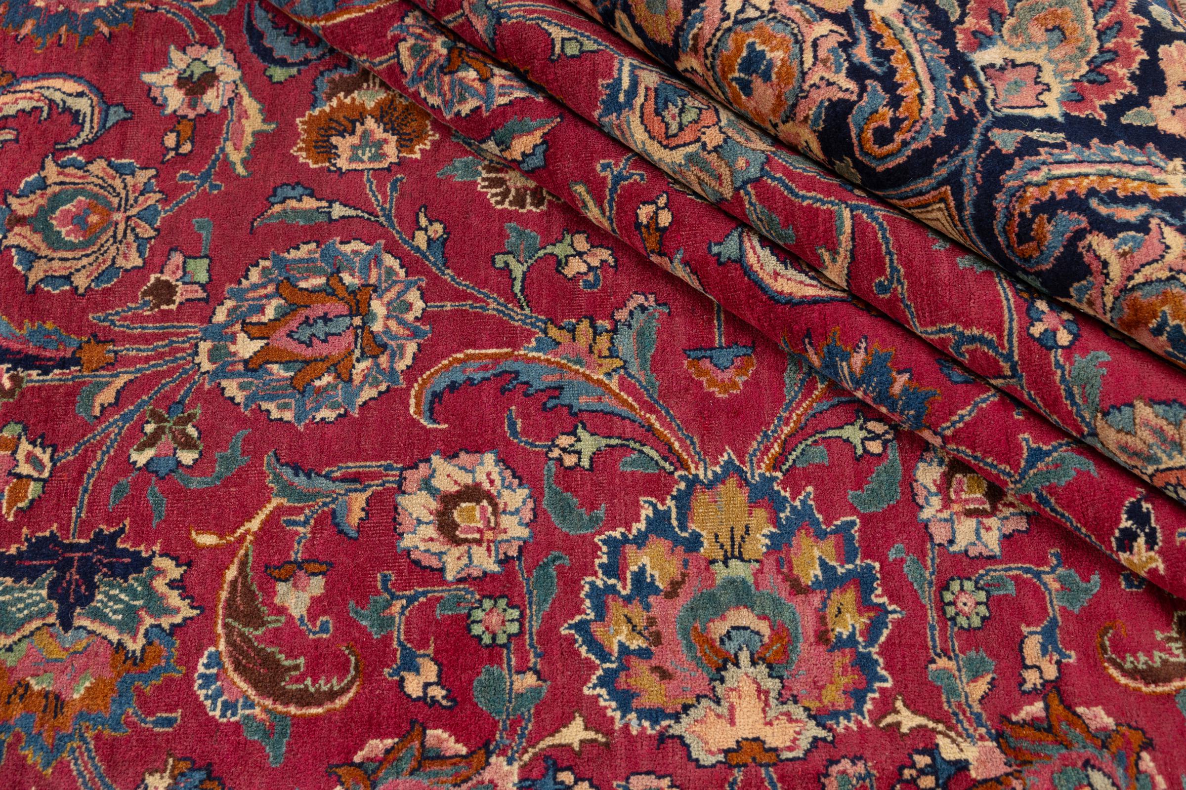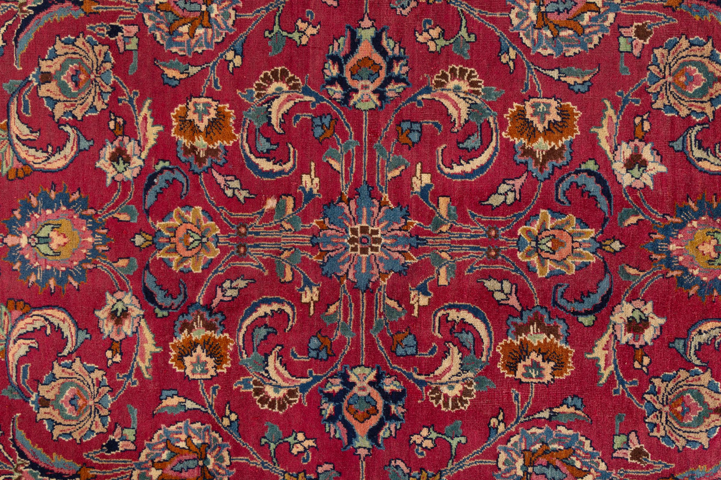 This carpet originates from Mashhad, one of the biggest cities of Iran and Persia. Mashhad carpets are known to be robust and enduring. Mostly they come in extraordinary large scales. A large genuine Persian carpet like this one requires a lot of skill and experience. Generally, it takes several months to craft such a carpet by hand in traditional handicraft.