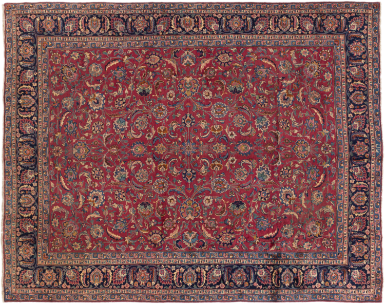 Carpet ID: 295125008197 Size: 395x302 cm Thickness: ap. 12 mm Knot density: 200 000 - 250 000 / m² Manufacturing: Knotted by hand Pile: Handspun wool Warp: Cotton Condition / Conservation There is minor wear on certain areas of the carpet Origin: Persia Age: Old/Semi antique, over 50 years Weight: ap. 42 kg Also know as Maschad, Meshed In stock: Unique - Only 1 in stock