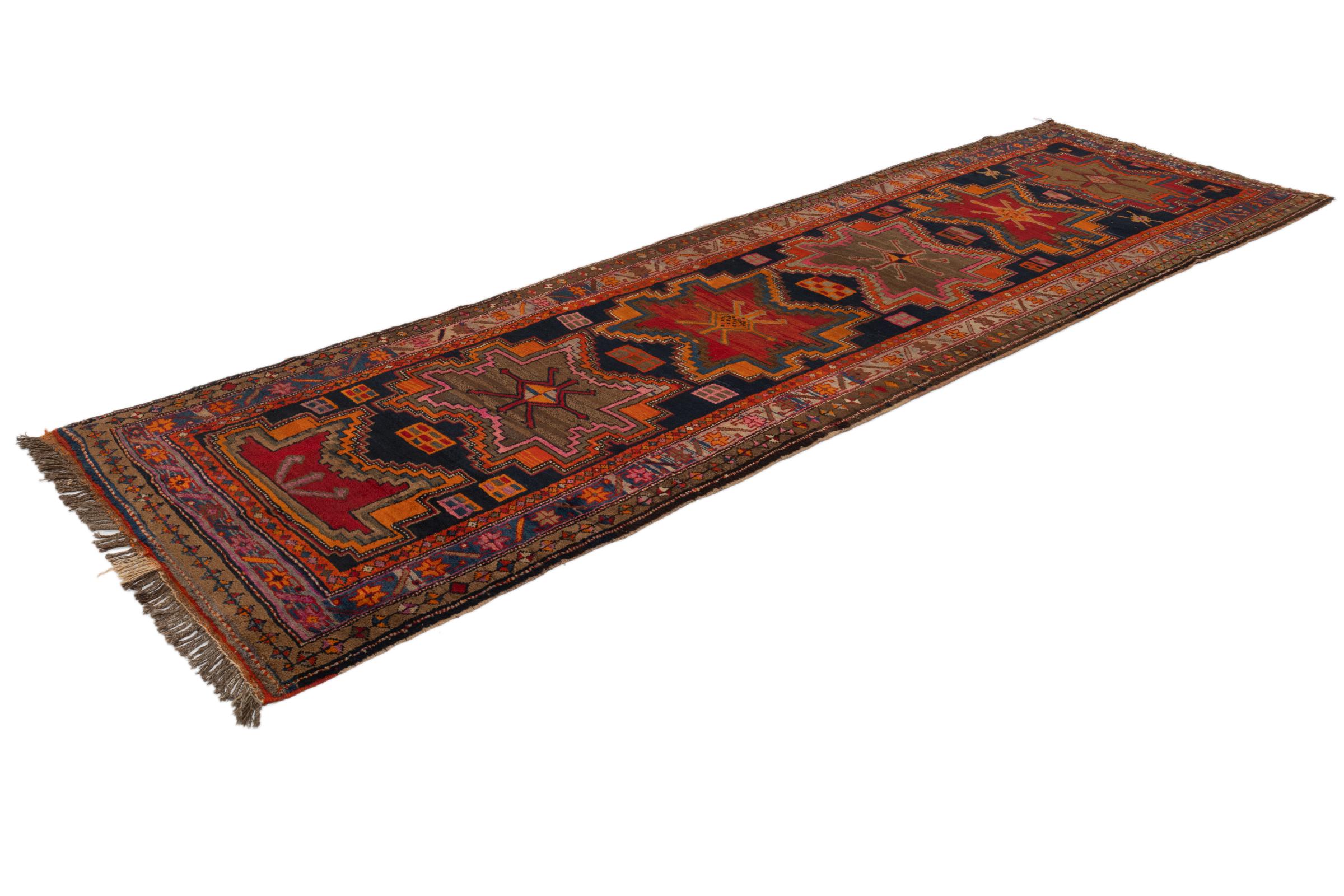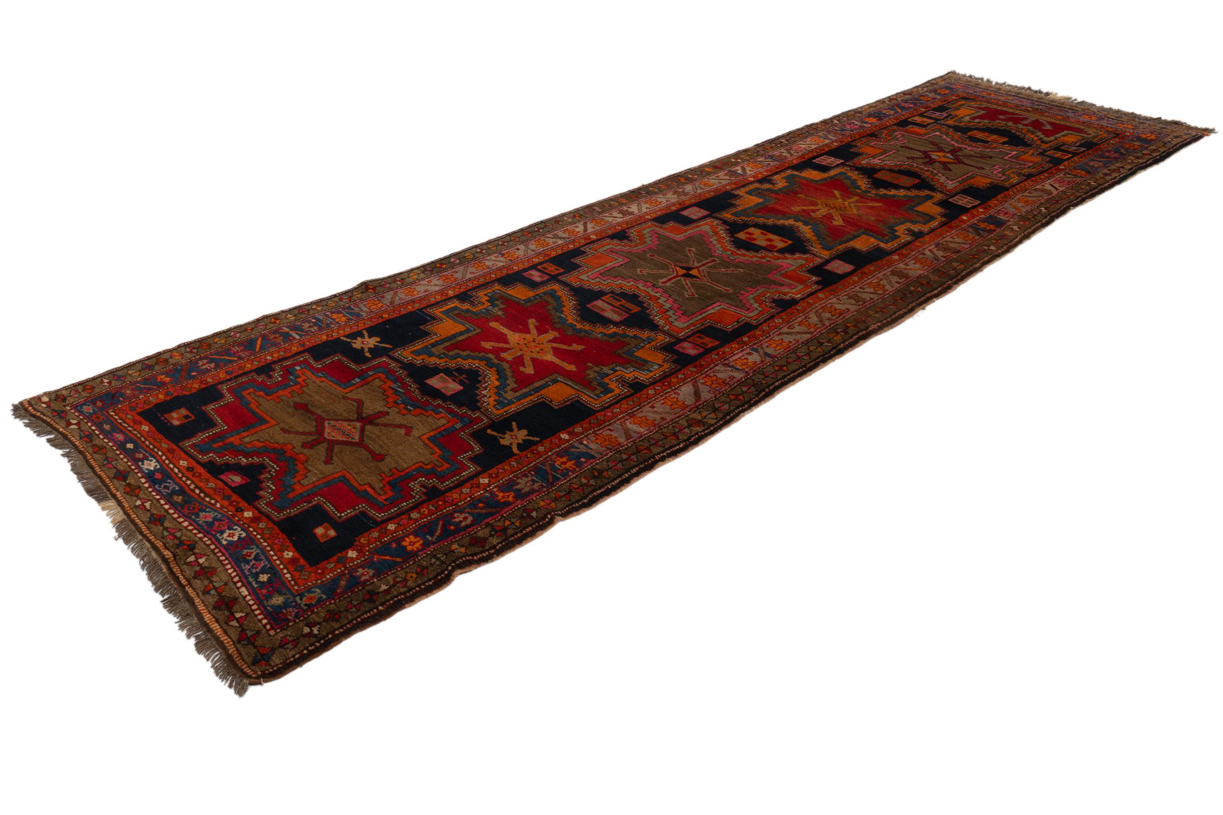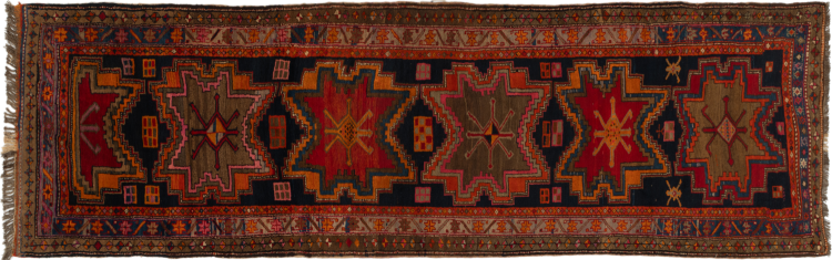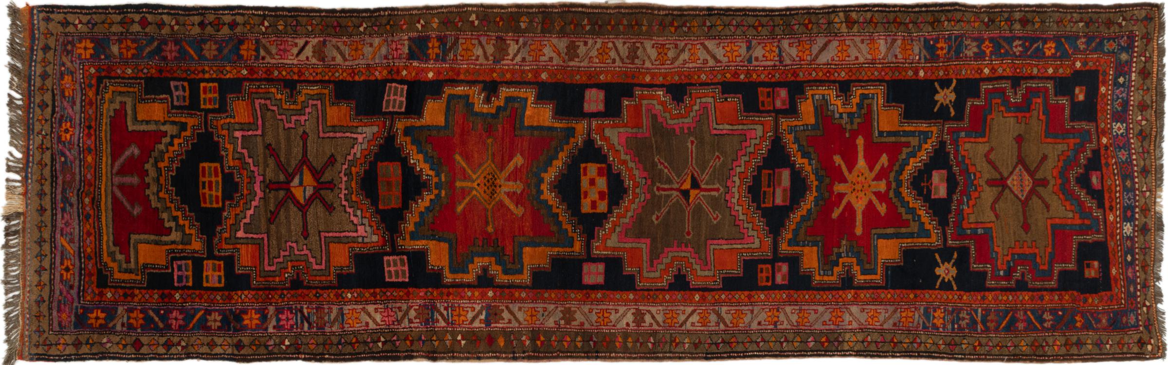 Carpet ID: 297071006402985 Size: 443x131 cm Thickness: ap. 12 mm Knot density: 128 000 - 160 000 / m² Manufacturing: Knotted by hand Pile: Sheep wool Warp: Sheep wool Condition / Conservation Carpet has discoloration areas Origin: Persia Age: Antique, over 80 years Weight: ap. 20 kg In stock: Unique - Only 1 in stock