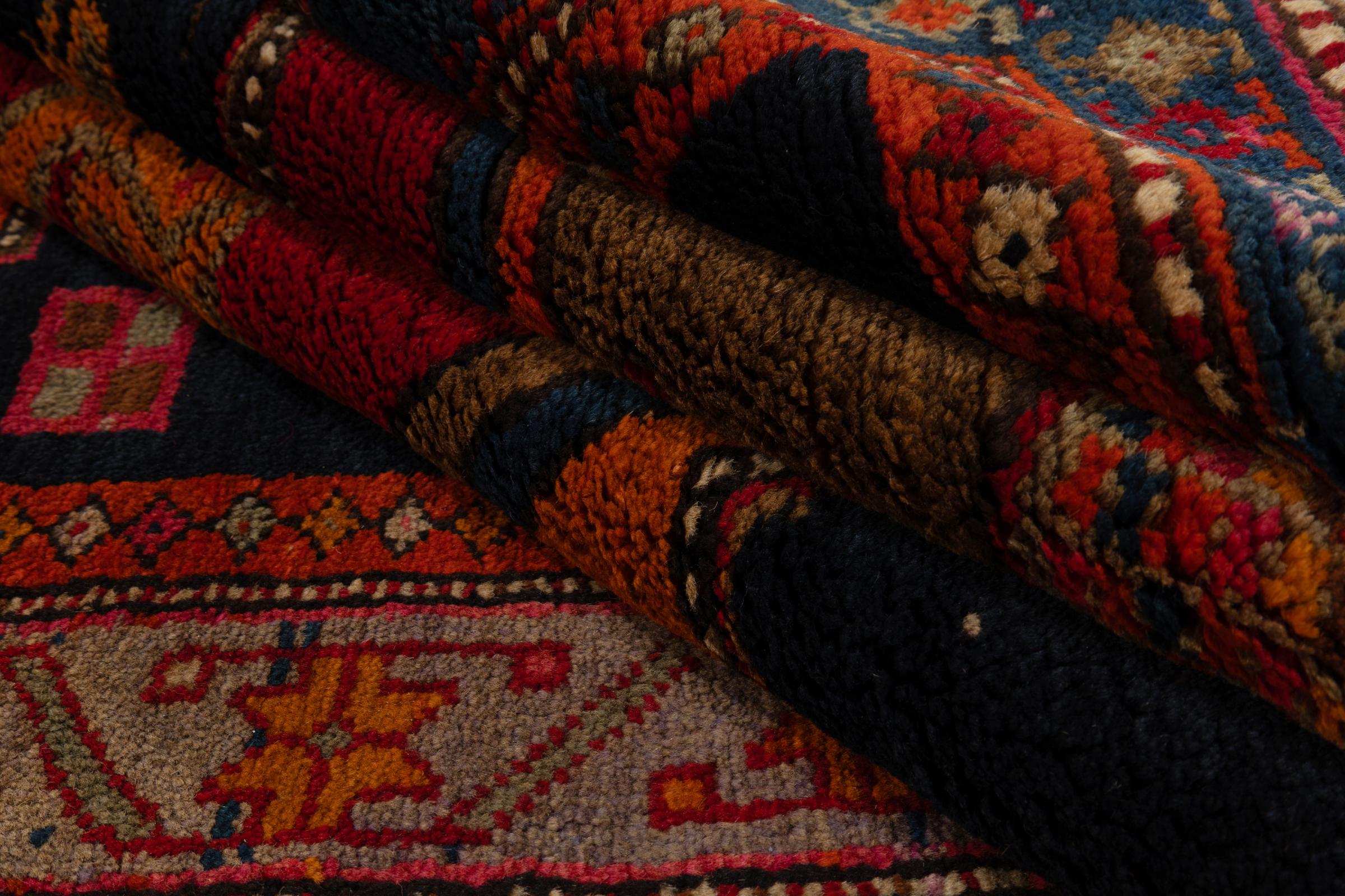 This rug belongs to village and nomadic rugs from Iran, formerly Persia. This type of rug is knotted by hand in smaller towns and villages in old tradition. Even nomads still knot Persian rugs in the open air. The rugs are knotted without a draft and completely from the mind. They are characterized by classical ornaments, which are arranged in straight and geometrical patterns. Thanks to their cultural-traditional origin, these rugs have a unique character that embodies ancient Persia.