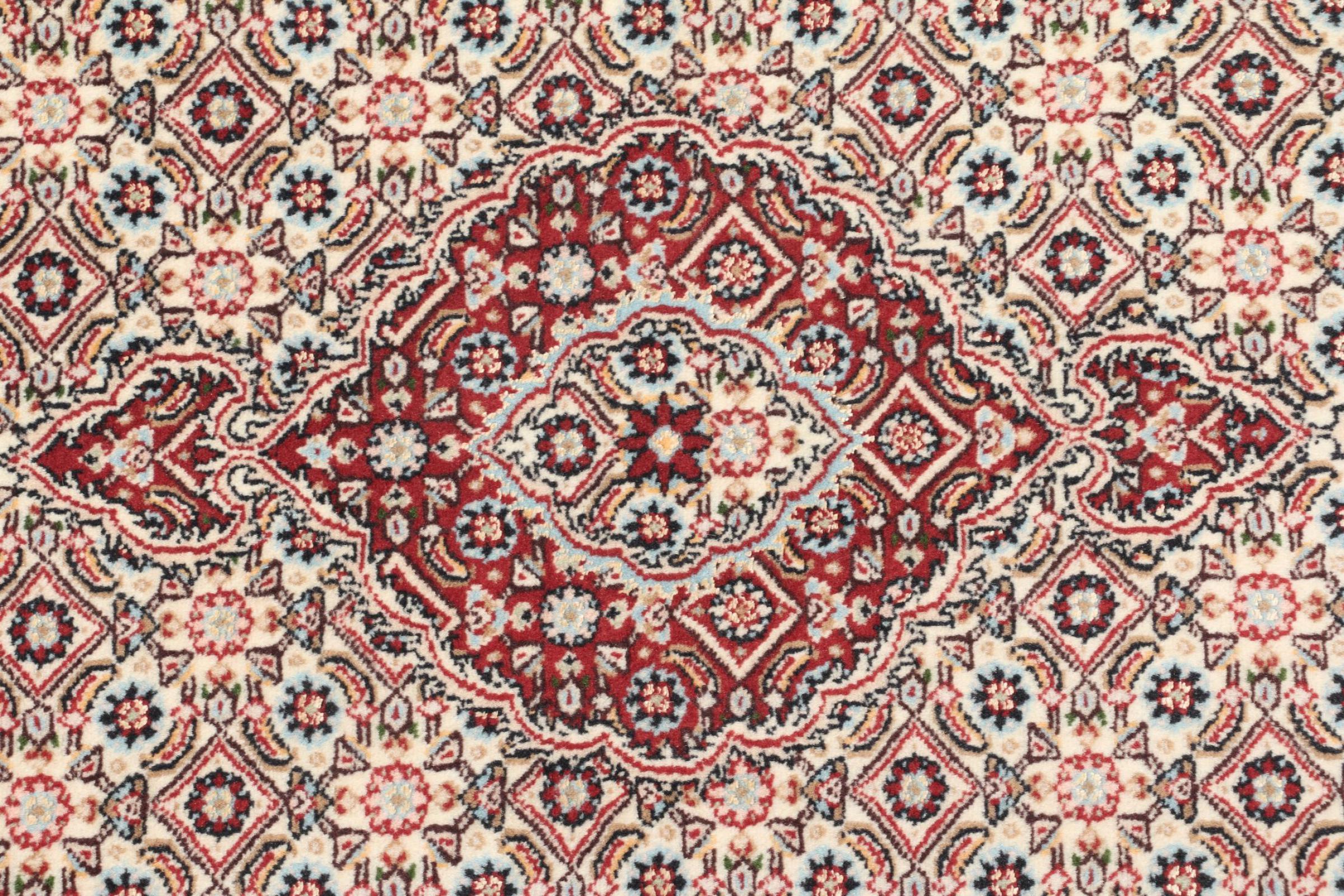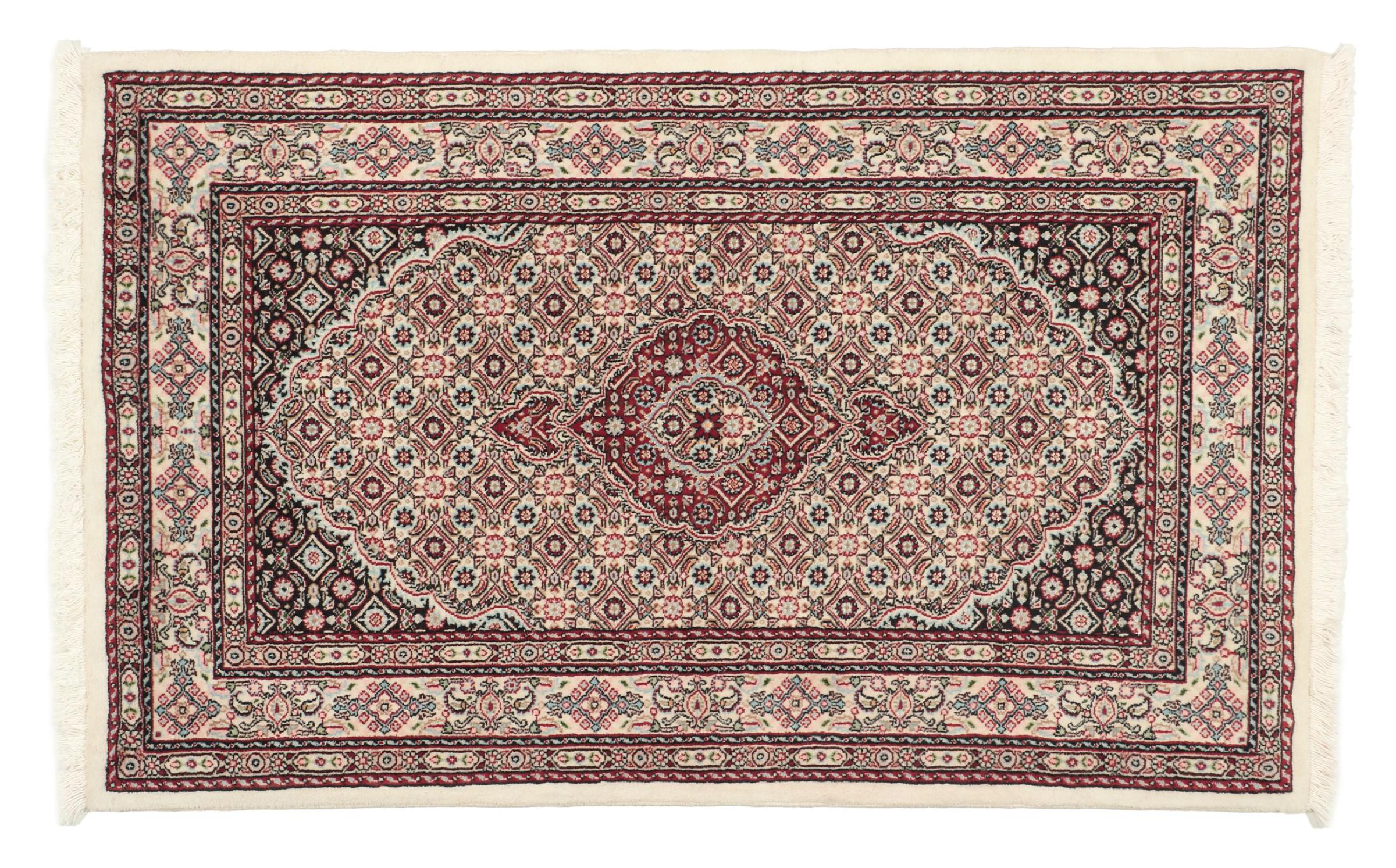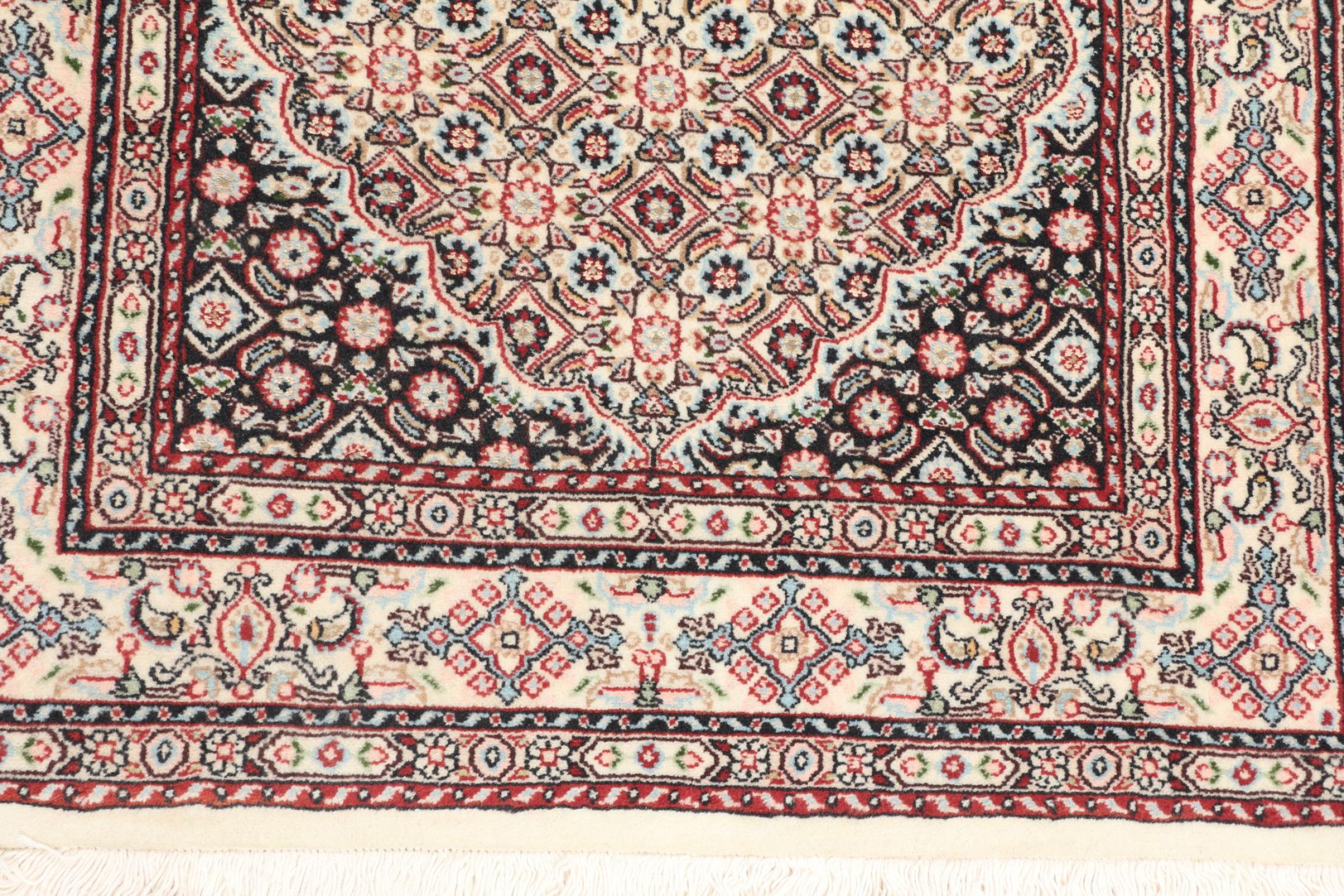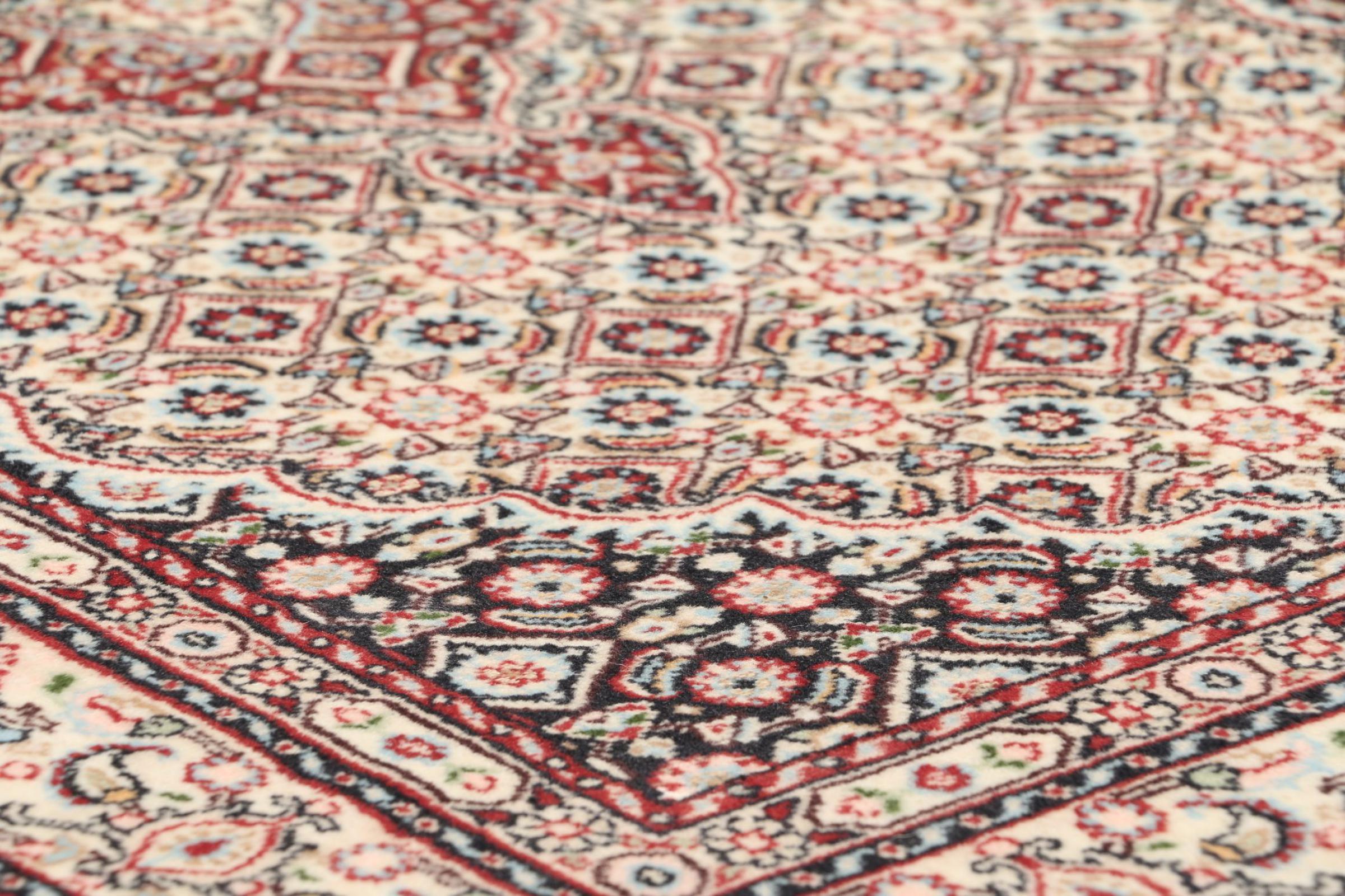 Moud is located in Iran, south of Mashhad. As a city of former Persia, its tradition of rug-making goes back many centuries, if not thousands of years. Hand knotted rugs from Moud enjoy an excellent reputation. They are made with the famous Persian knot. Typically, Moud Persian rugs have a pattern that covers the entire surface. The Garden pattern with motifs from Persian gardens or the Herati pattern.