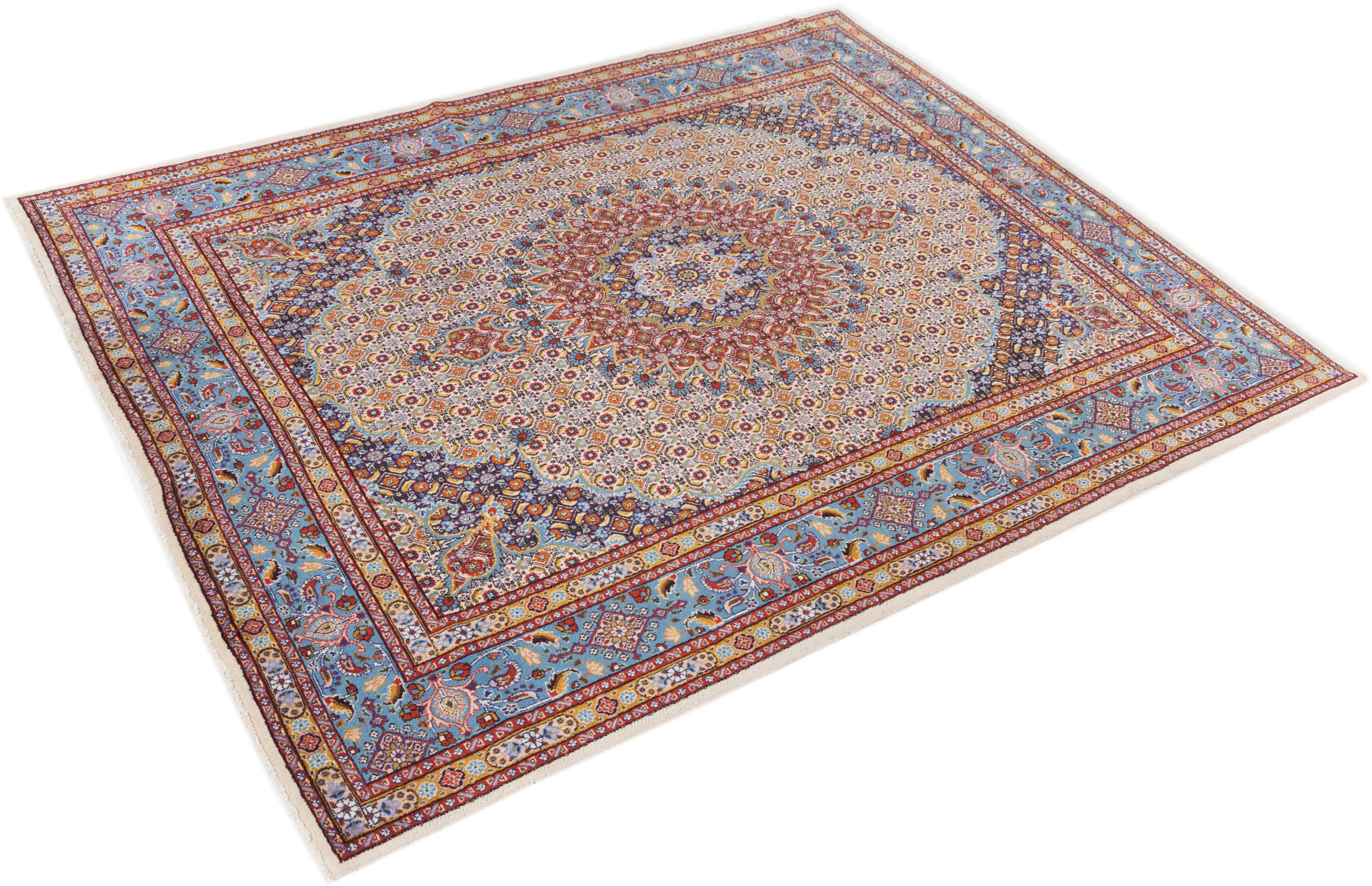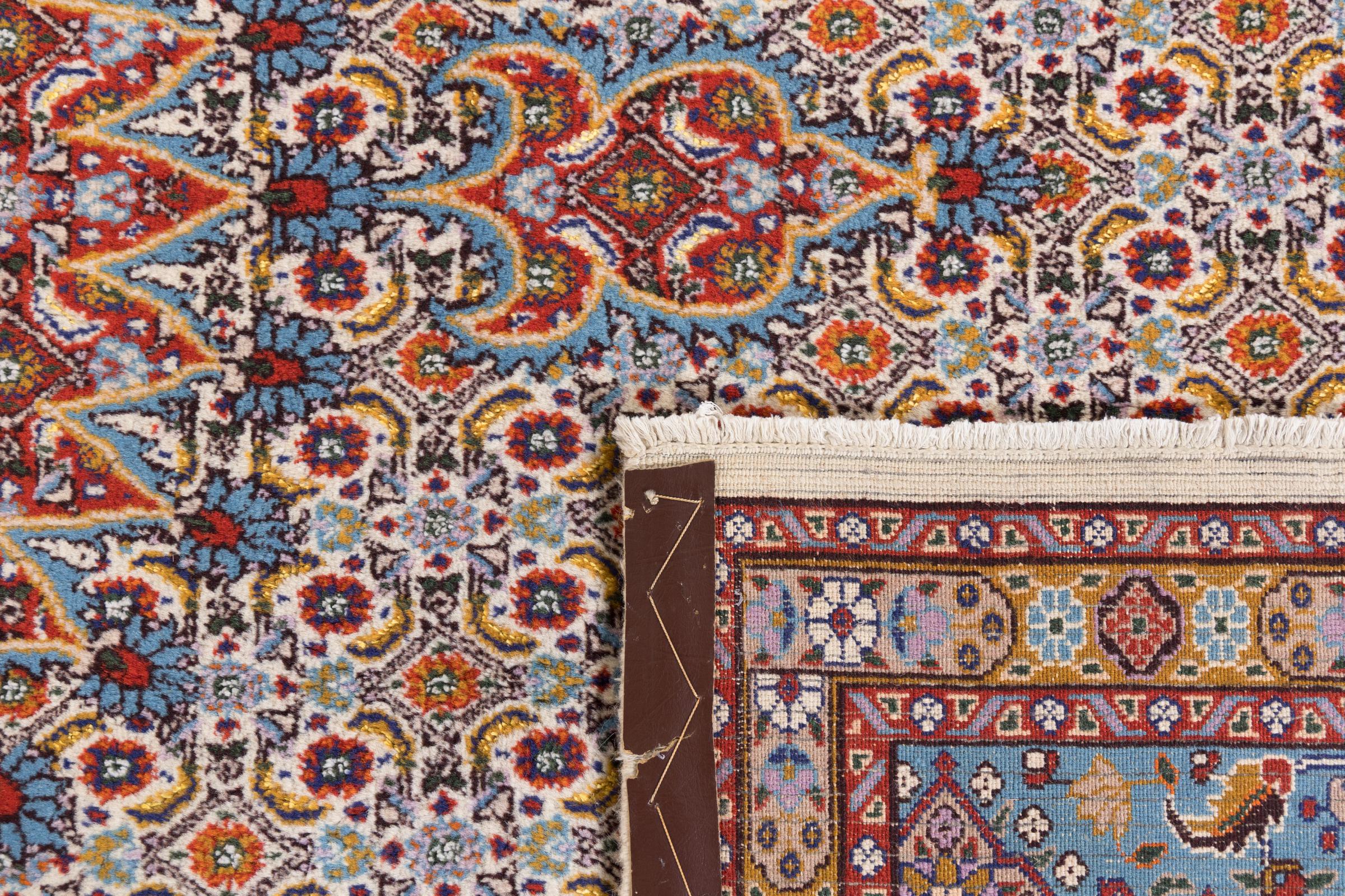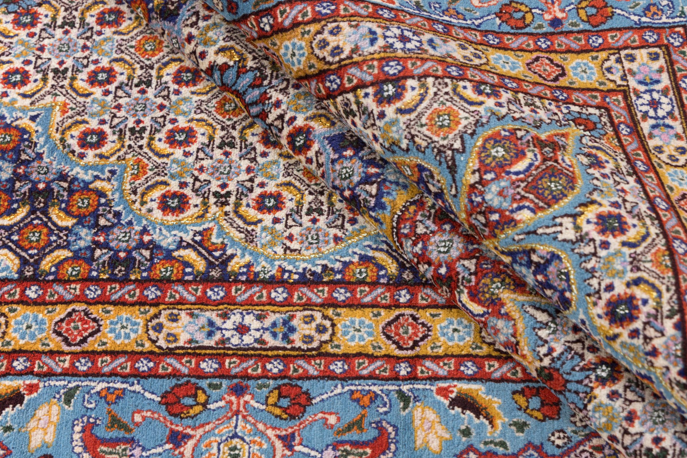 This carpet from Moud, a city 300 kilometres south of Mashhad, impresses at first glance. The typical Herati pattern or garden design is appreciated by connoisseurs and lovers of genuine Persian rugs. If you are looking for a handmade rug of fine quality with a very unique and distinctive design, this type of rug is the perfect choice.