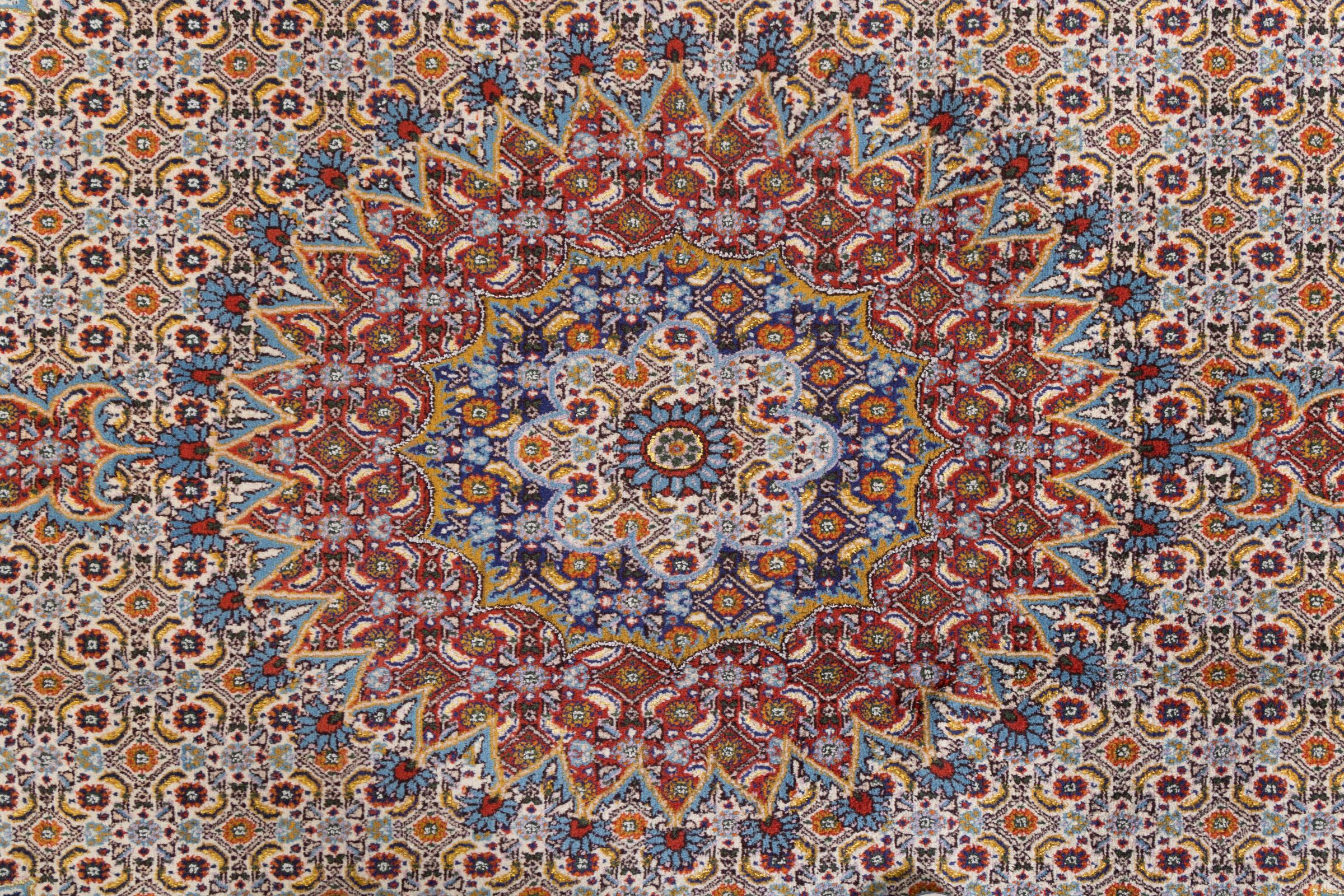 Moud is located in Iran, south of Mashhad. As a city of former Persia, its tradition of rug-making goes back many centuries, if not thousands of years. Hand knotted rugs from Moud enjoy an excellent reputation. They are made with the famous Persian knot. Typically, Moud Persian rugs have a pattern that covers the entire surface. The Garden pattern with motifs from Persian gardens or the Herati pattern.