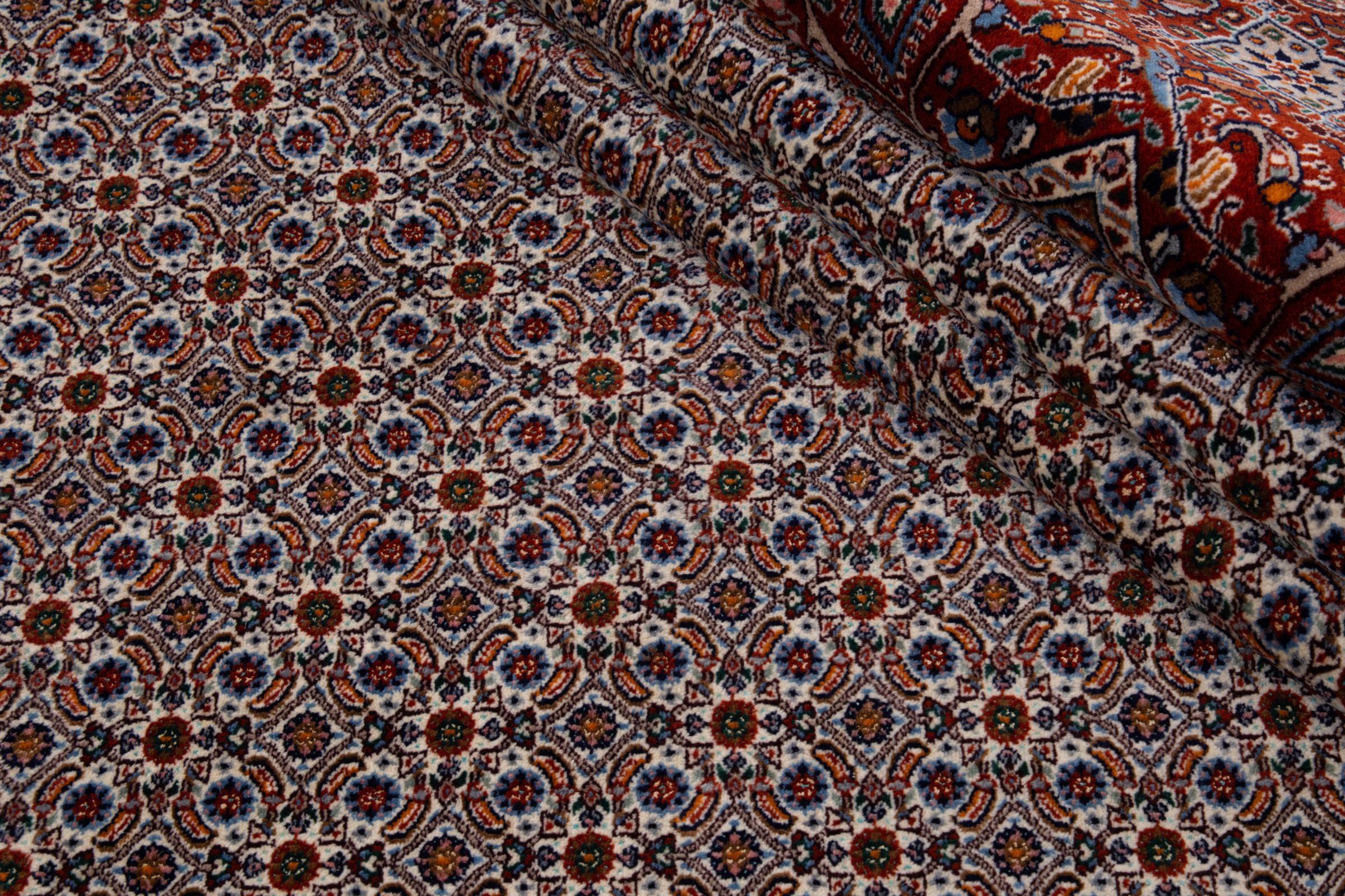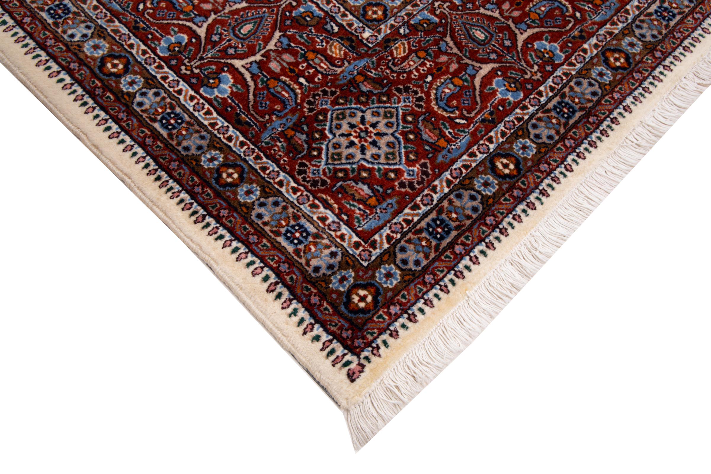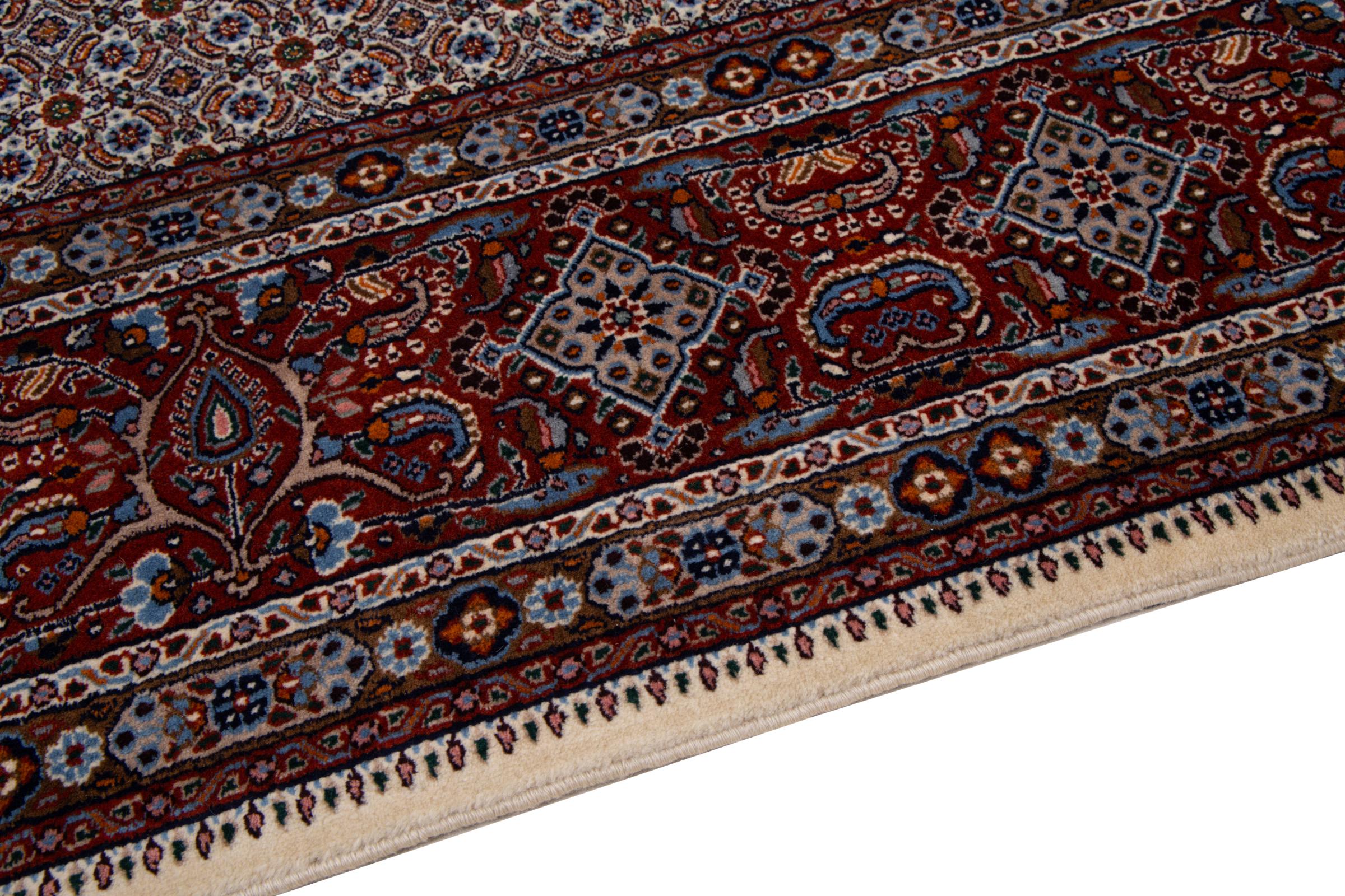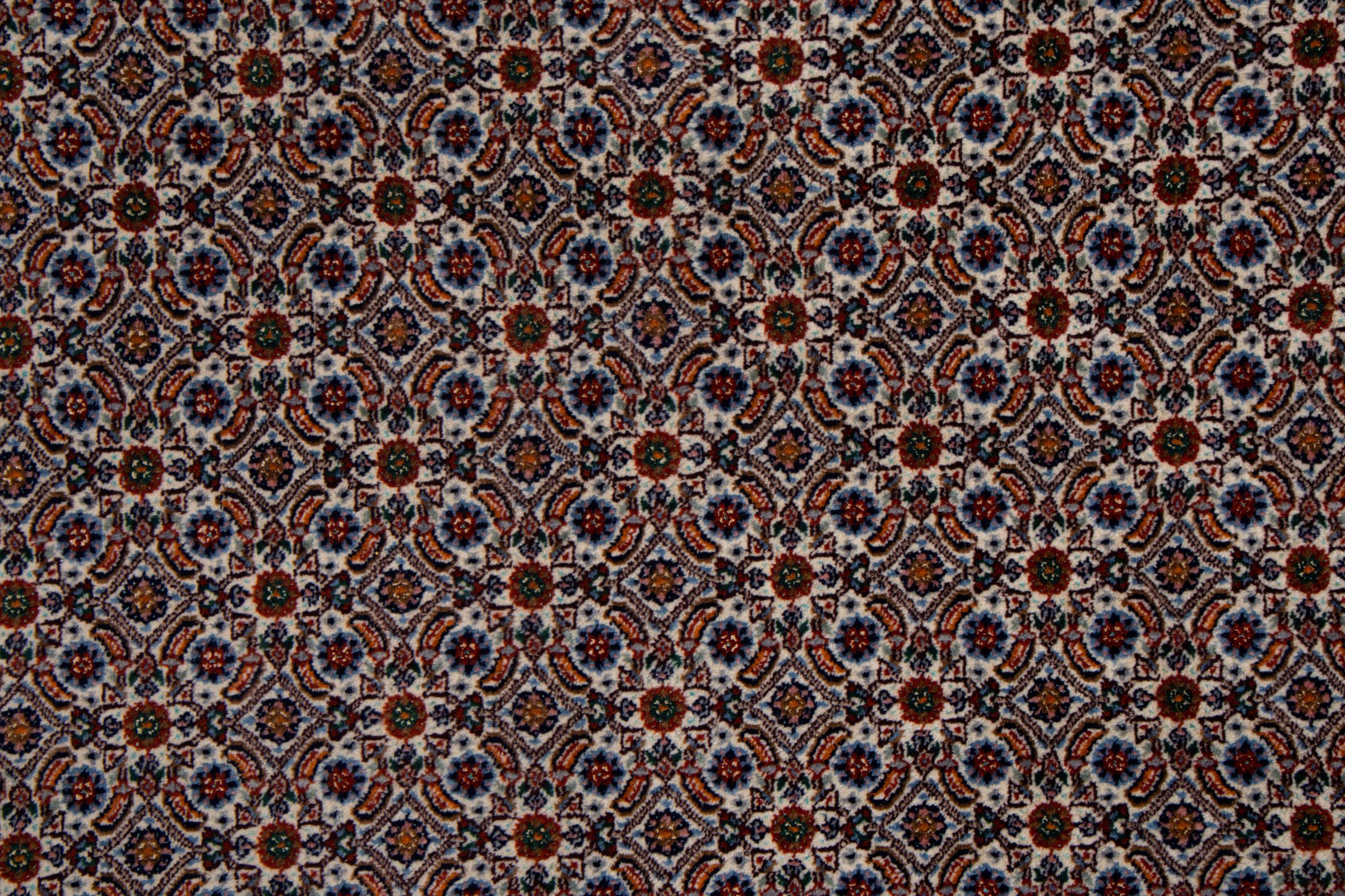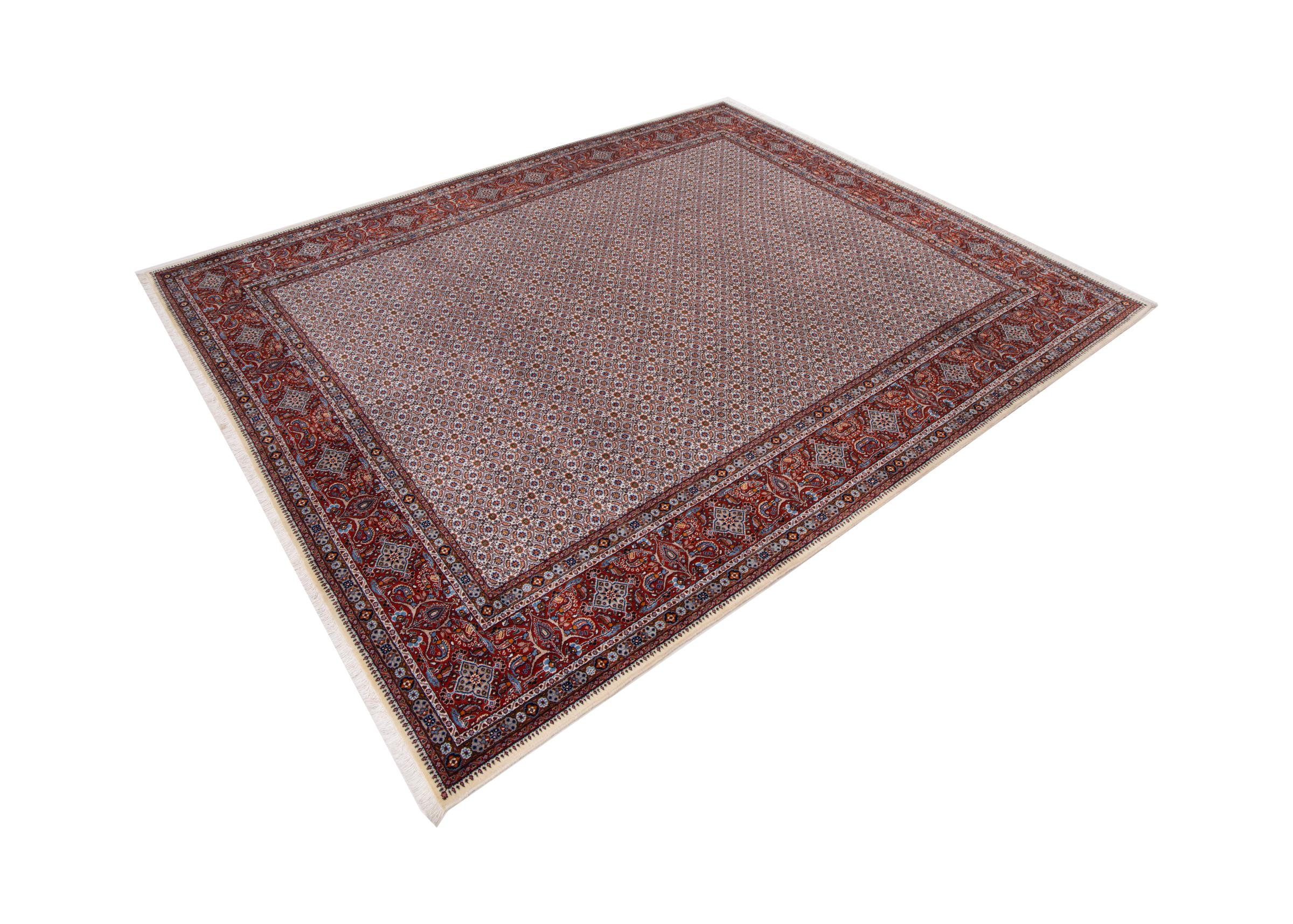 This carpet from Moud, a city 300 kilometres south of Mashhad, impresses at first glance. The typical Herati pattern or garden design is appreciated by connoisseurs and lovers of genuine Persian rugs. If you are looking for a handmade rug of fine quality with a very unique and distinctive design, this type of rug is the perfect choice.