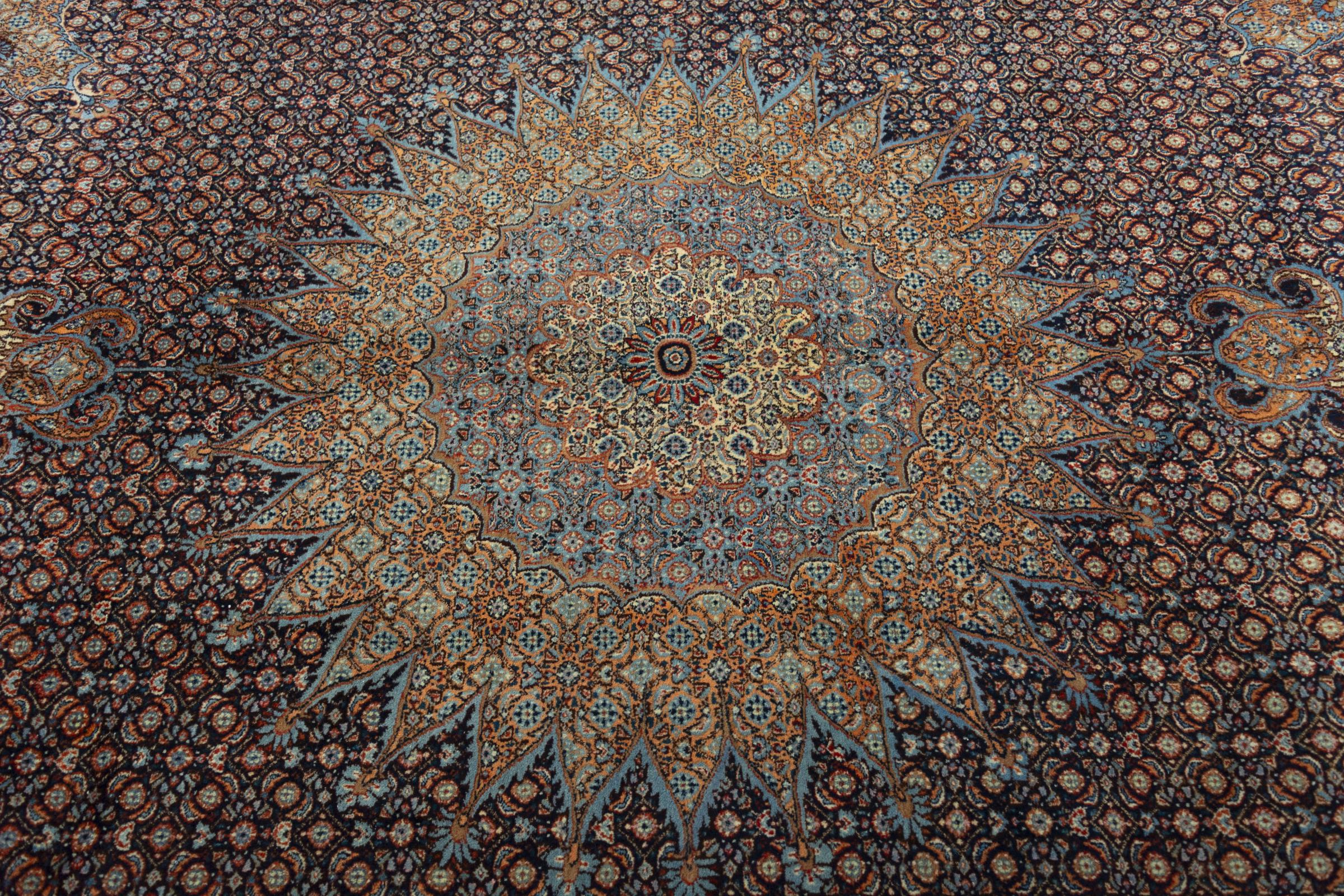 Moud is located in Iran, south of Mashhad. As a city of former Persia, its tradition of rug-making goes back many centuries, if not thousands of years. Hand knotted rugs from Moud enjoy an excellent reputation. They are made with the famous Persian knot. Typically, Moud Persian rugs have a pattern that covers the entire surface. The Garden pattern with motifs from Persian gardens or the Herati pattern.