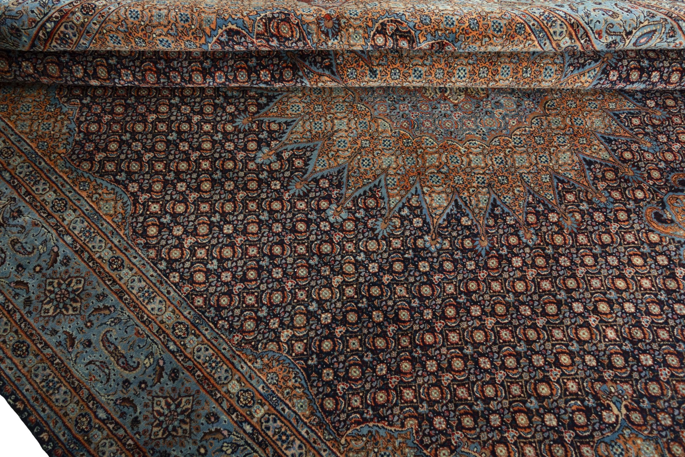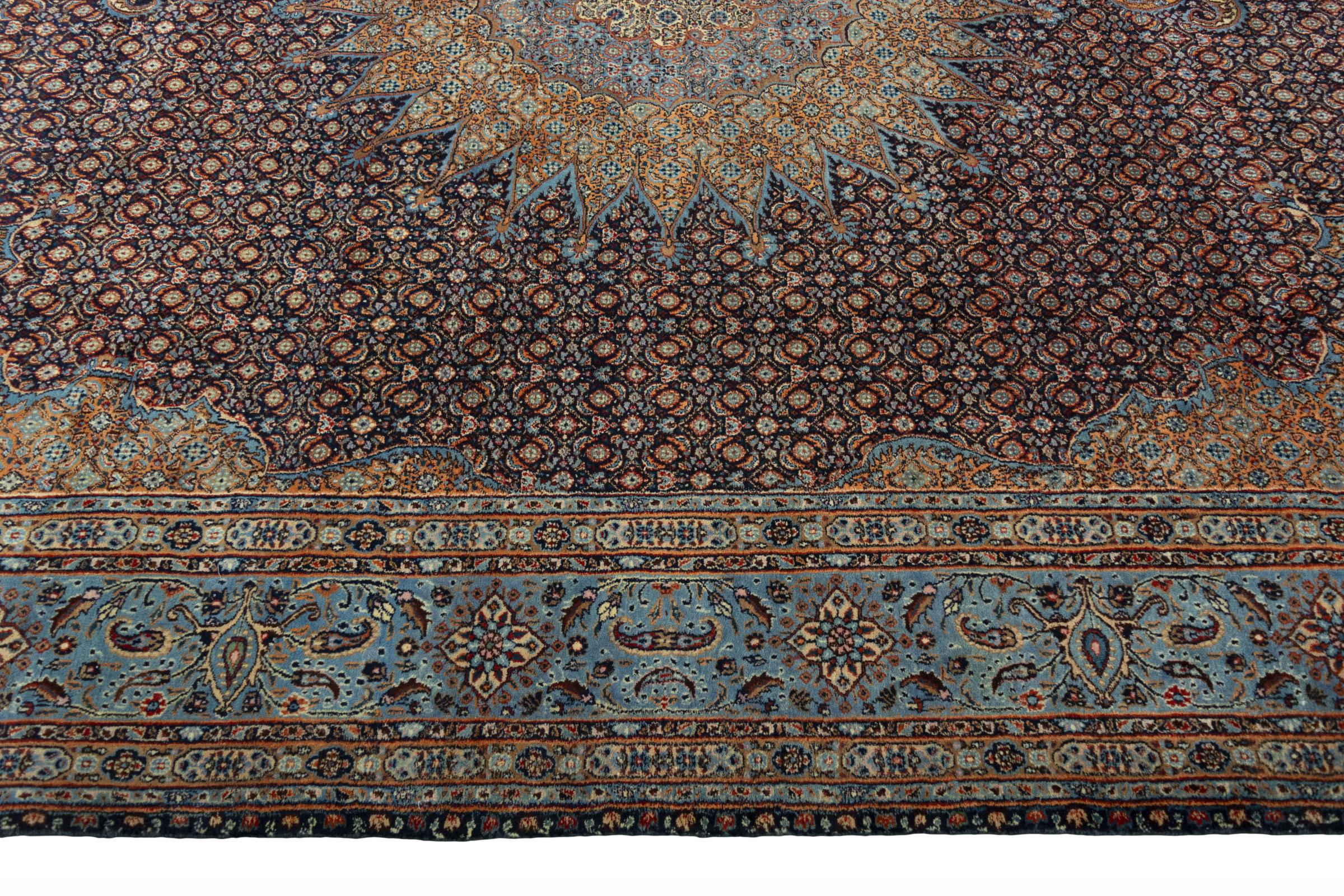This carpet from Moud, a city 300 kilometres south of Mashhad, impresses at first glance. The typical Herati pattern or garden design is appreciated by connoisseurs and lovers of genuine Persian rugs. If you are looking for a handmade rug of fine quality with a very unique and distinctive design, this type of rug is the perfect choice.