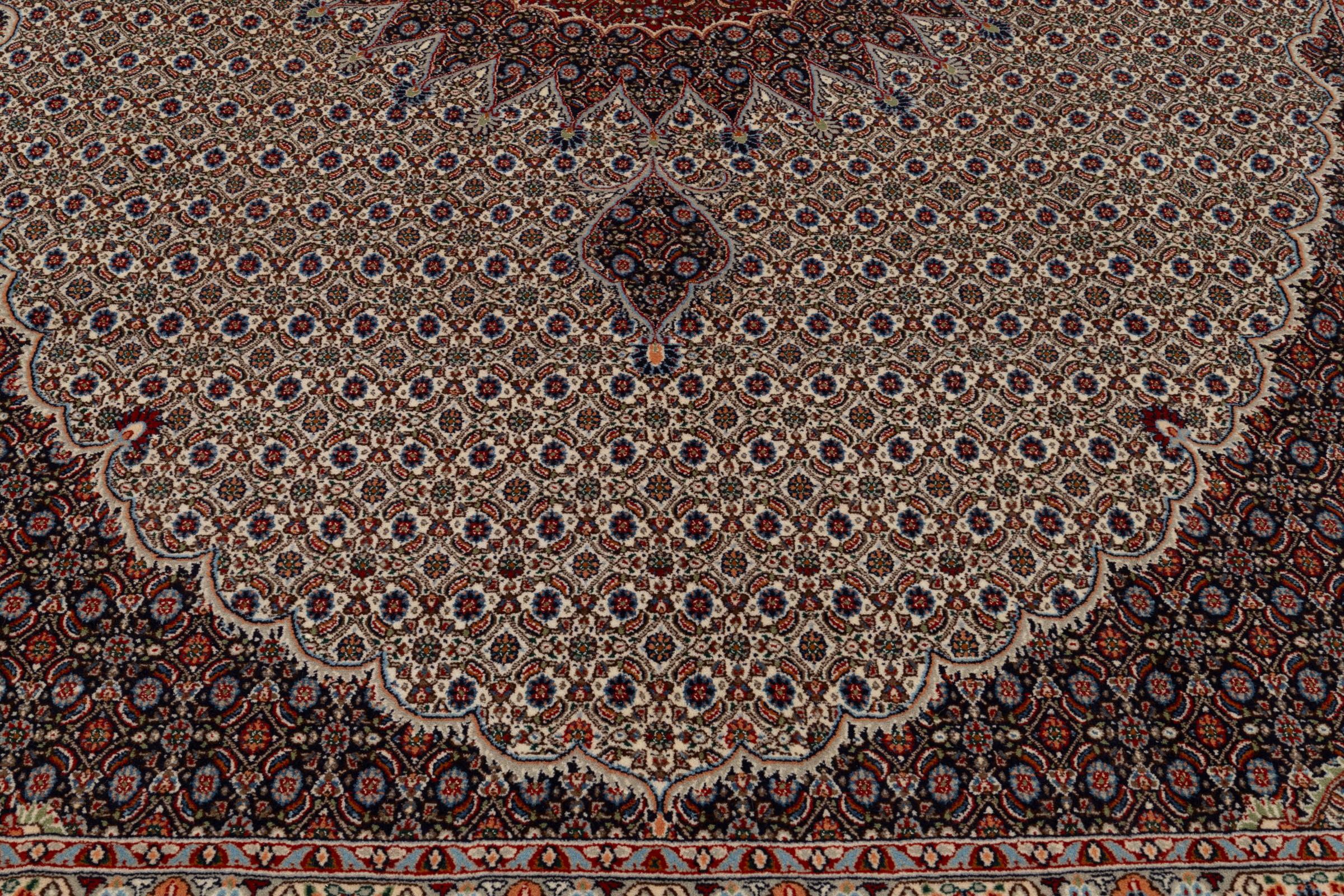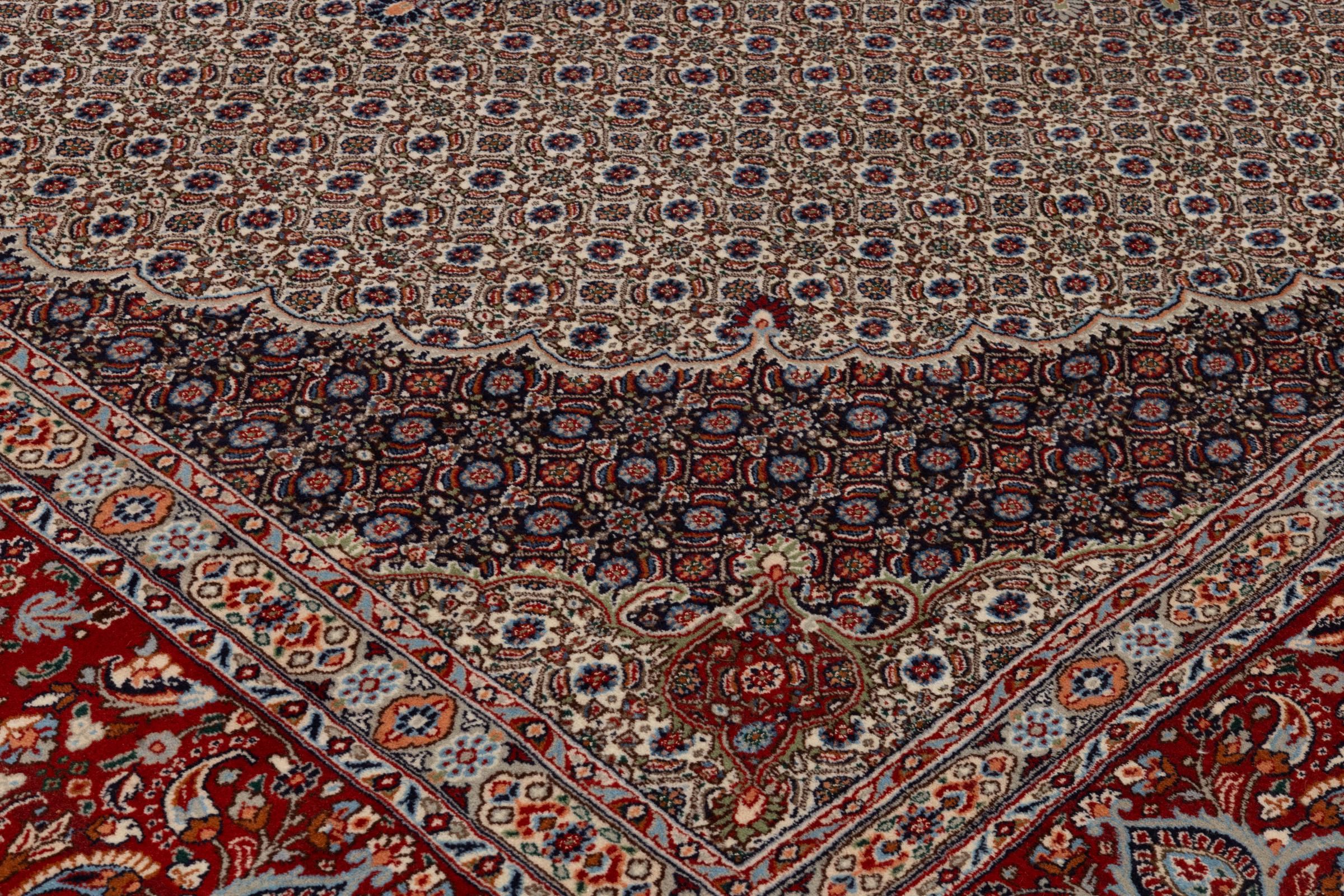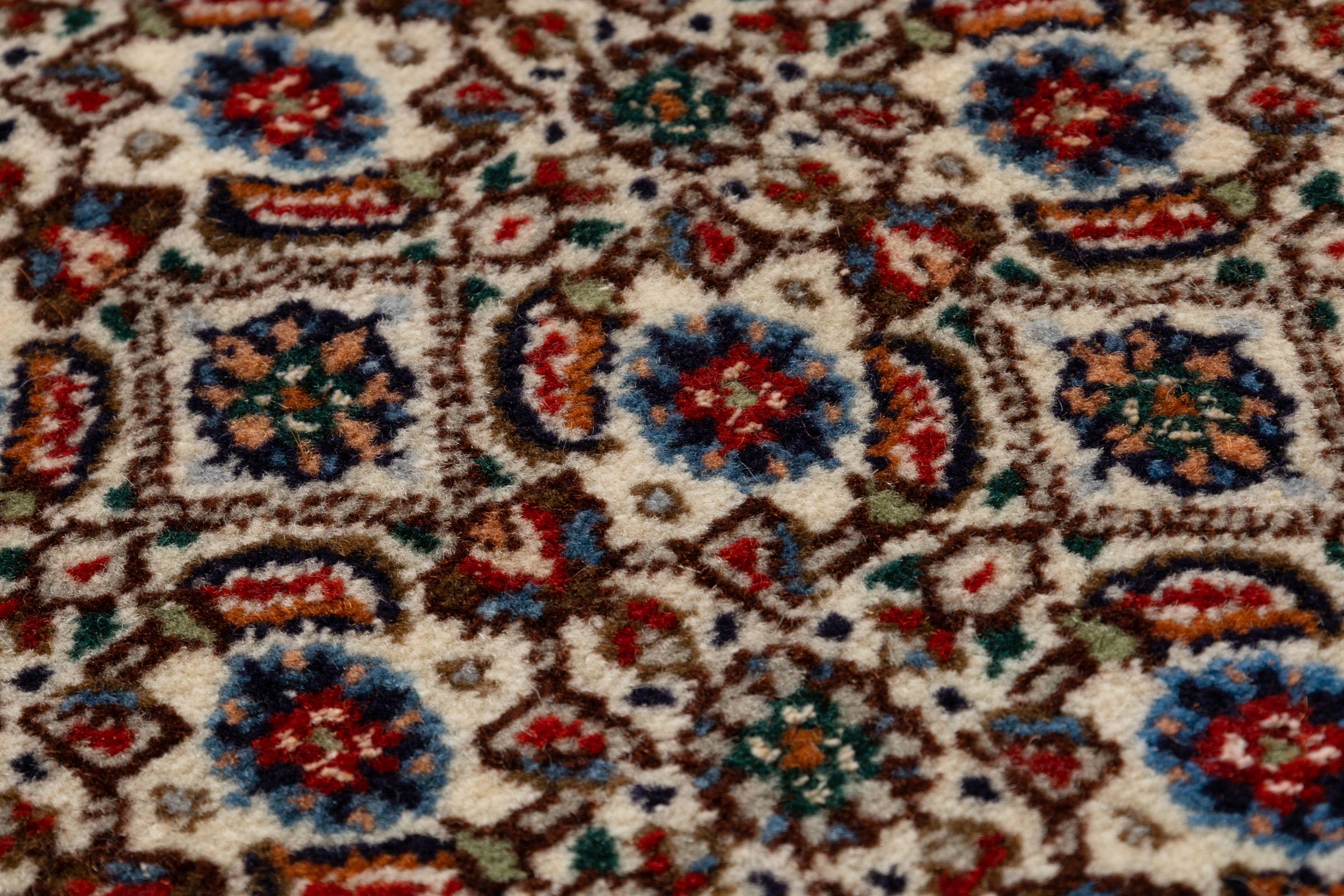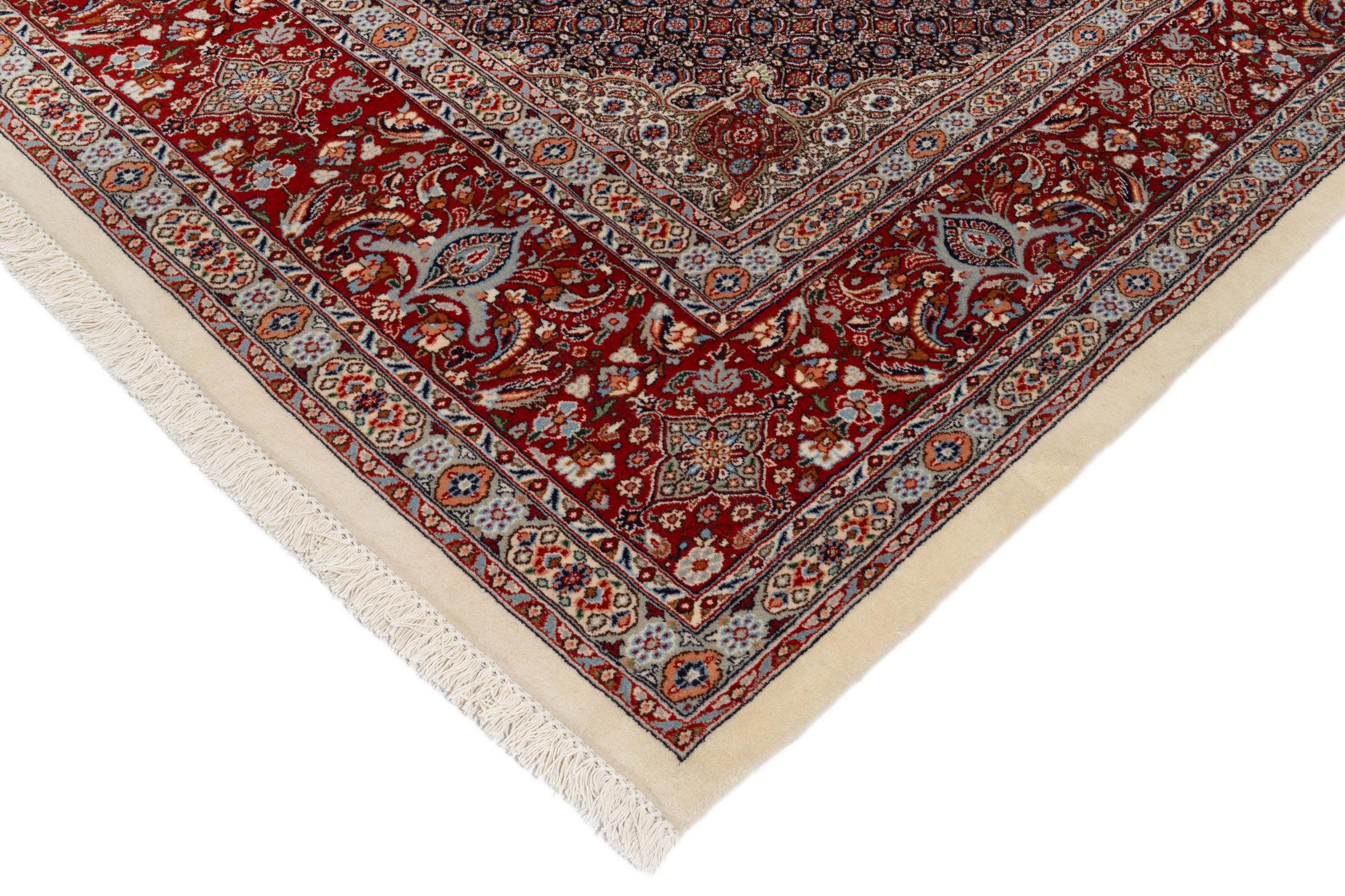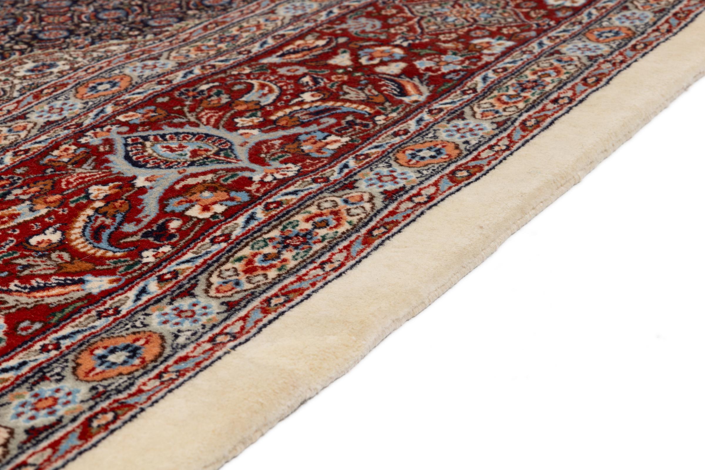 This carpet from Moud, a city 300 kilometres south of Mashhad, impresses at first glance. The typical Herati pattern or garden design is appreciated by connoisseurs and lovers of genuine Persian rugs. If you are looking for a handmade rug of fine quality with a very unique and distinctive design, this type of rug is the perfect choice.