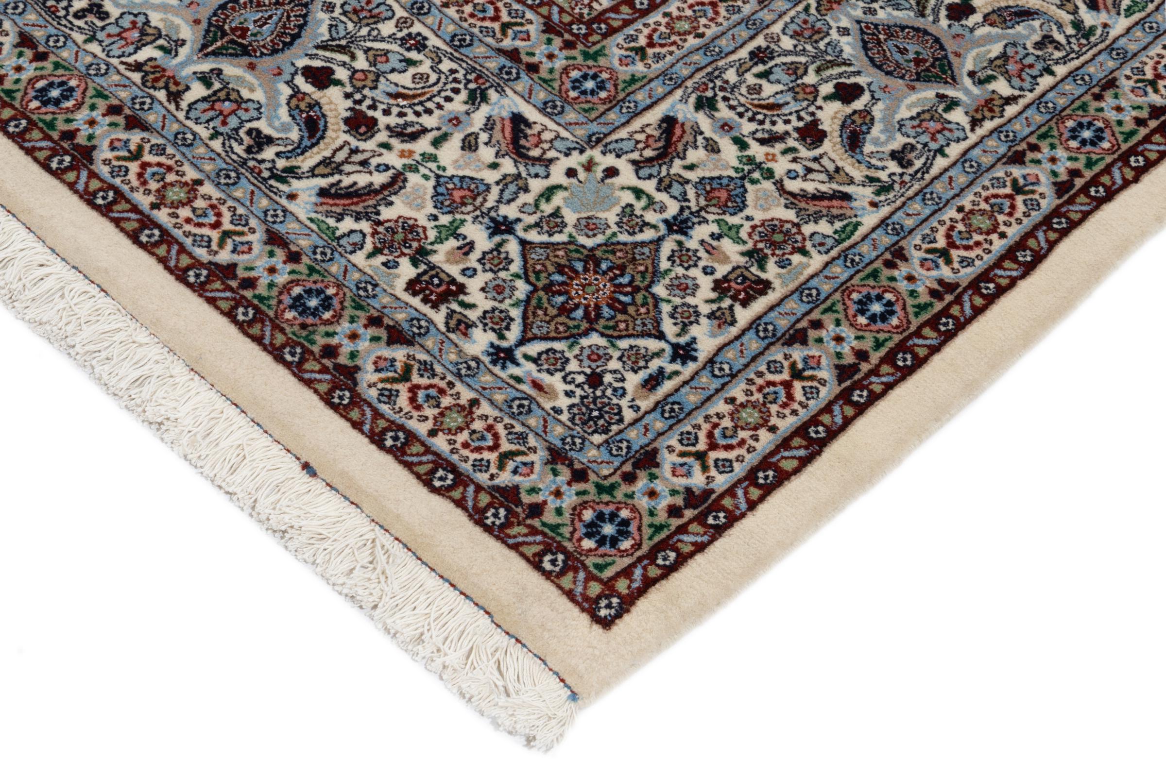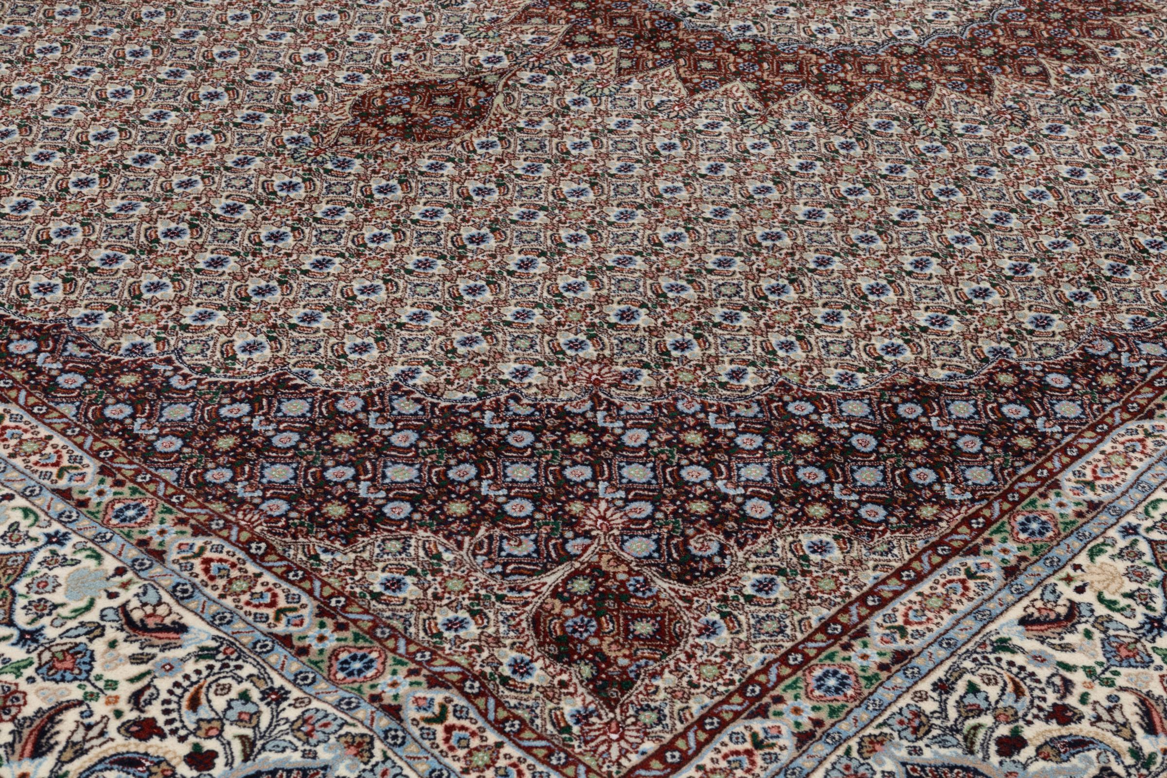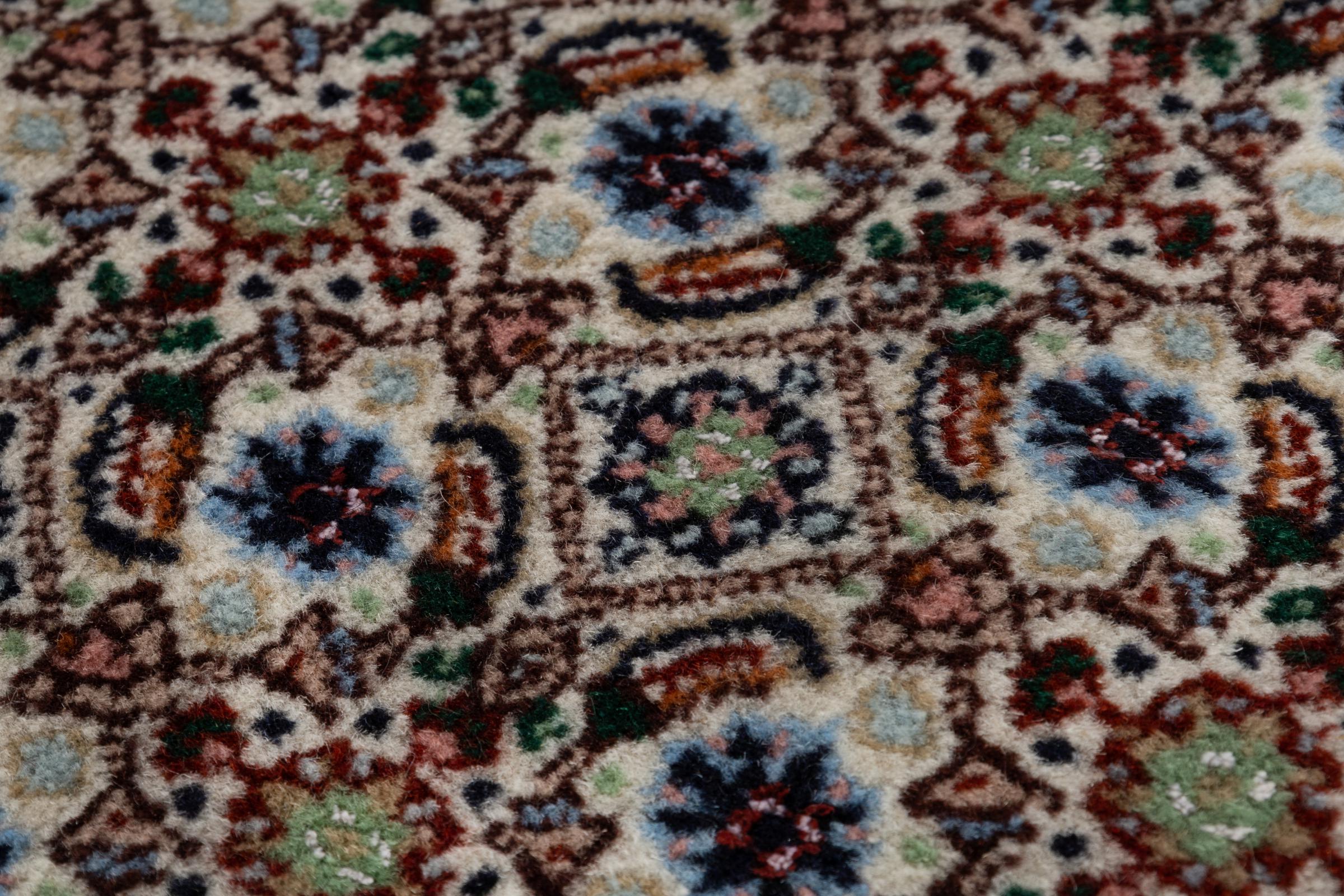 This carpet from Moud, a city 300 kilometres south of Mashhad, impresses at first glance. The typical Herati pattern or garden design is appreciated by connoisseurs and lovers of genuine Persian rugs. If you are looking for a handmade rug of fine quality with a very unique and distinctive design, this type of rug is the perfect choice.
