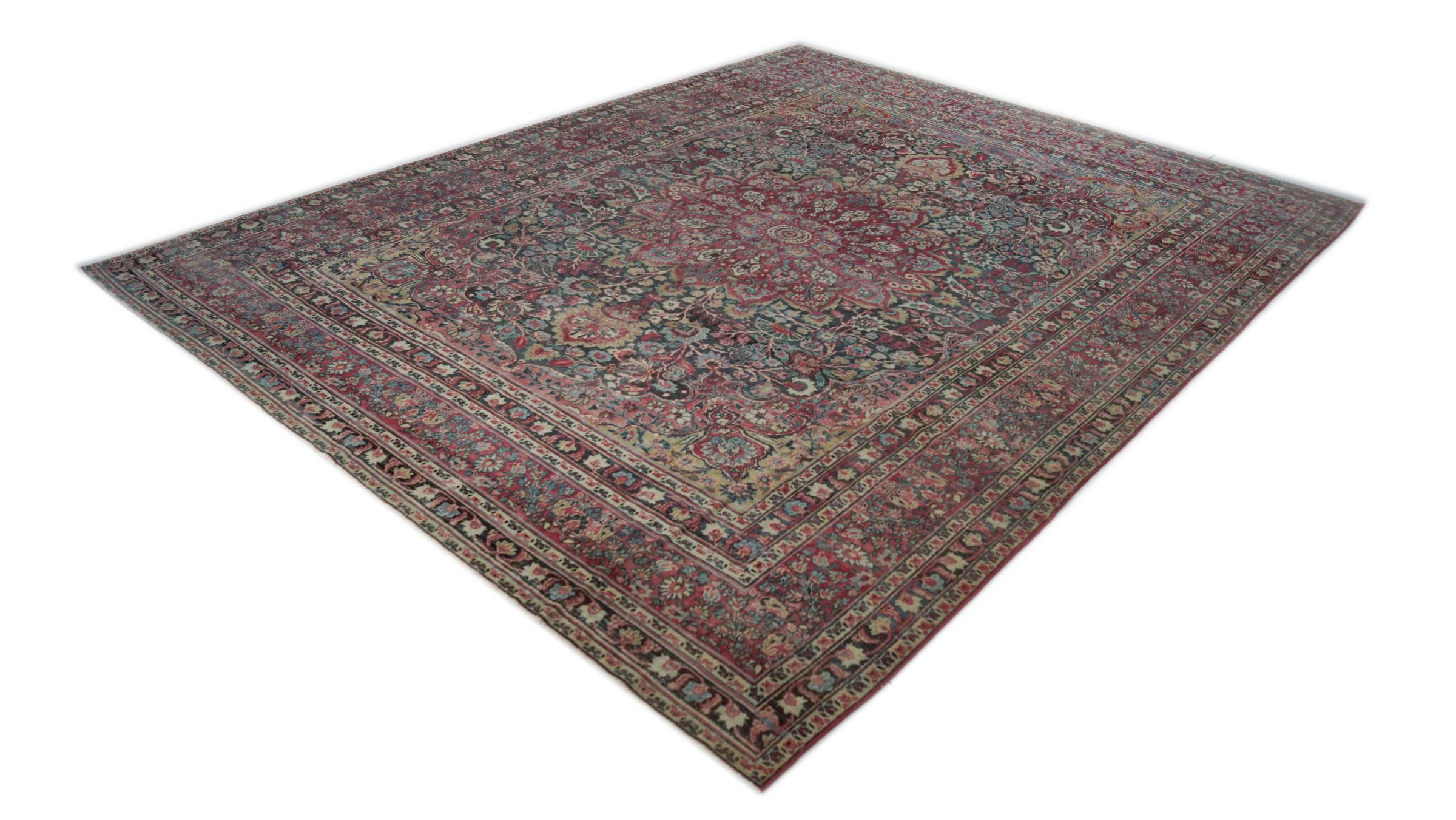Carpet ID: 234731009110609 Size: 364x285 cm Thickness: ap. 12 mm Knot density: 128 000 - 160 000 / m² Manufacturing: Knotted by hand Pile: Sheep wool Warp: Cotton Condition / Conservation Perfect Origin: Persia Age: Antique, over 80 years Weight: ap. 31 kg In stock: Unique - Only 1 in stock