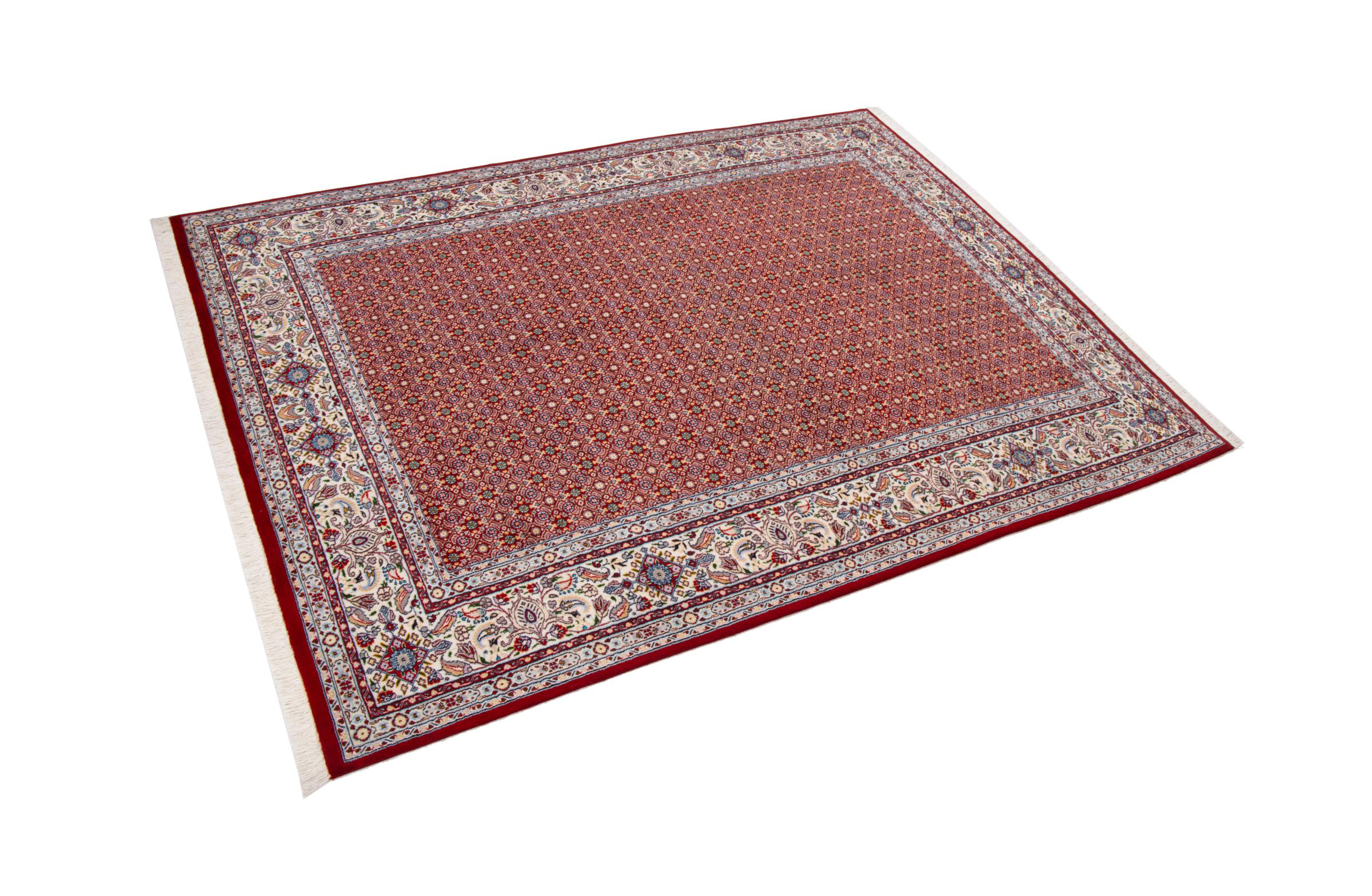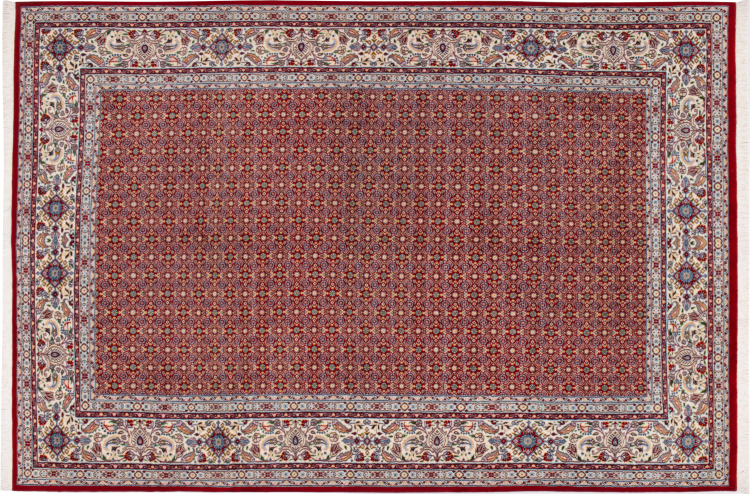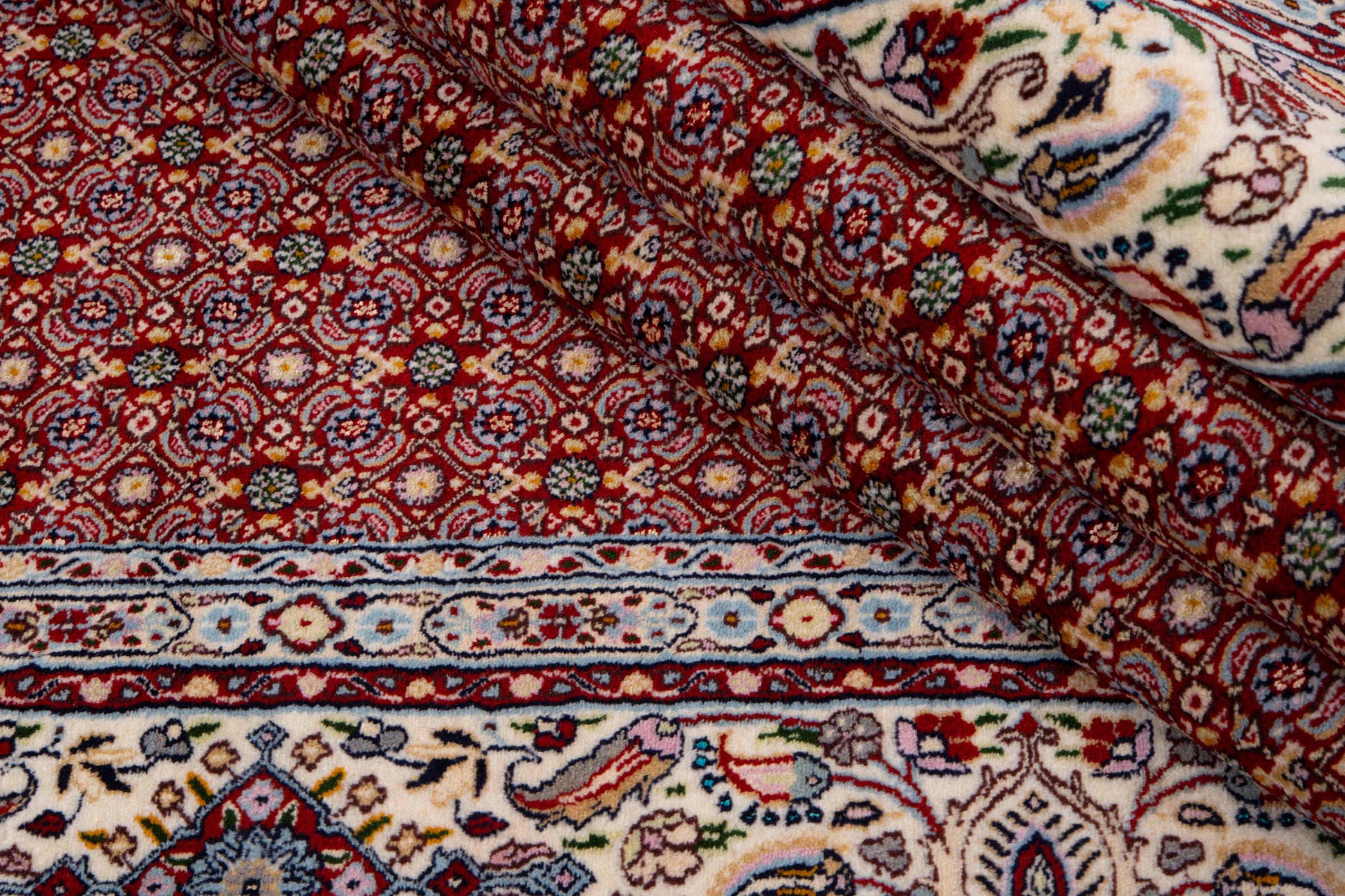Moud is located in Iran, south of Mashhad. As a city of former Persia, its tradition of rug-making goes back many centuries, if not thousands of years. Hand knotted rugs from Moud enjoy an excellent reputation. They are made with the famous Persian knot. Typically, Moud Persian rugs have a pattern that covers the entire surface. The Garden pattern with motifs from Persian gardens or the Herati pattern.