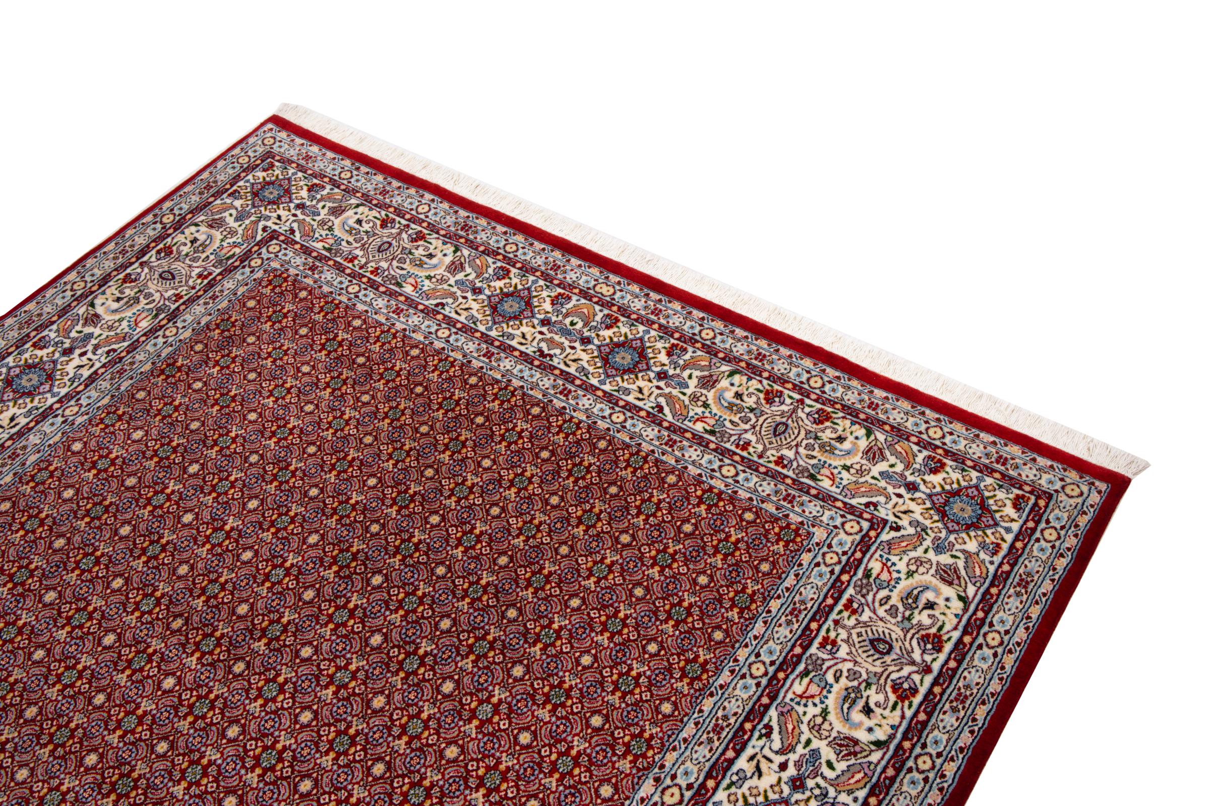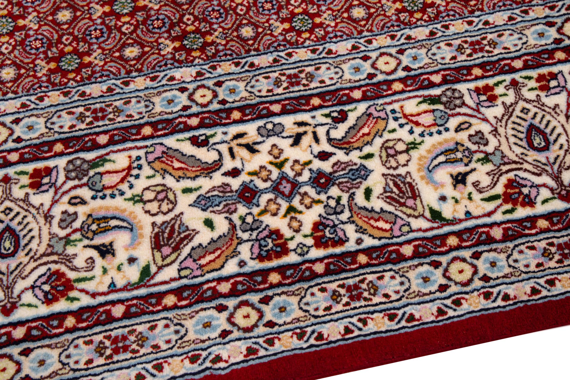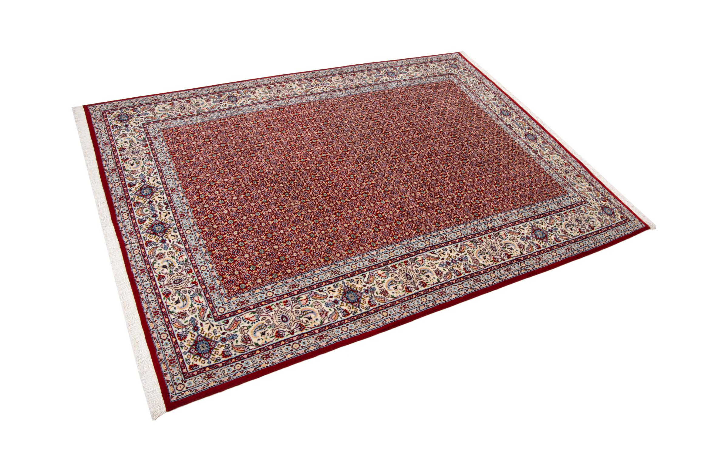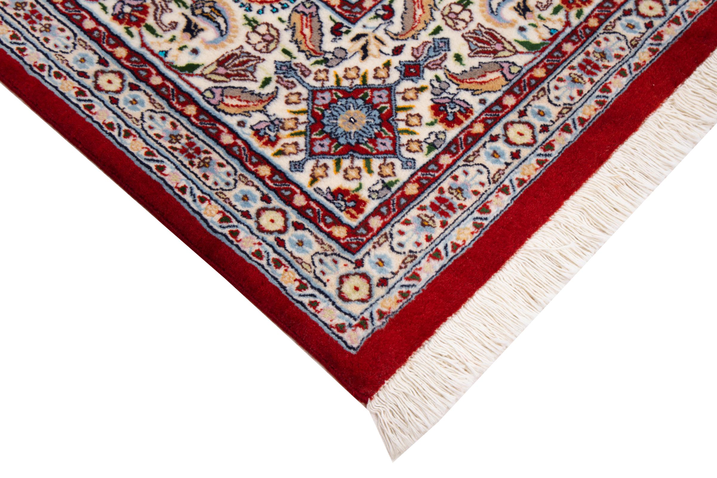 This carpet from Moud, a city 300 kilometres south of Mashhad, impresses at first glance. The typical Herati pattern or garden design is appreciated by connoisseurs and lovers of genuine Persian rugs. If you are looking for a handmade rug of fine quality with a very unique and distinctive design, this type of rug is the perfect choice.