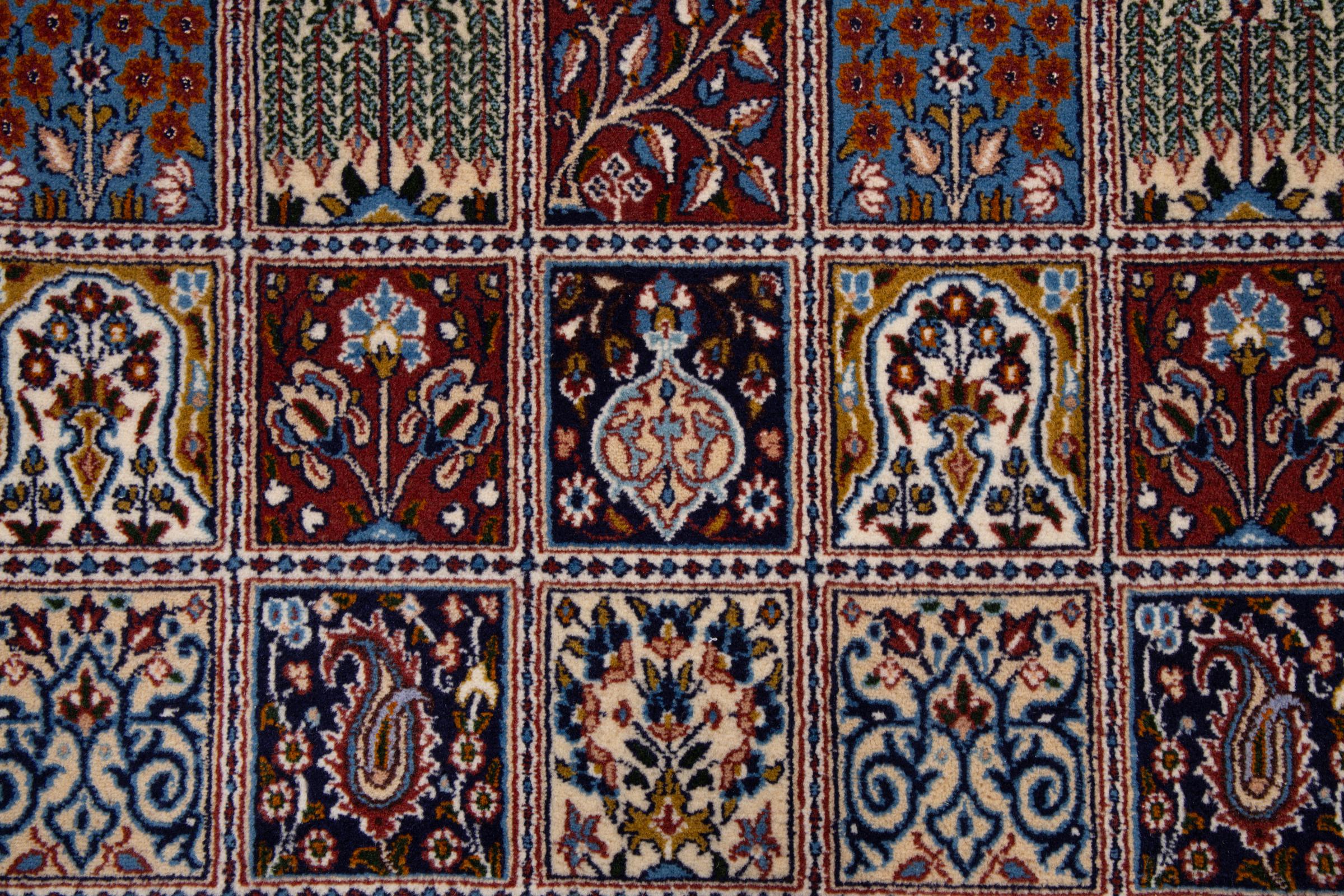 Moud is located in Iran, south of Mashhad. As a city of former Persia, its tradition of rug-making goes back many centuries, if not thousands of years. Hand knotted rugs from Moud enjoy an excellent reputation. They are made with the famous Persian knot. Typically, Moud Persian rugs have a pattern that covers the entire surface. The Garden pattern with motifs from Persian gardens or the Herati pattern.