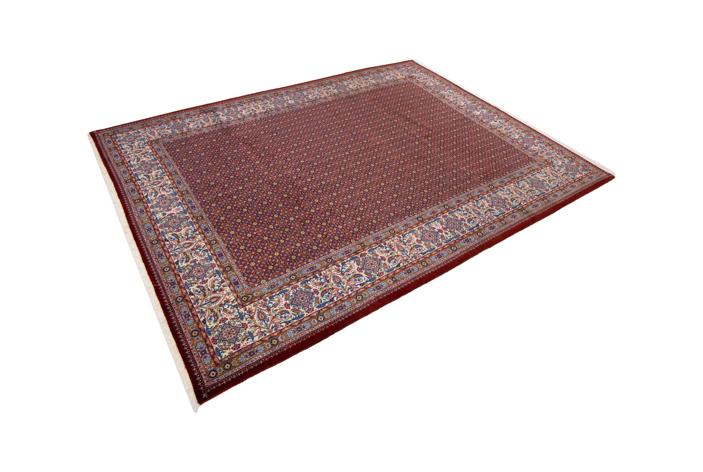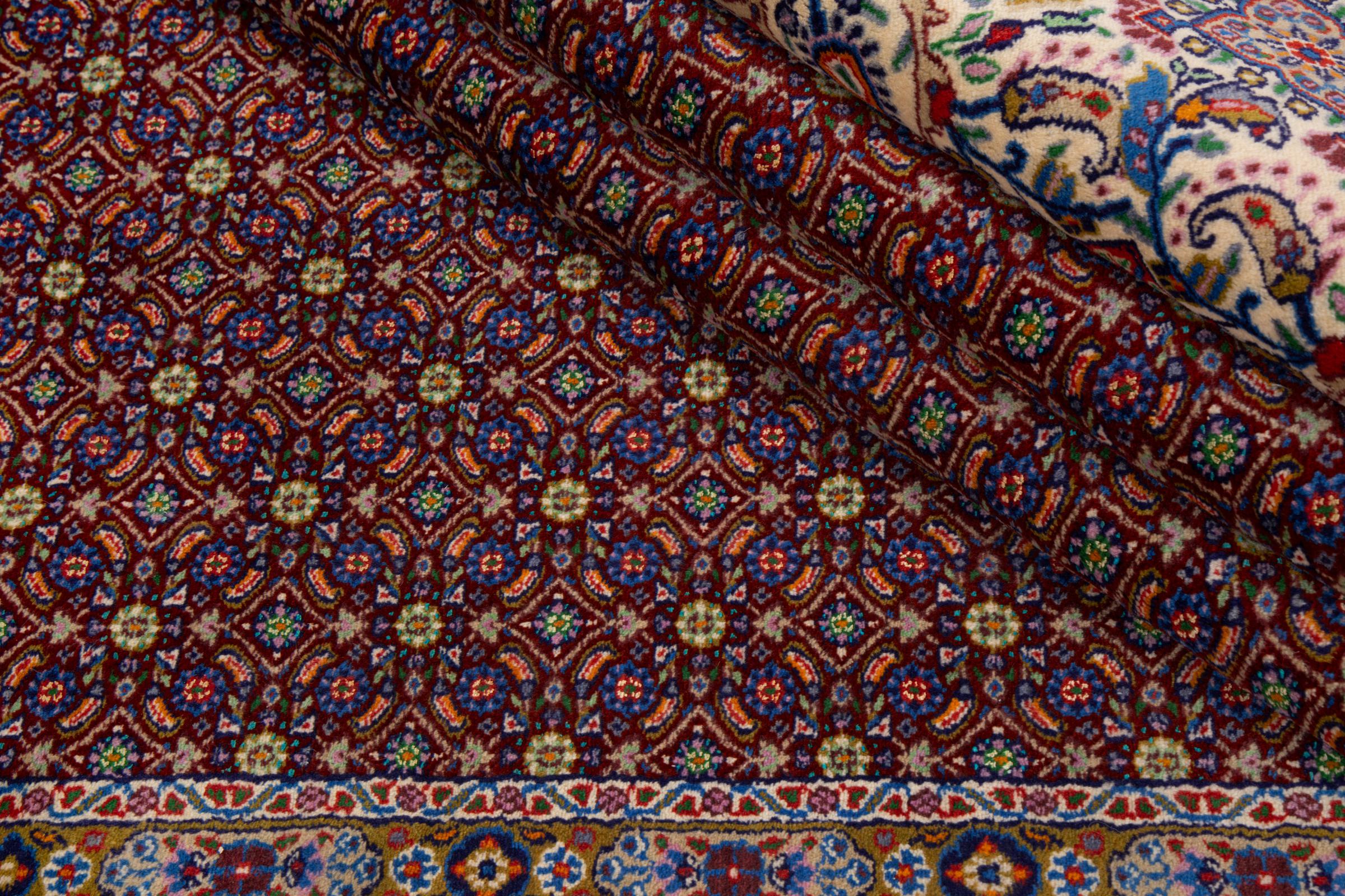 This carpet from Moud, a city 300 kilometres south of Mashhad, impresses at first glance. The typical Herati pattern or garden design is appreciated by connoisseurs and lovers of genuine Persian rugs. If you are looking for a handmade rug of fine quality with a very unique and distinctive design, this type of rug is the perfect choice.