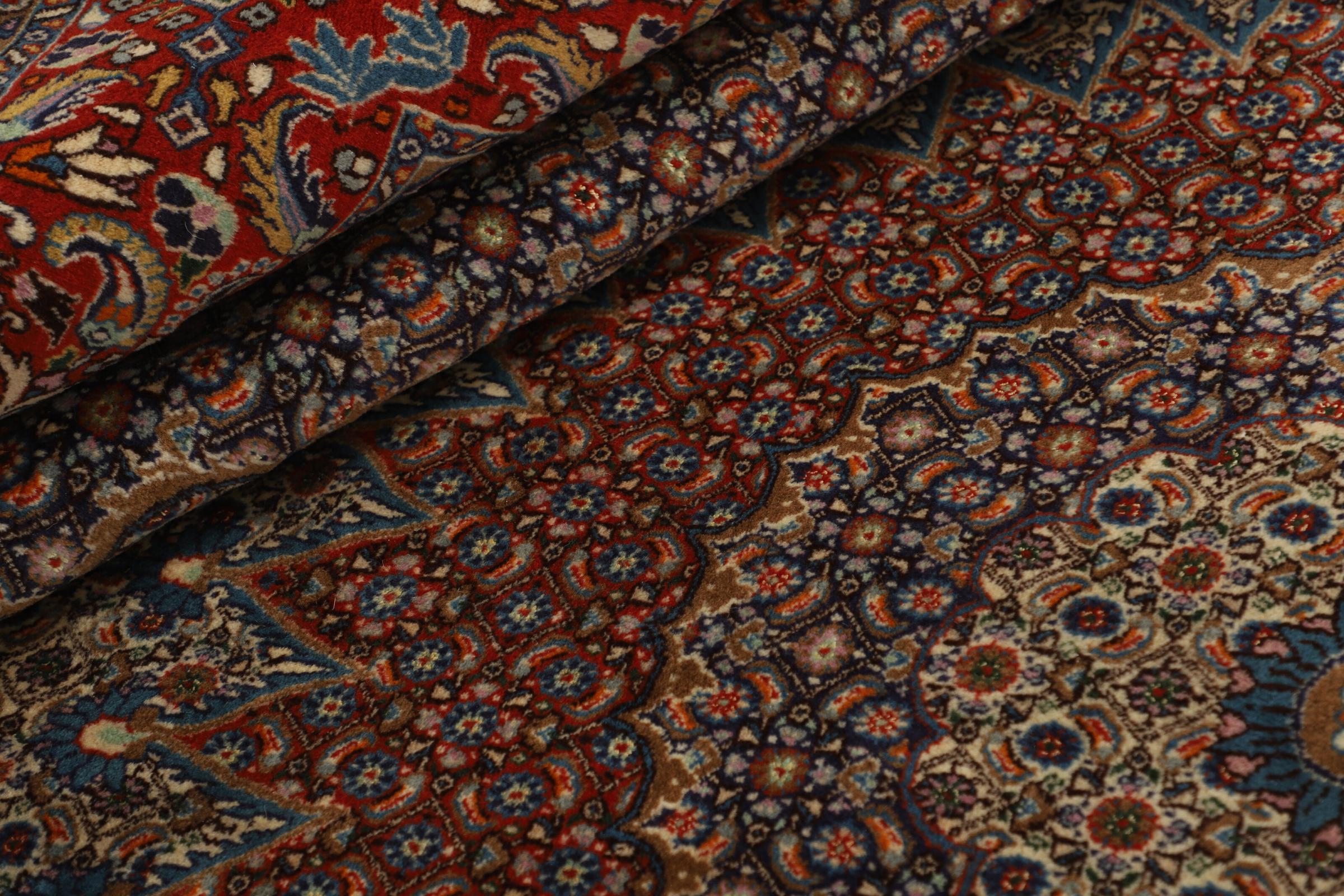 This carpet from Moud, a city 300 kilometres south of Mashhad, impresses at first glance. The typical Herati pattern or garden design is appreciated by connoisseurs and lovers of genuine Persian rugs. If you are looking for a handmade rug of fine quality with a very unique and distinctive design, this type of rug is the perfect choice.