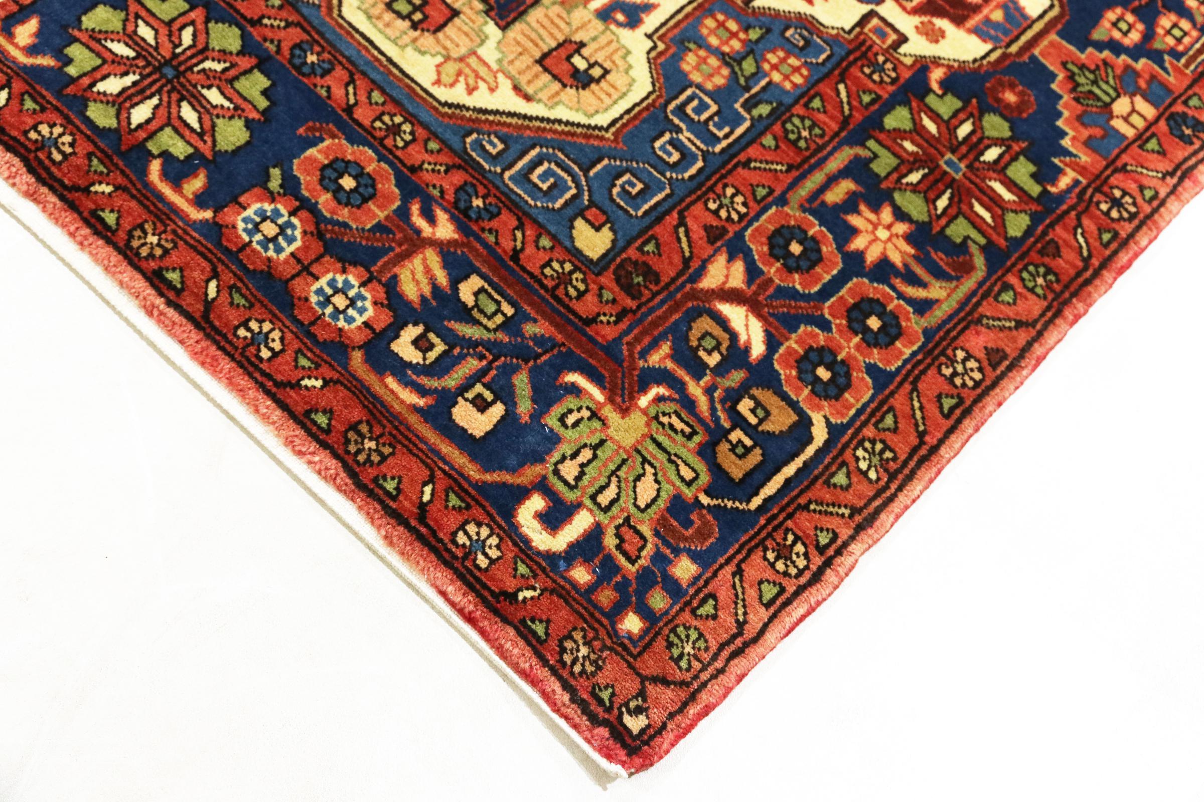This Persian Nahavand Carpet was hand knotted in western Iran. It is robust and perfectly suitable for highly frequented areas. The relatively low knot density does not say much about the quality of this Persian Carpet. Decisive are the high quality wool and the beautiful shining colours.